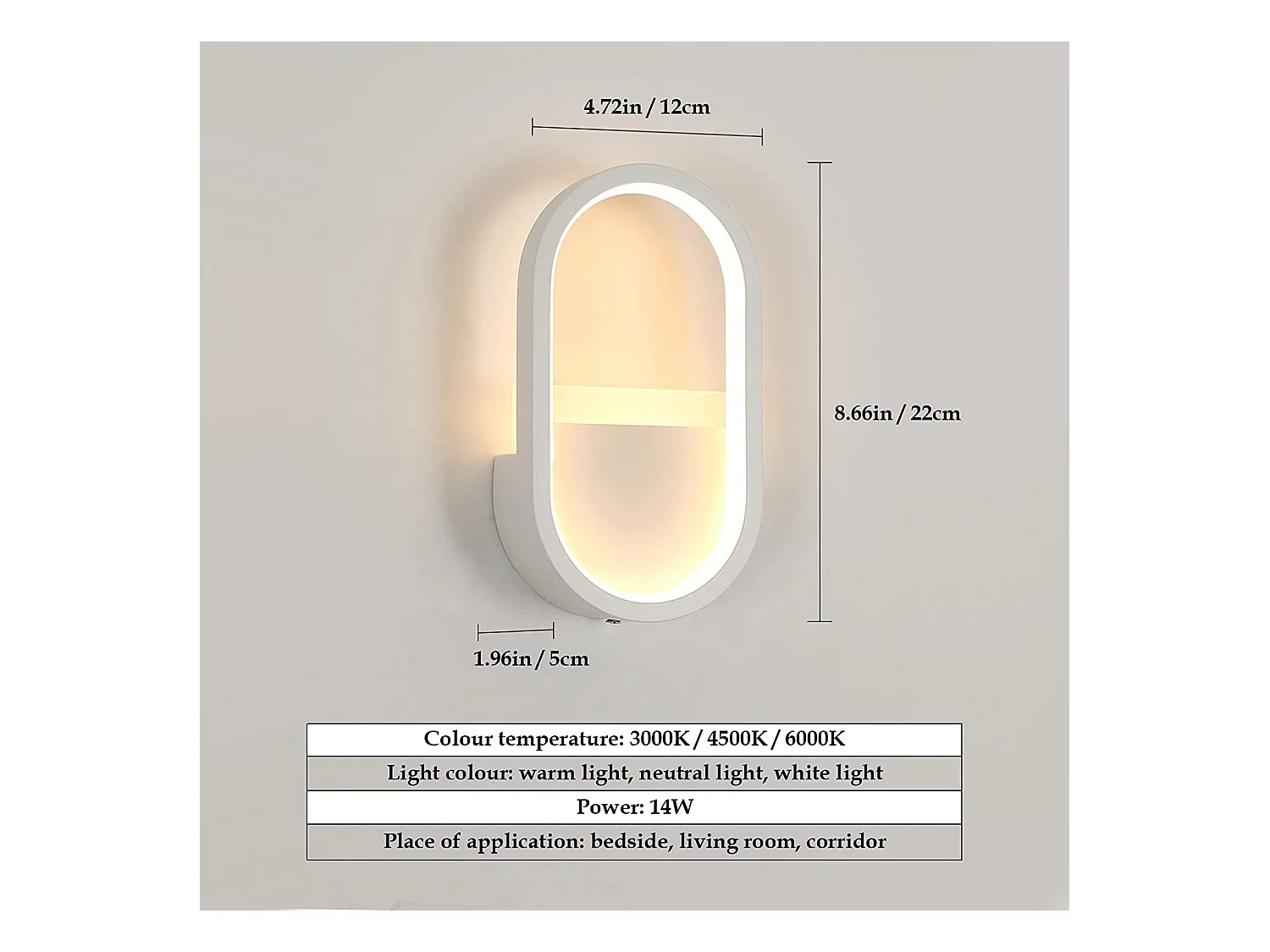 Moderne moderne LED-wandlamp OVAL, WIT, 16W, 3000K-6000K Verstelbare 3 kleuren