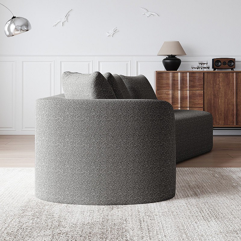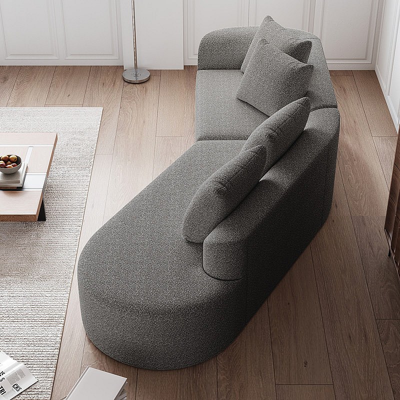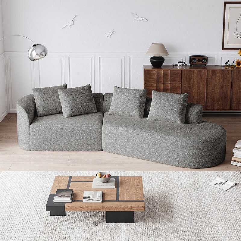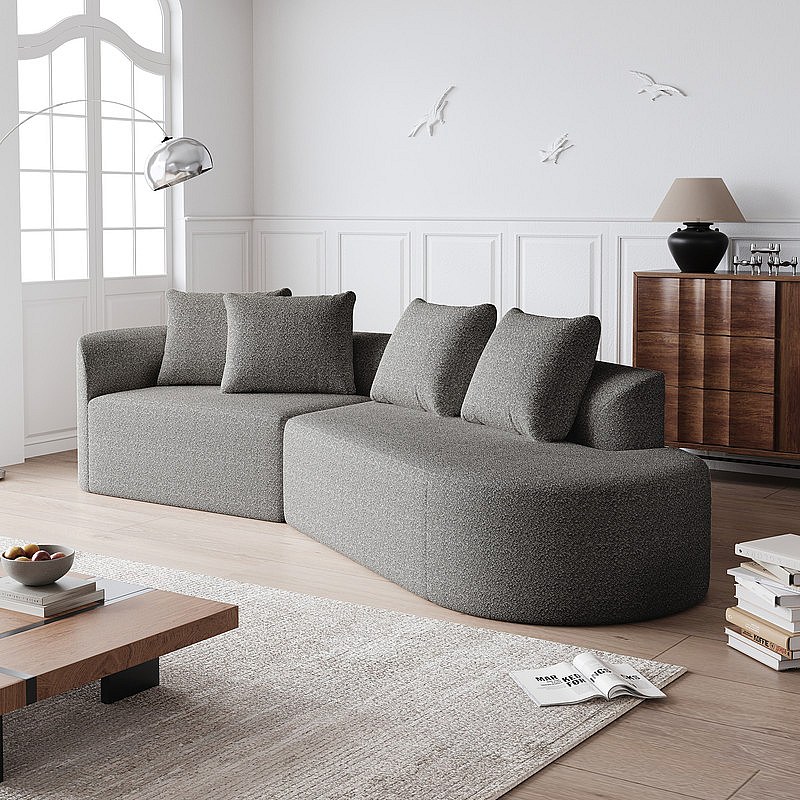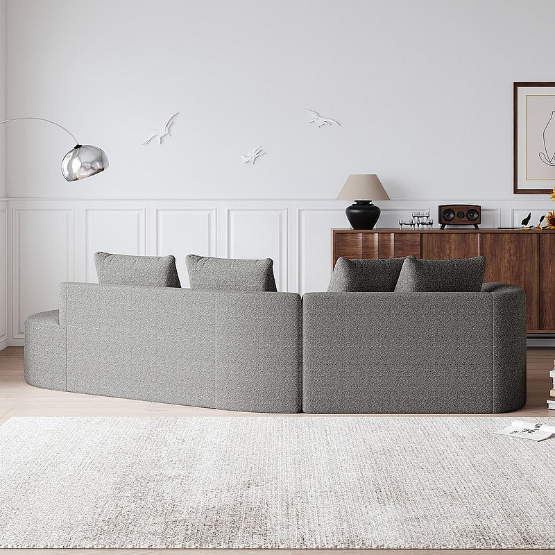 Moderne Overmaatse Rechte 4-zits Hoekbank, met 4 Kussens, Gebogen Lounger, Chenille Stof, Lichtgrijs
