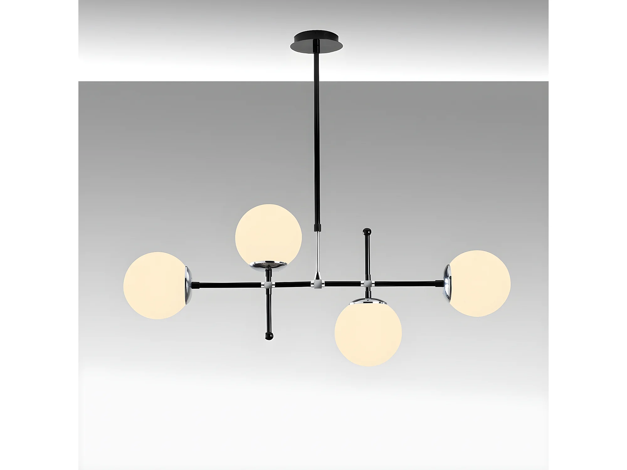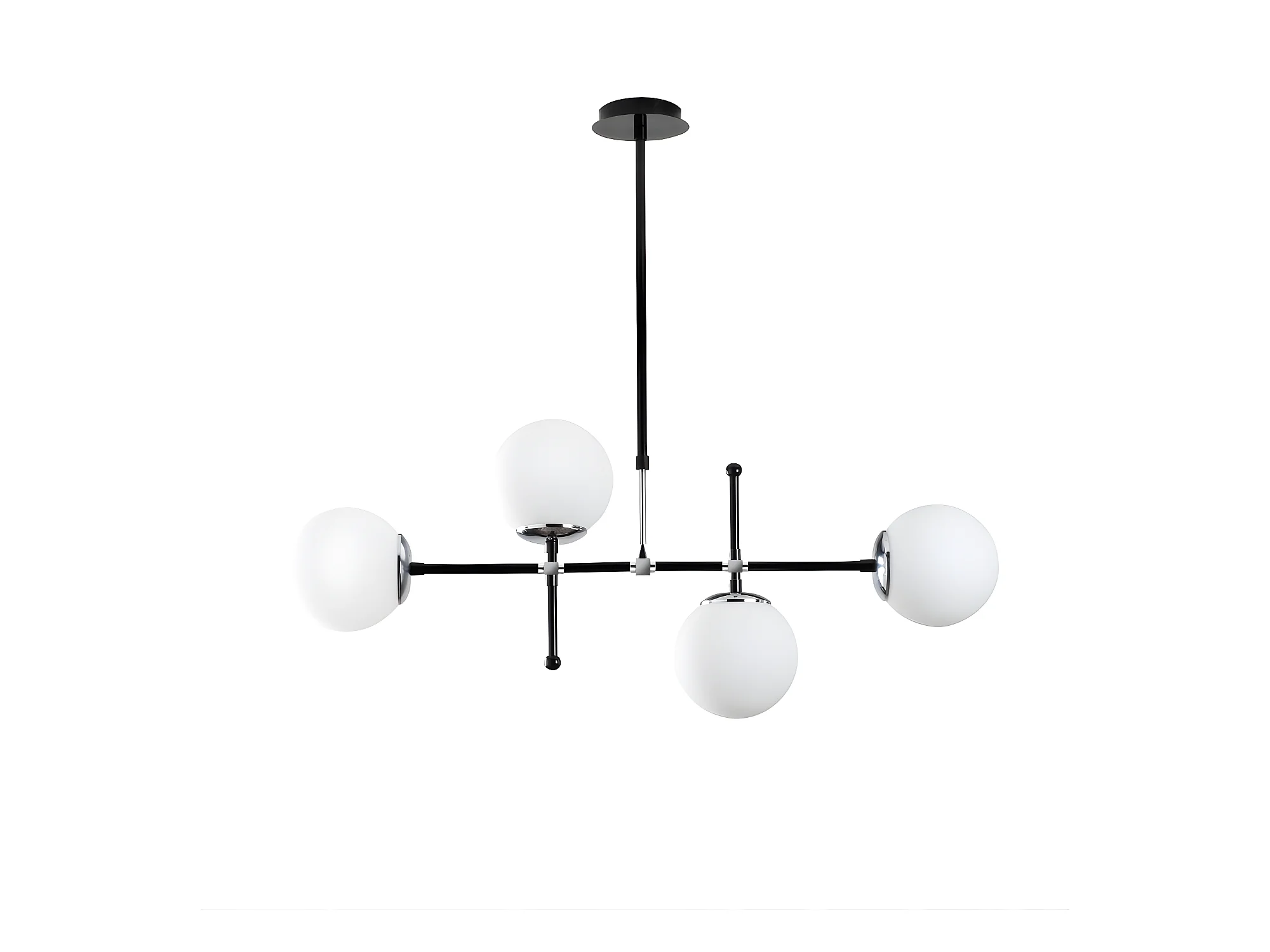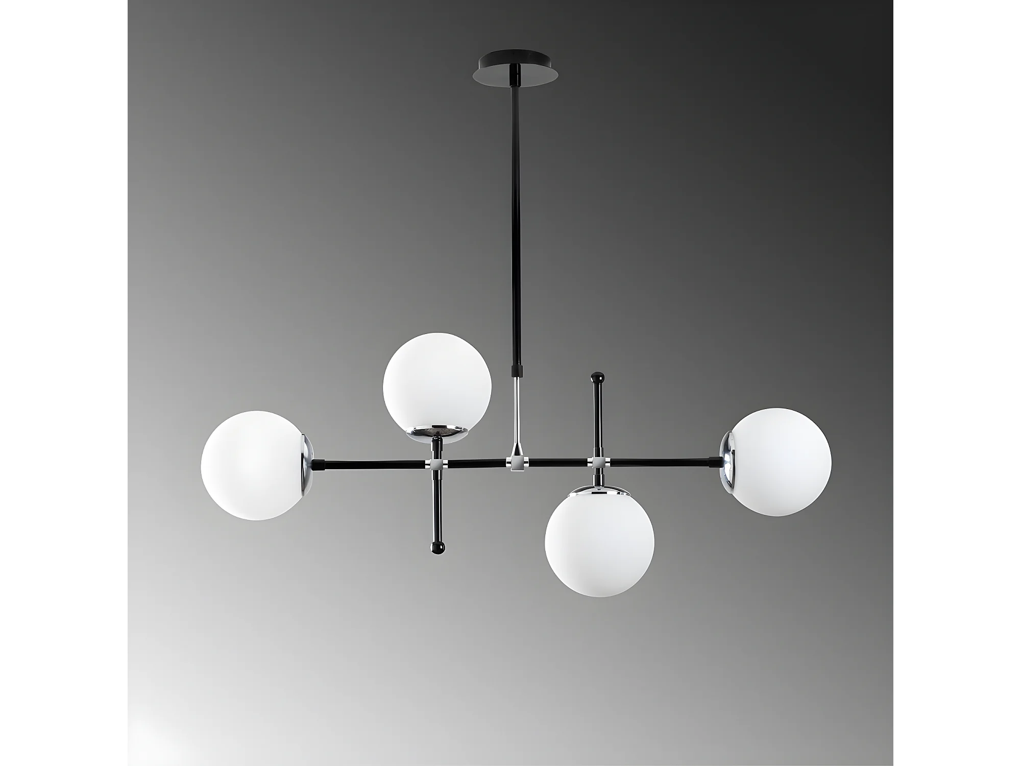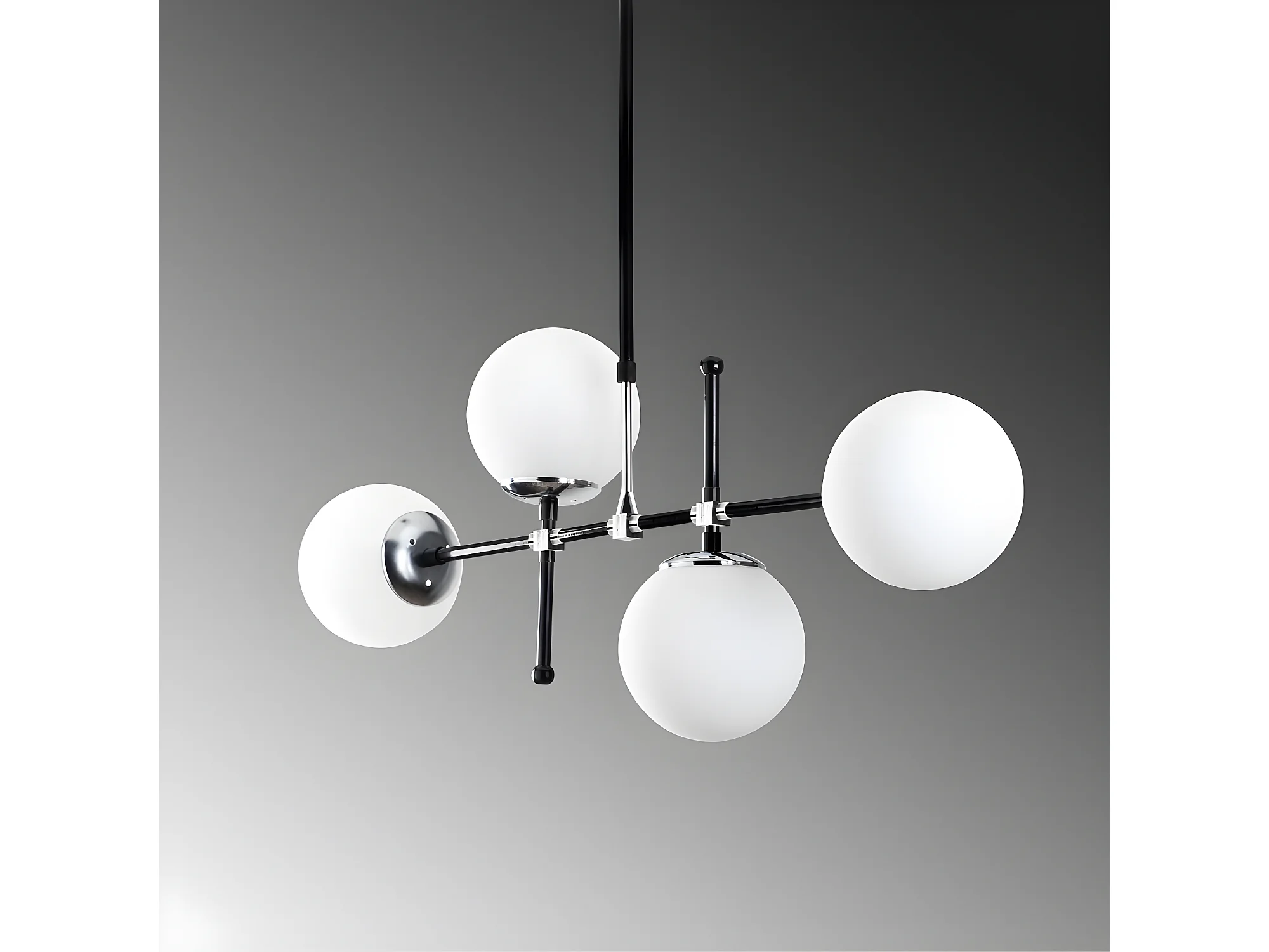Moderne Plafondlamp Dival in zwart en chroom met 4 glazen bollen 4xE27