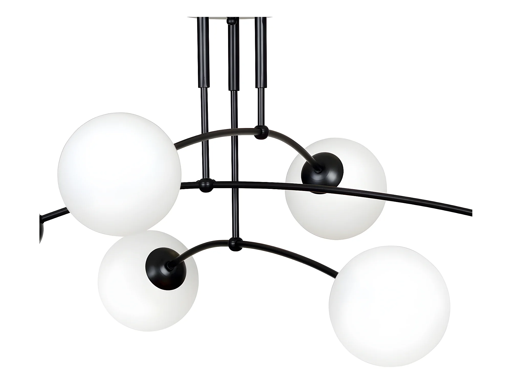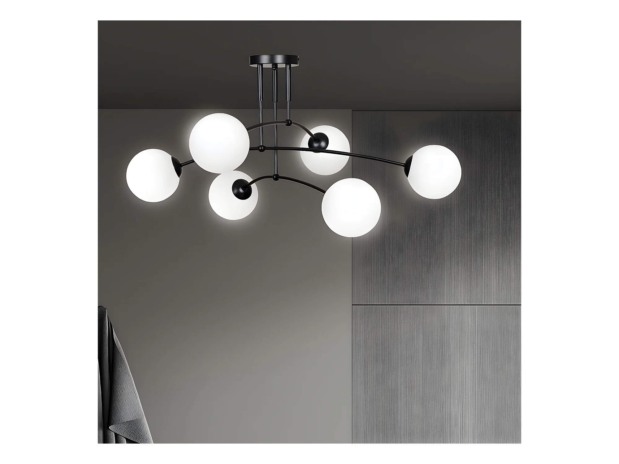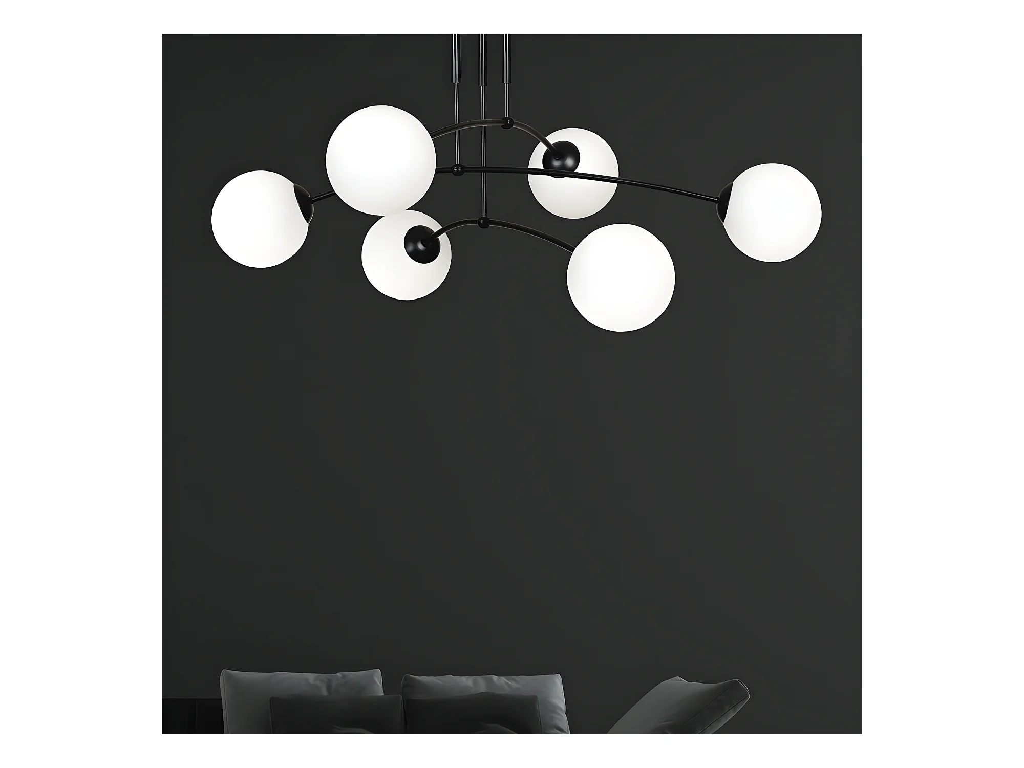 Moderne Mobis plafondlamp met onregelmatige spijlen zwart en 6 glazen bollen 6xE14