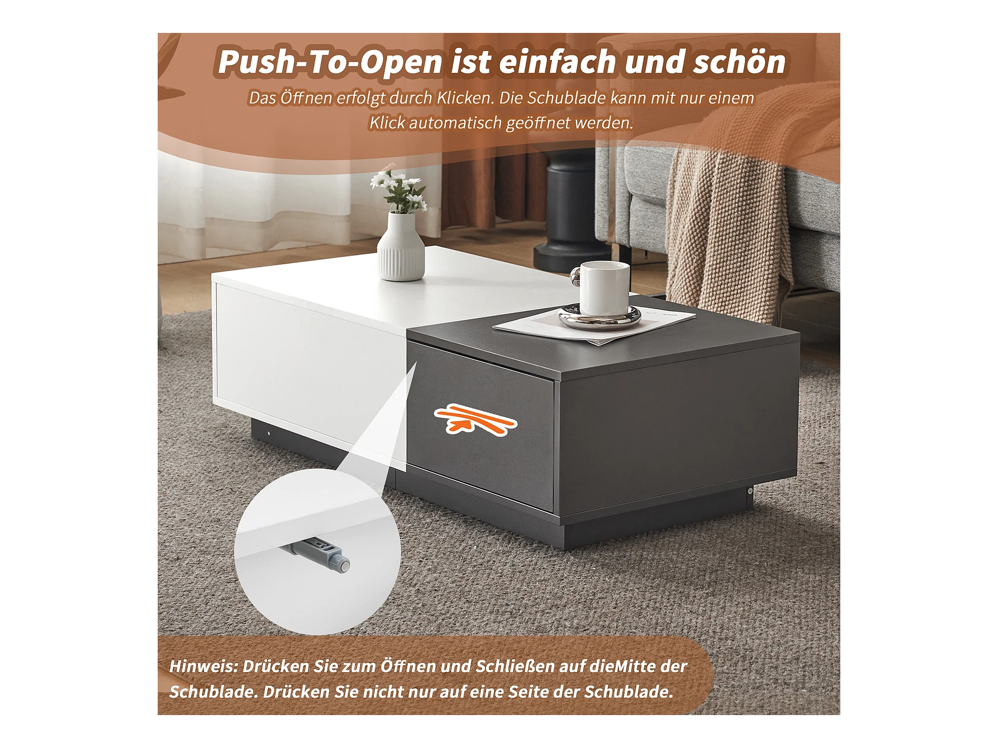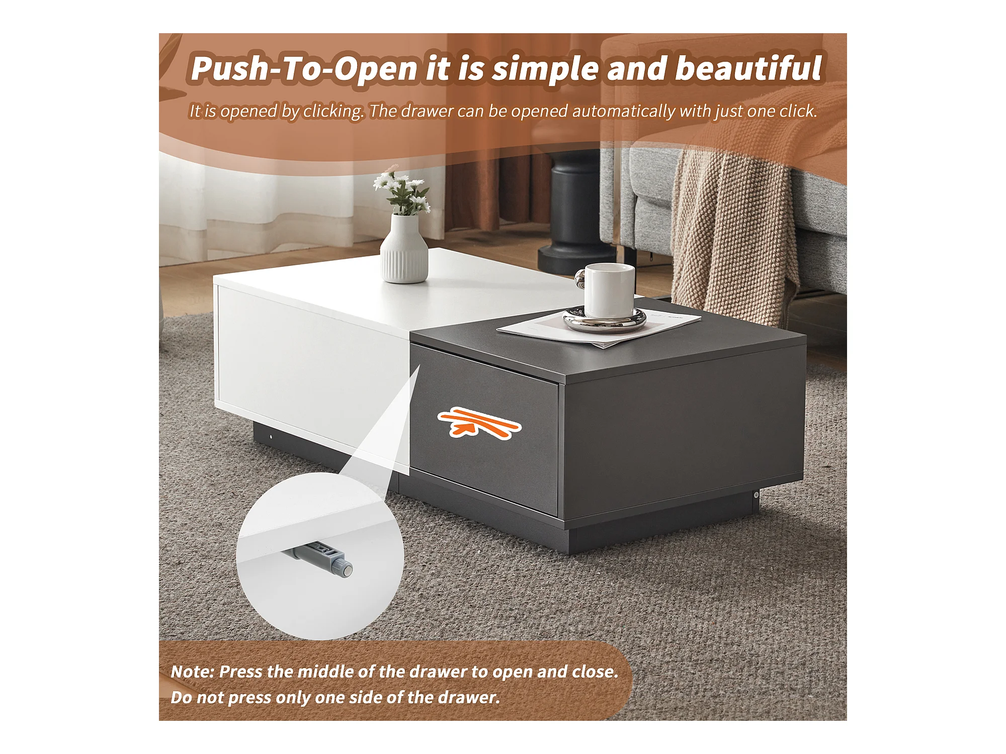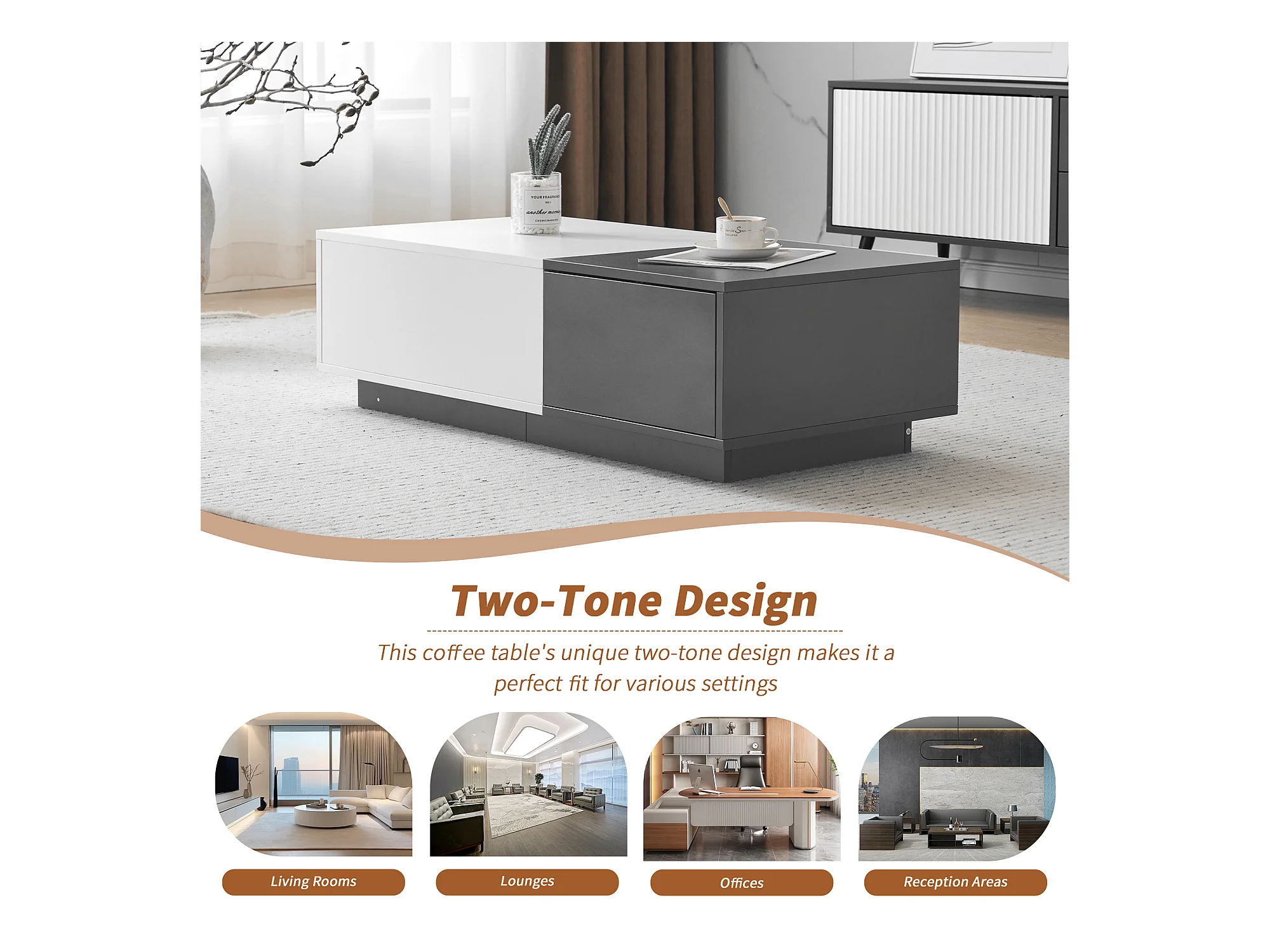 Moderne salontafel met 2 lades - 100x50x30 cm - Spaanplaat - Grijs en wit