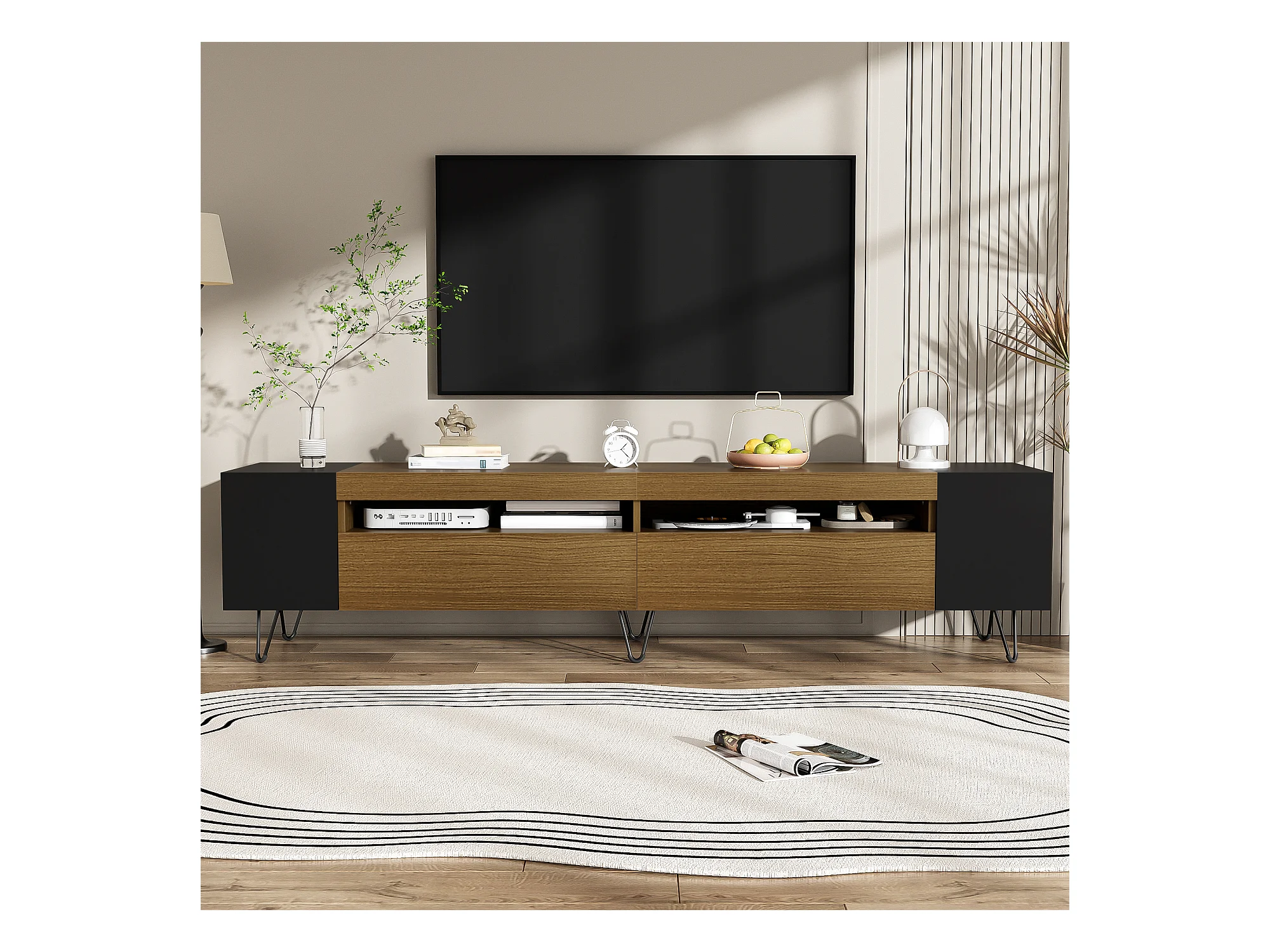 180 cm kleurenblok-tv-meubel, 2 kasten en 2 lades, zwart MDF en hout, tv tot 59 inch (180 x 37 x 42 cm)