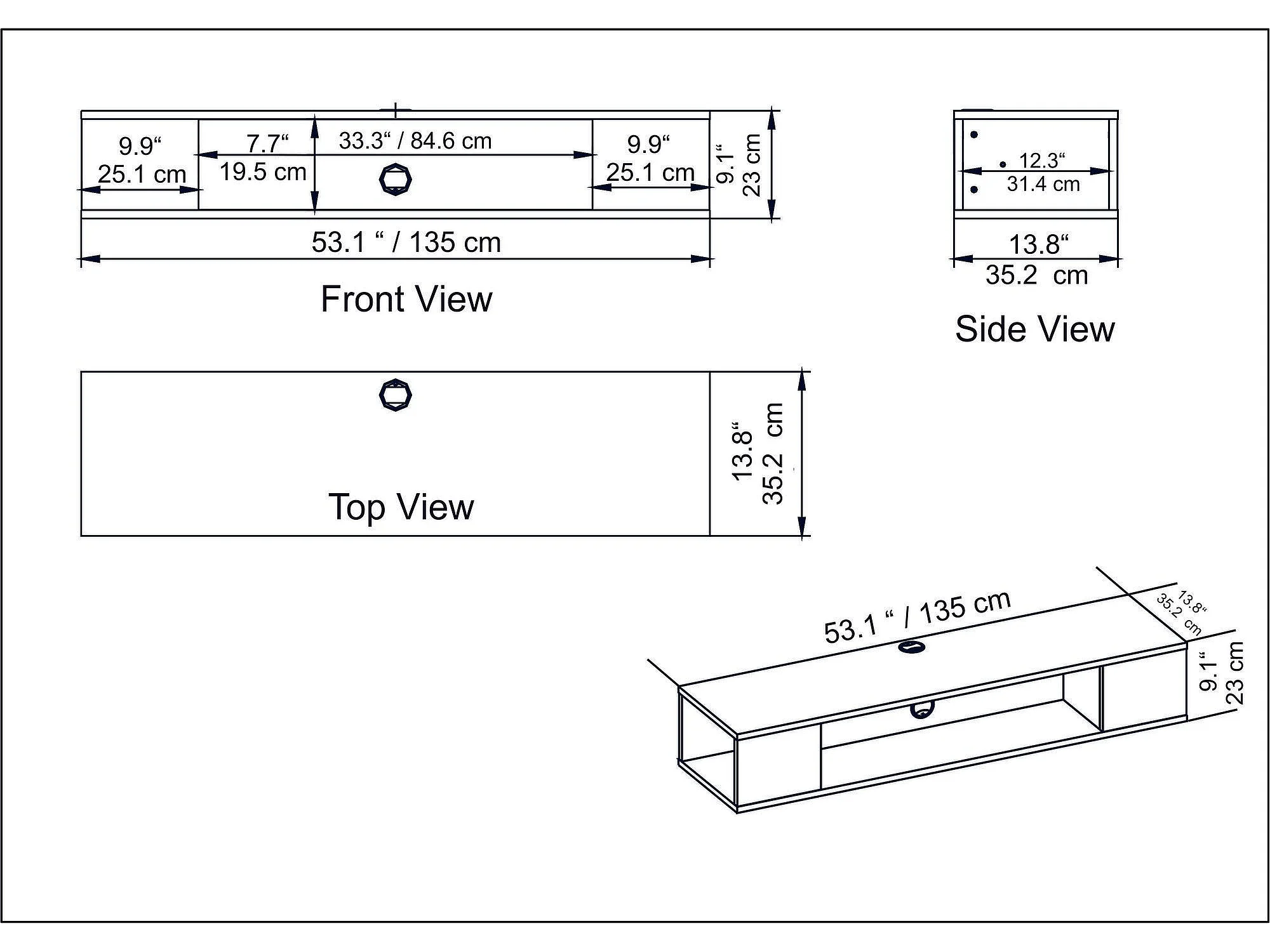 Moderne witte tv-standaard, 135 cm | 100% melamine gecoate spaanplaat, 18 mm dik | Wandmontage, meerdere planken, elegant en functioneel design
