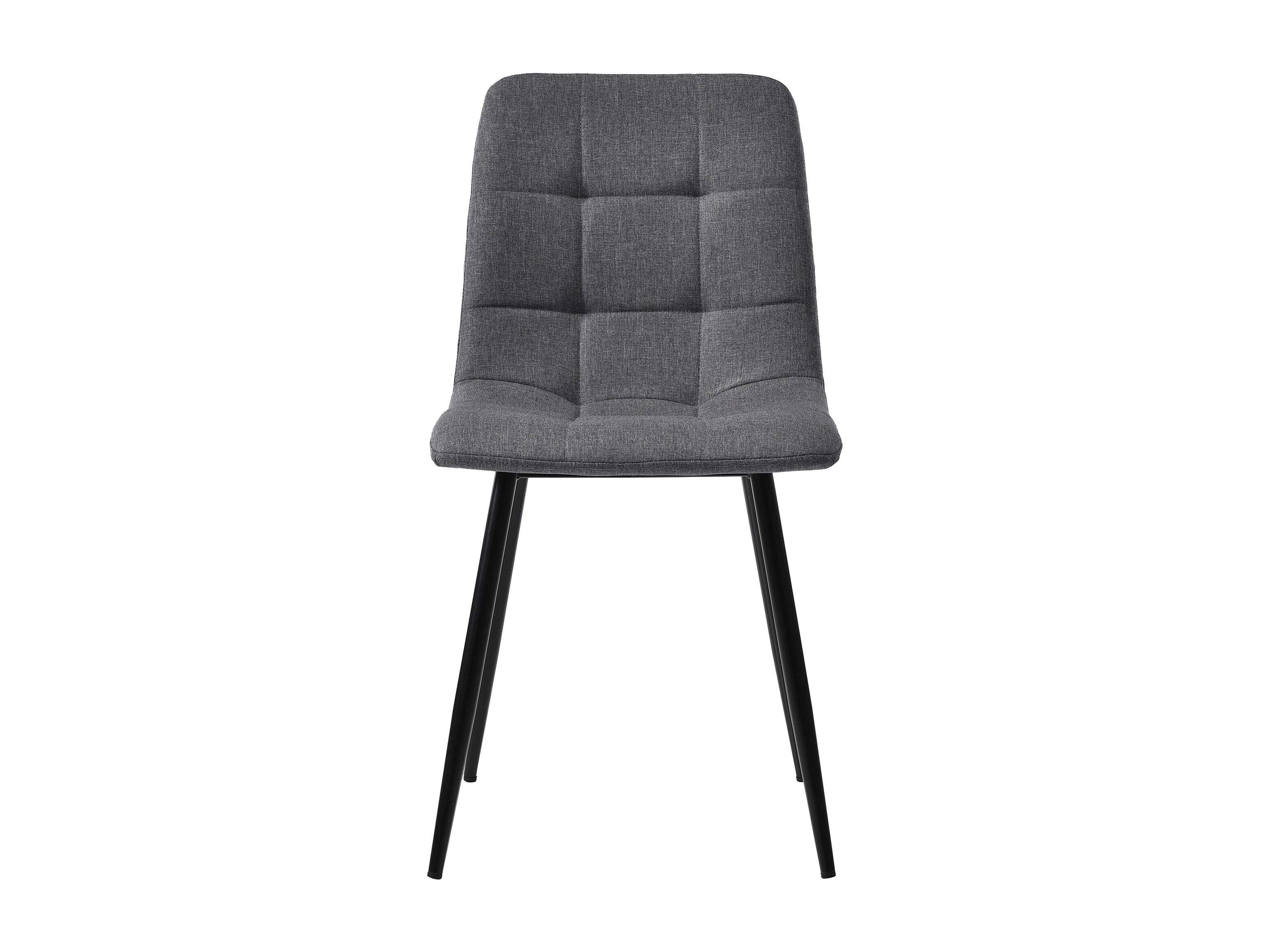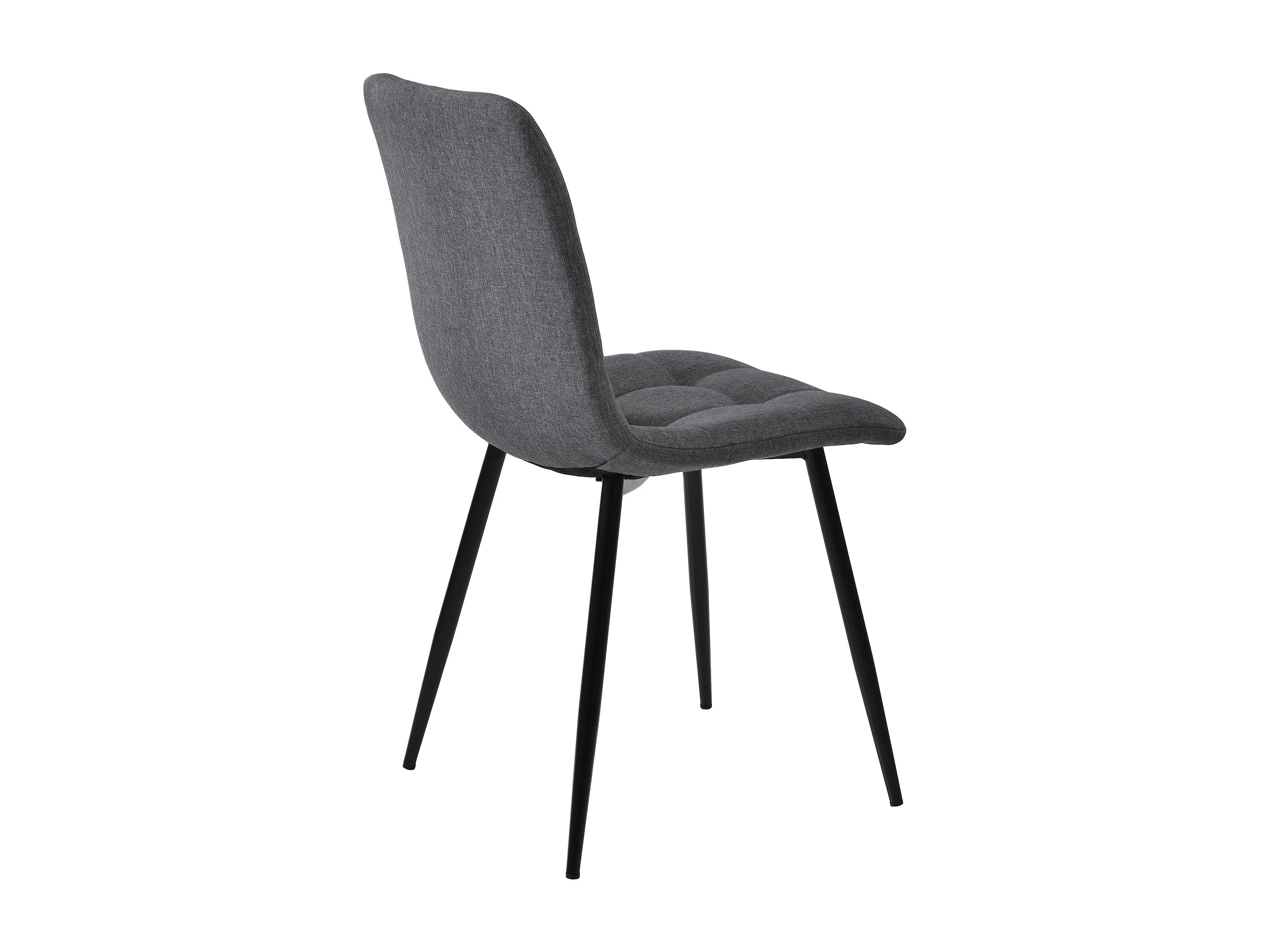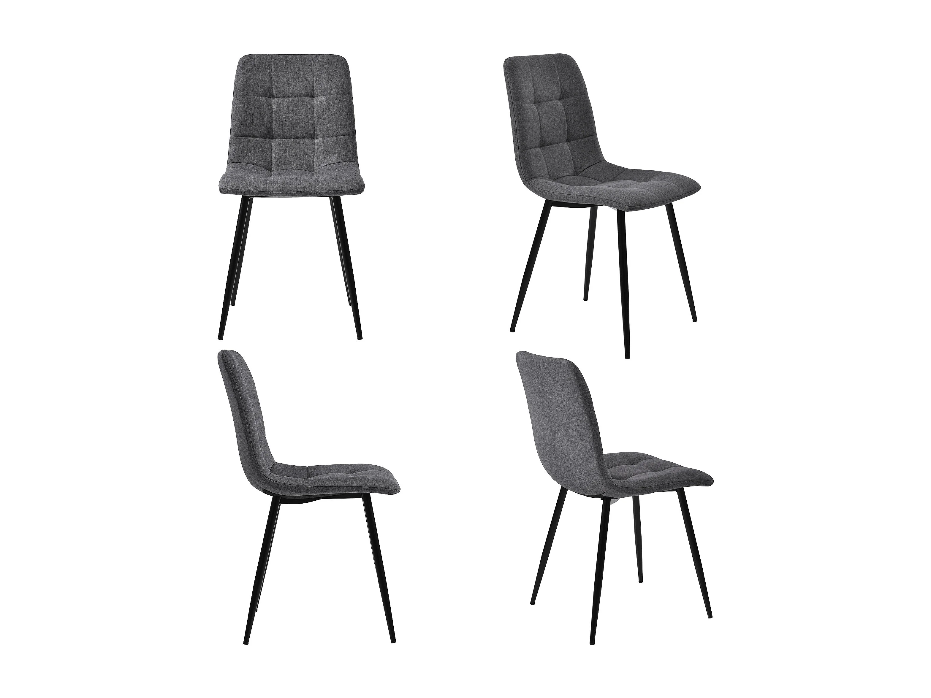 Eetkamerset van 5 stuks, tafel 140x80x75 cm in grijs MDF met zwarte metalen poten, 4 zwarte fluwelen stoelen met ruitpatroon