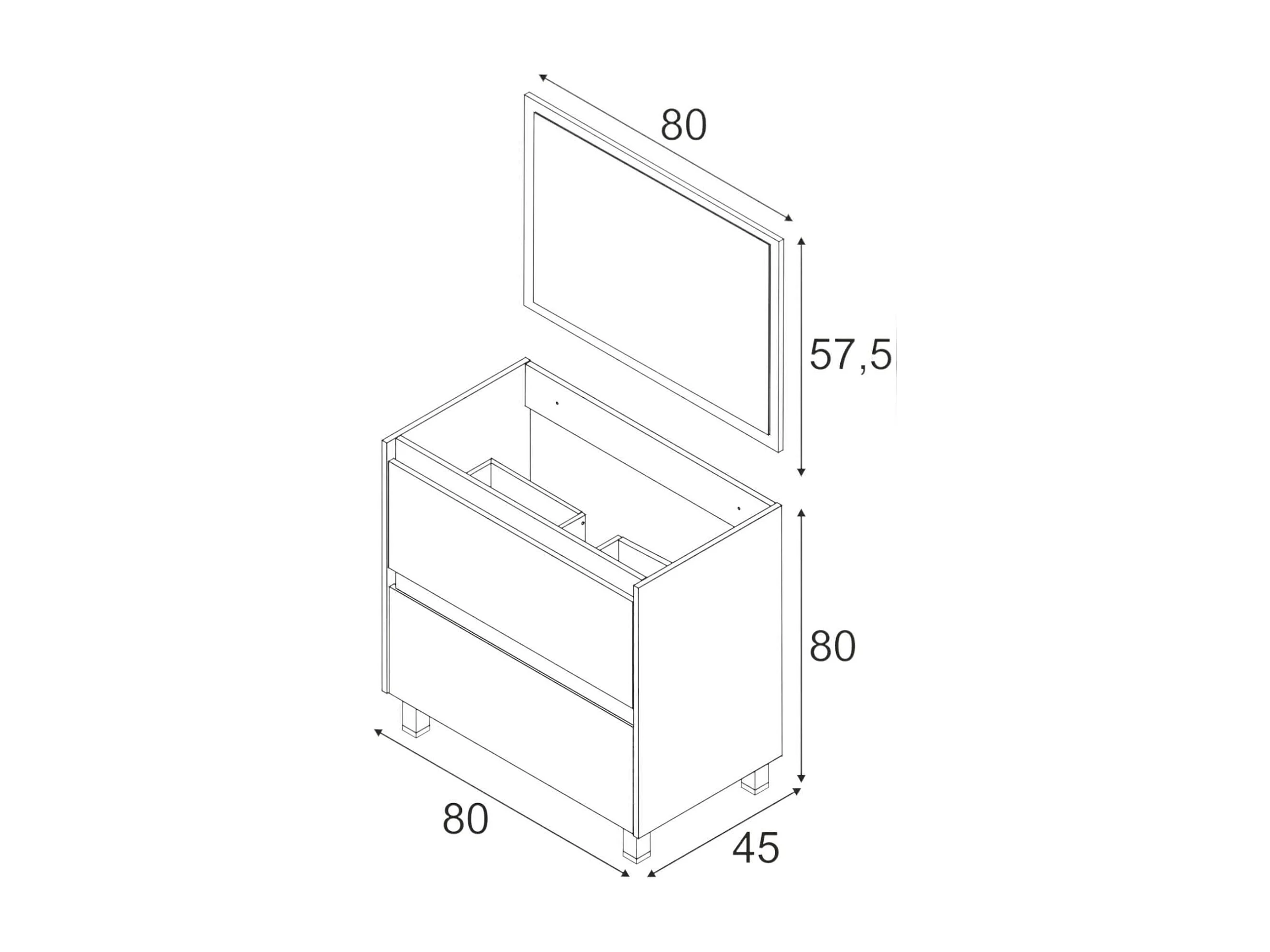 Dmora Onderkast Modesto 80x80x45h cm Bruin Eiken Met Spiegel 2 Laden, Soft Close