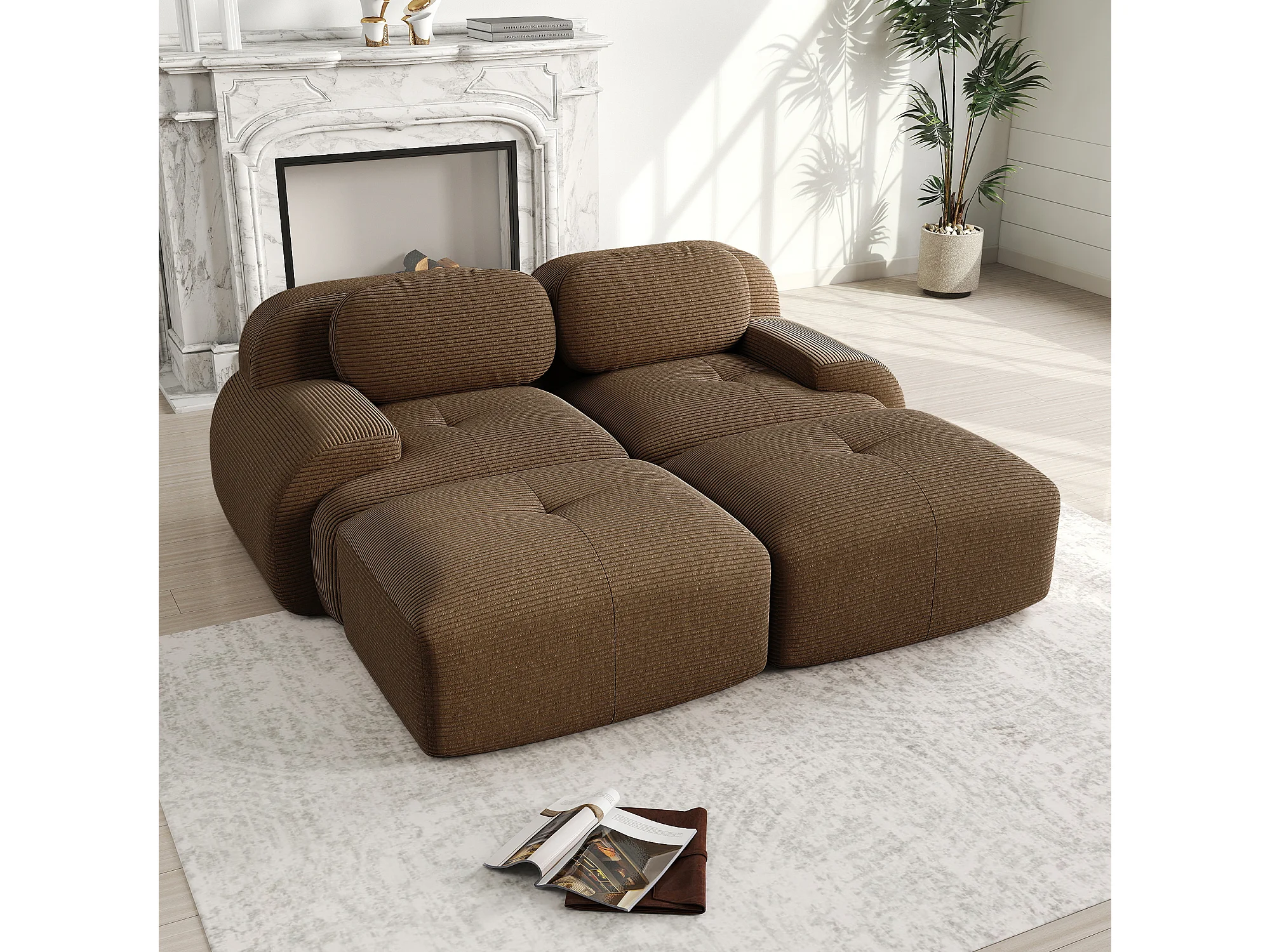 Modulaire 2-zitsbank met chaise longue in bruin corduroy.