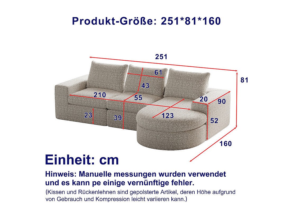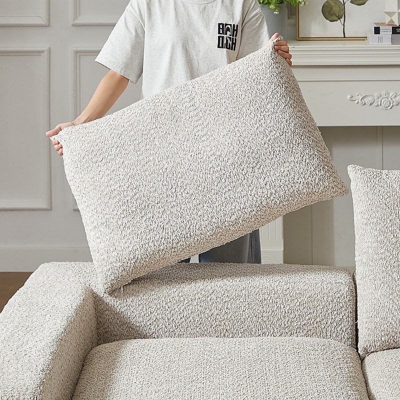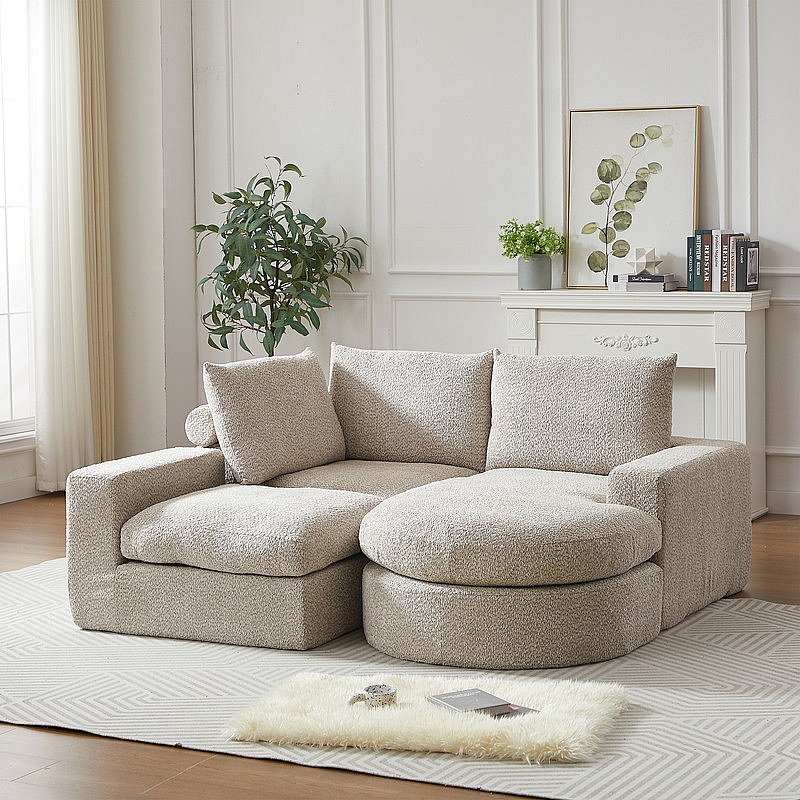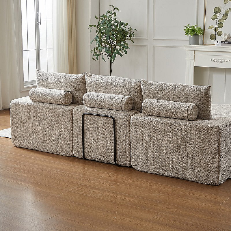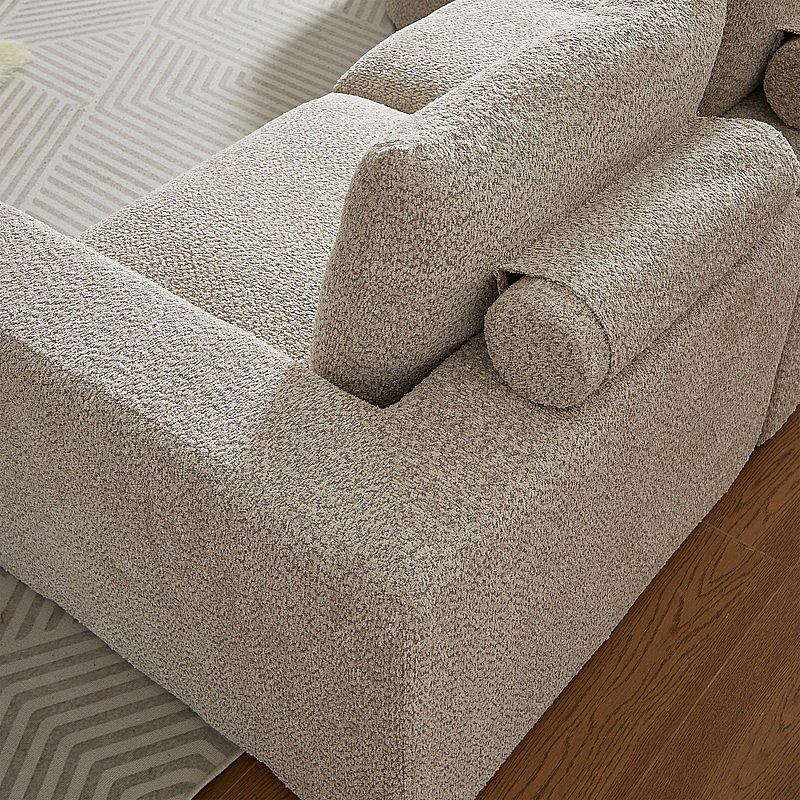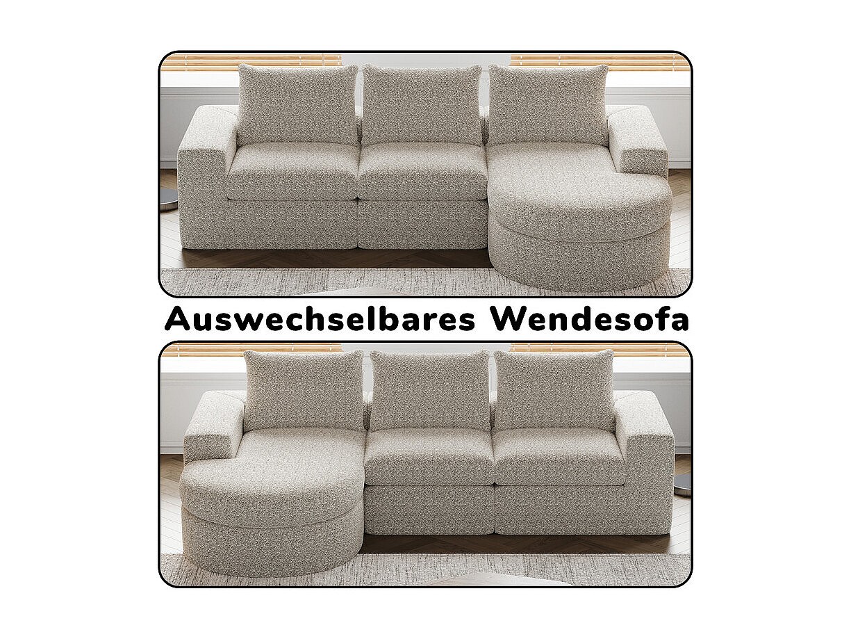 Modulaire 3-zits Hoekbank, met Omkeerbare Gebogen Lounger, 3 Kussens en Nekkussens, Chenille Stof, Beige