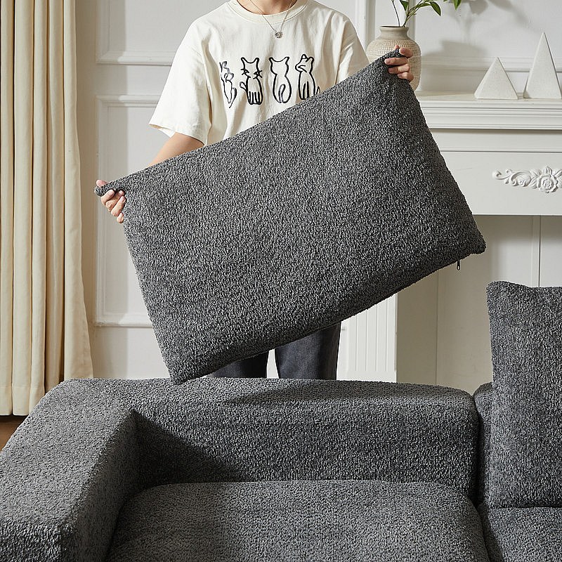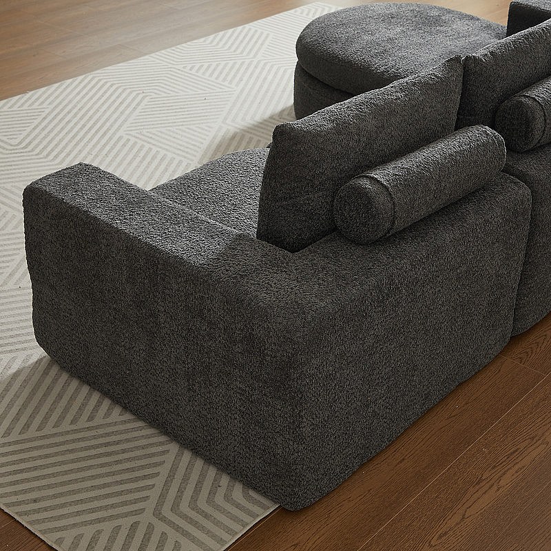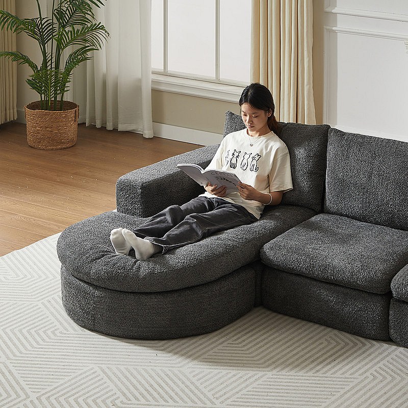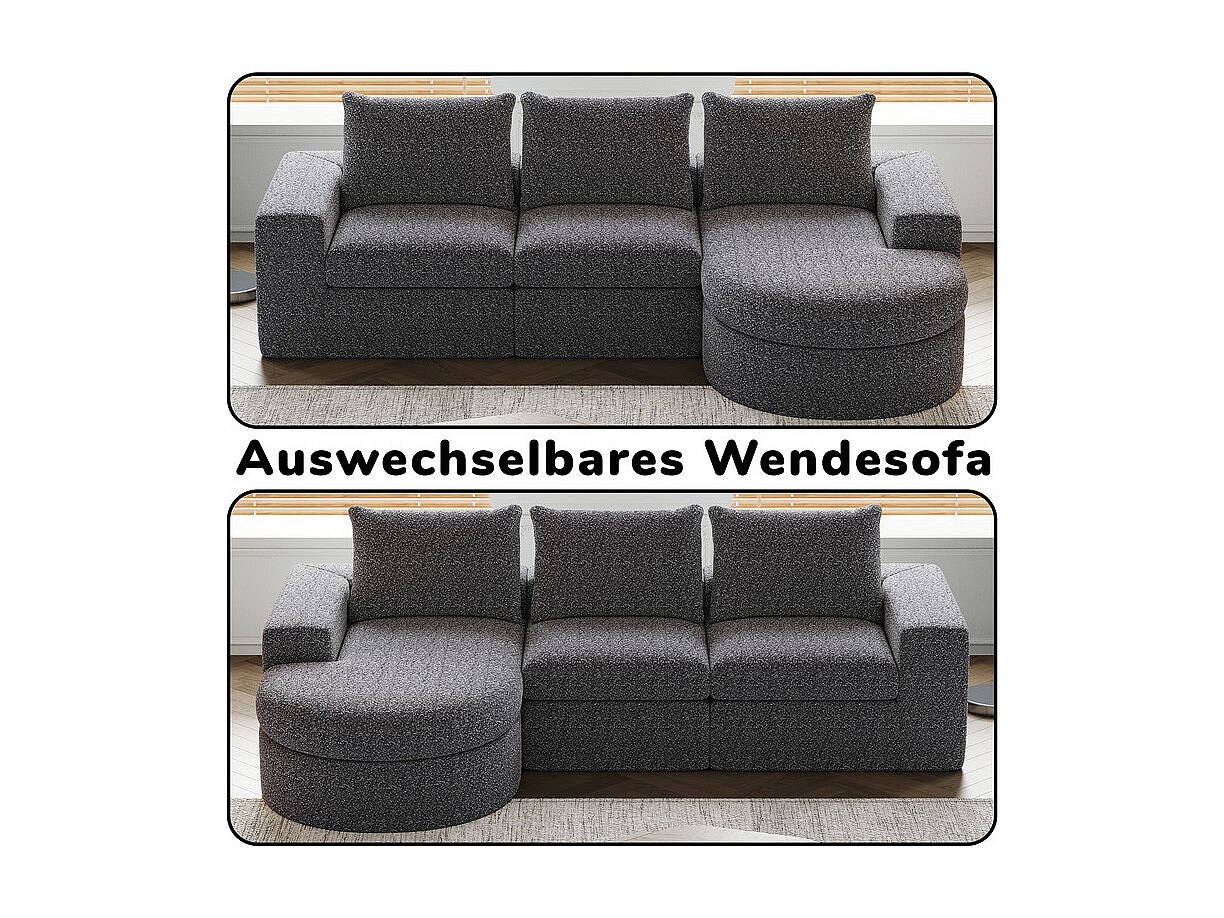 Modulaire 3-zits Hoekbank, met Omkeerbare Gebogen Lounger, 3 Kussens en Nekkussens, Chenille Stof, Grijs