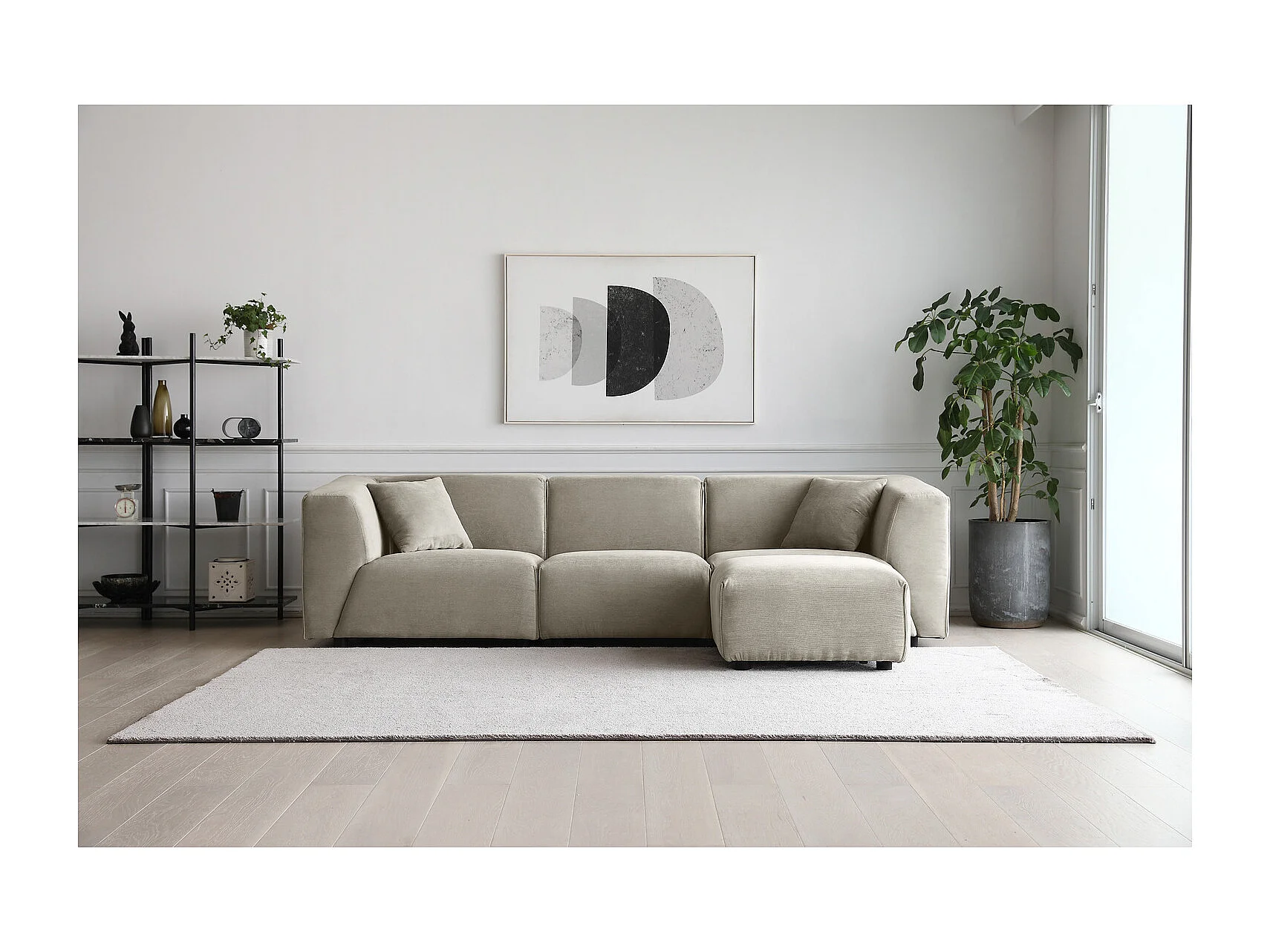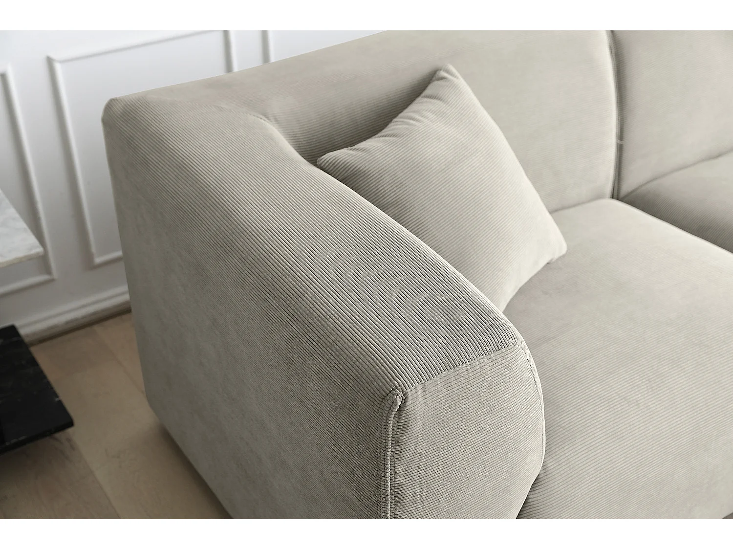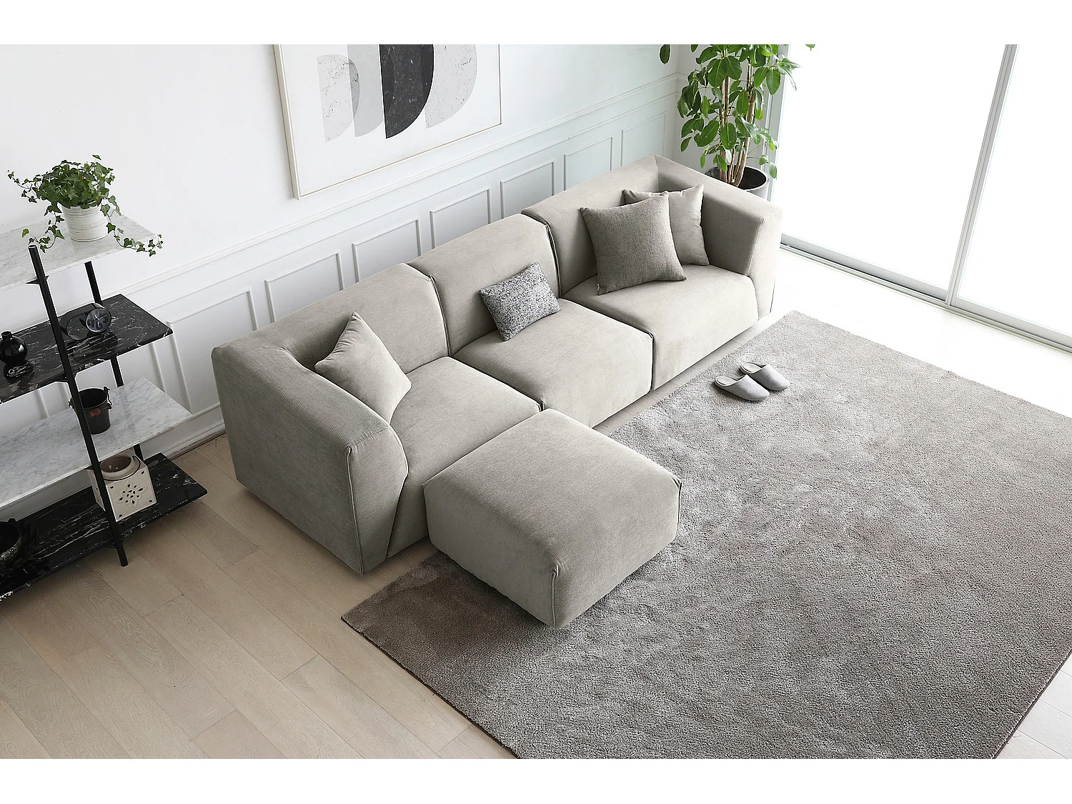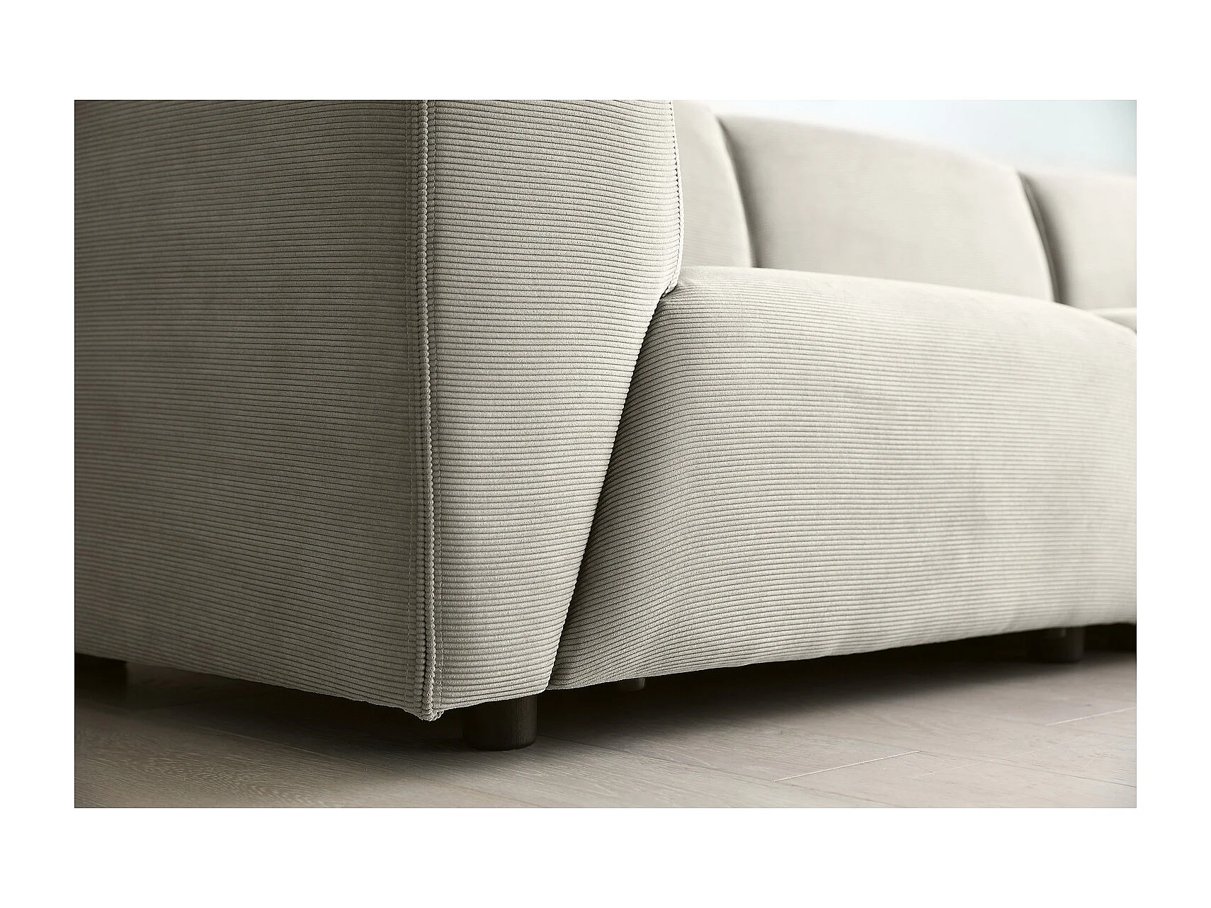 Modulaire 3-zitsbank + 1 poef van lichtgrijze ribfluweel MONROE - Scandinavisch design