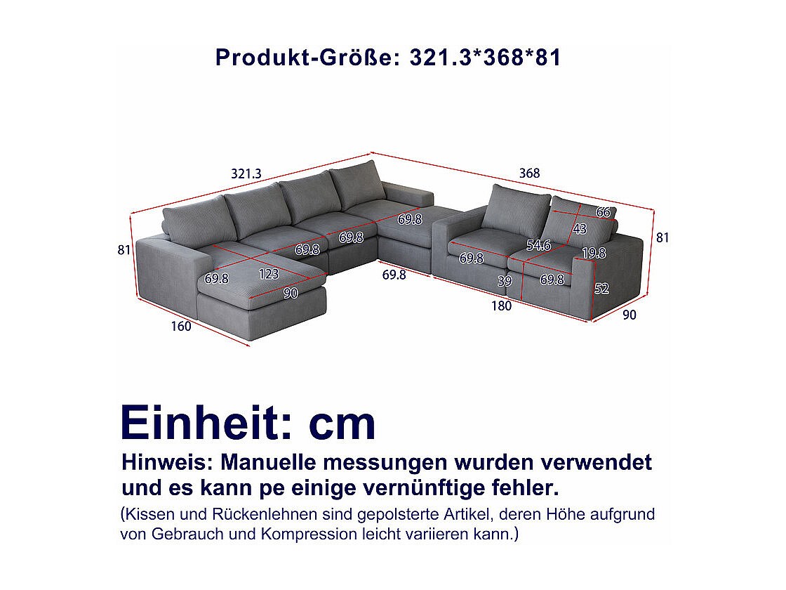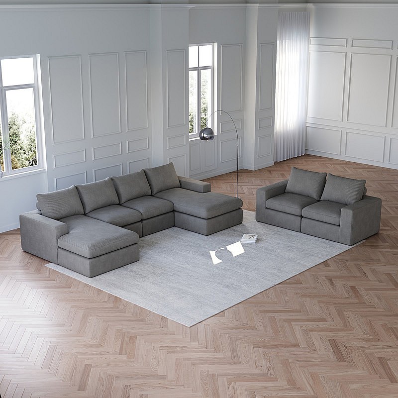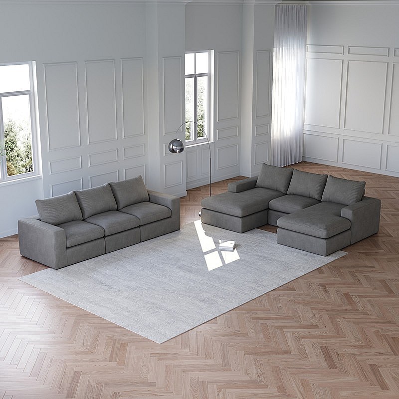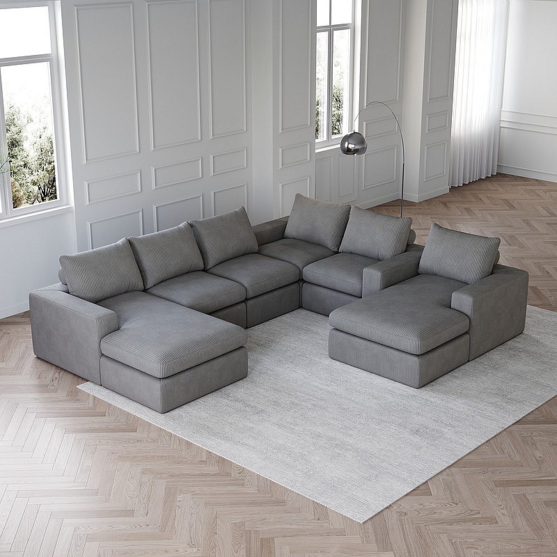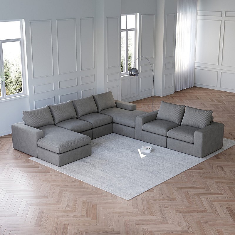 Modulaire 6-zits Hoekbank, van Ribfluweel, met Omkeerbare Lounger, DIY Woonkamer, Antracietgrijs
