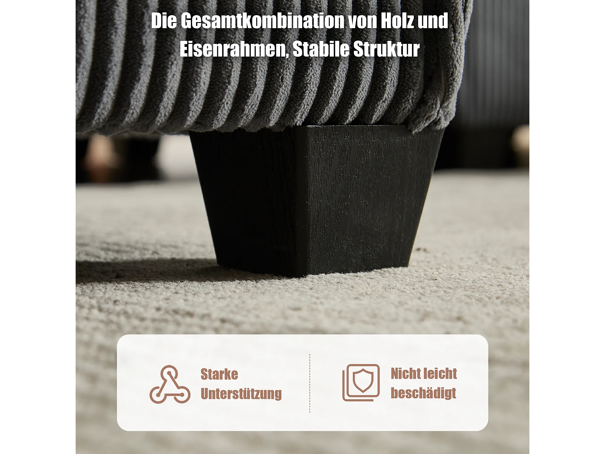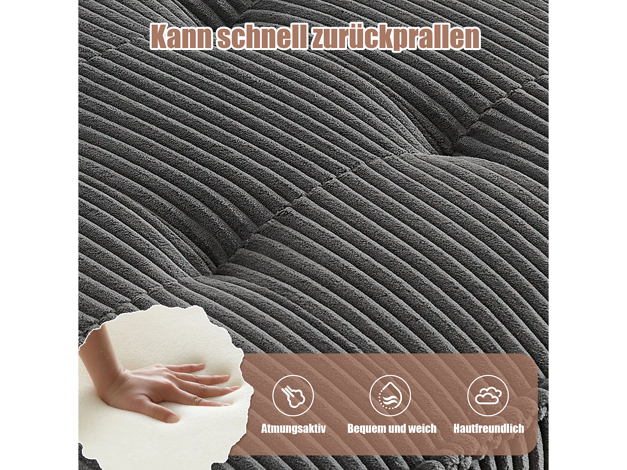Modulaire 6-zitsbank, corduroy, ergonomisch, geïntegreerde opbergruimte, omvormbaar tot U/L/bed, houten en metalen constructie, grijs (308x154x82 cm)