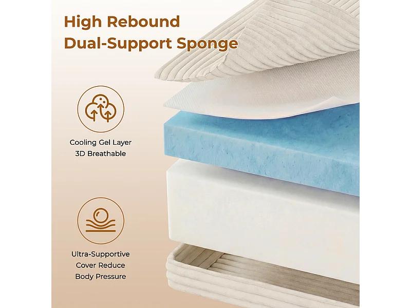 Modulaire Bank 2-zits in Ribfluweel, met 2 kussens, 202x101x82cm, Beige