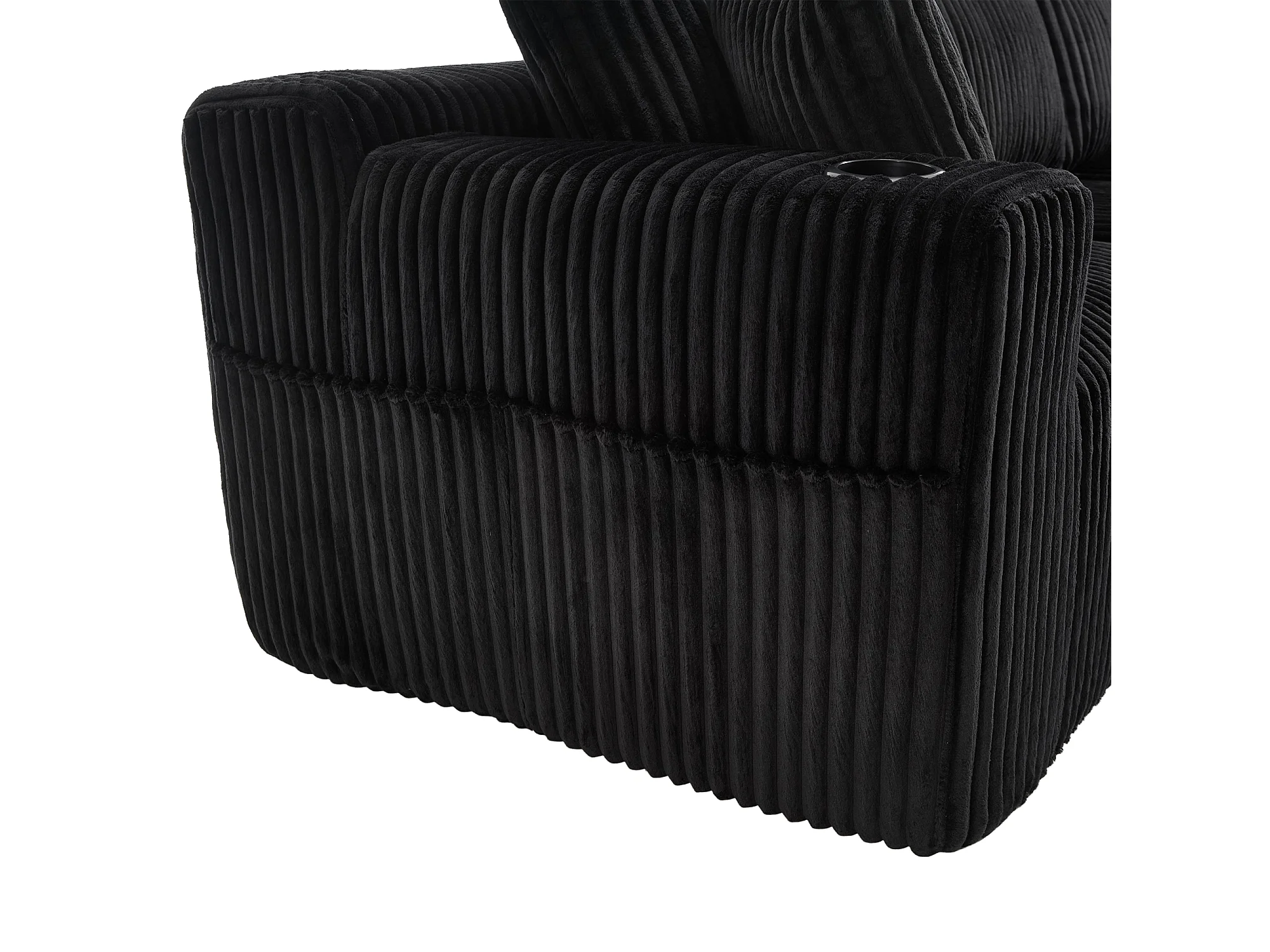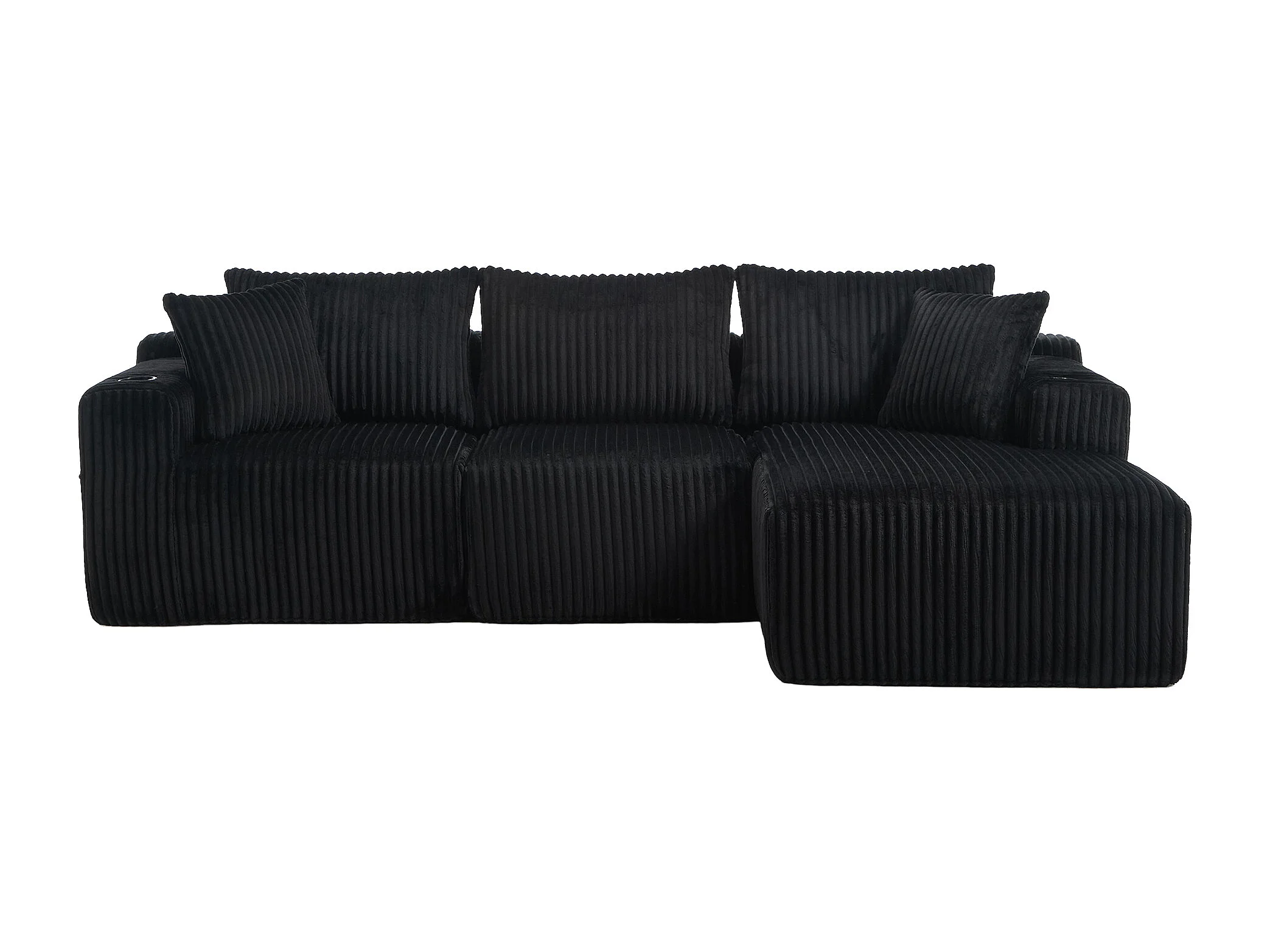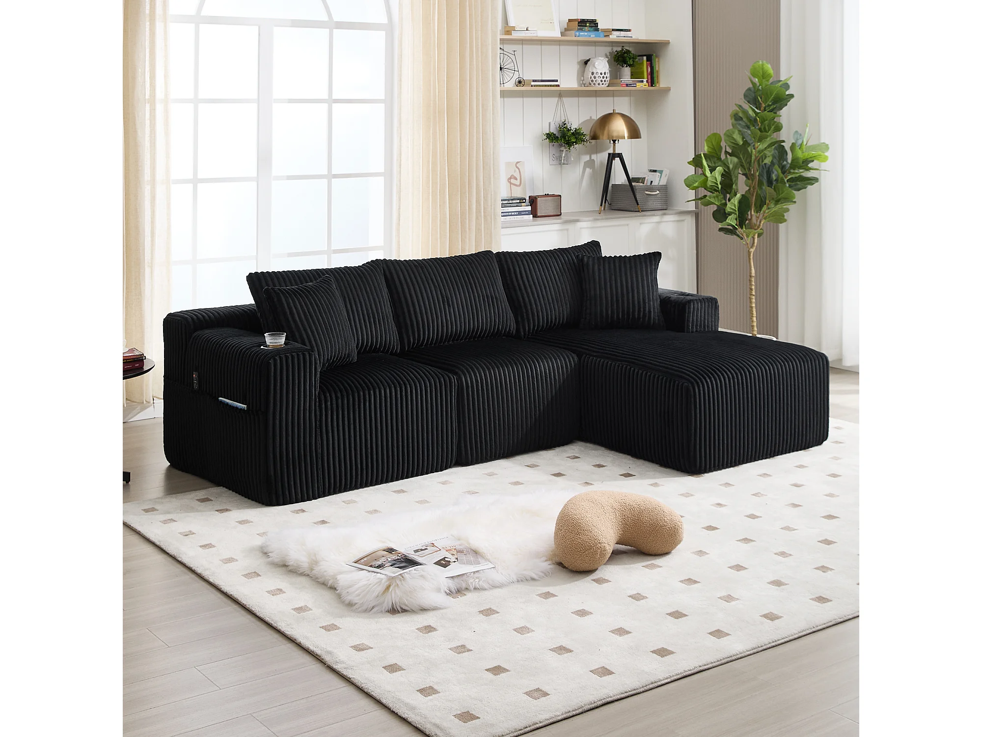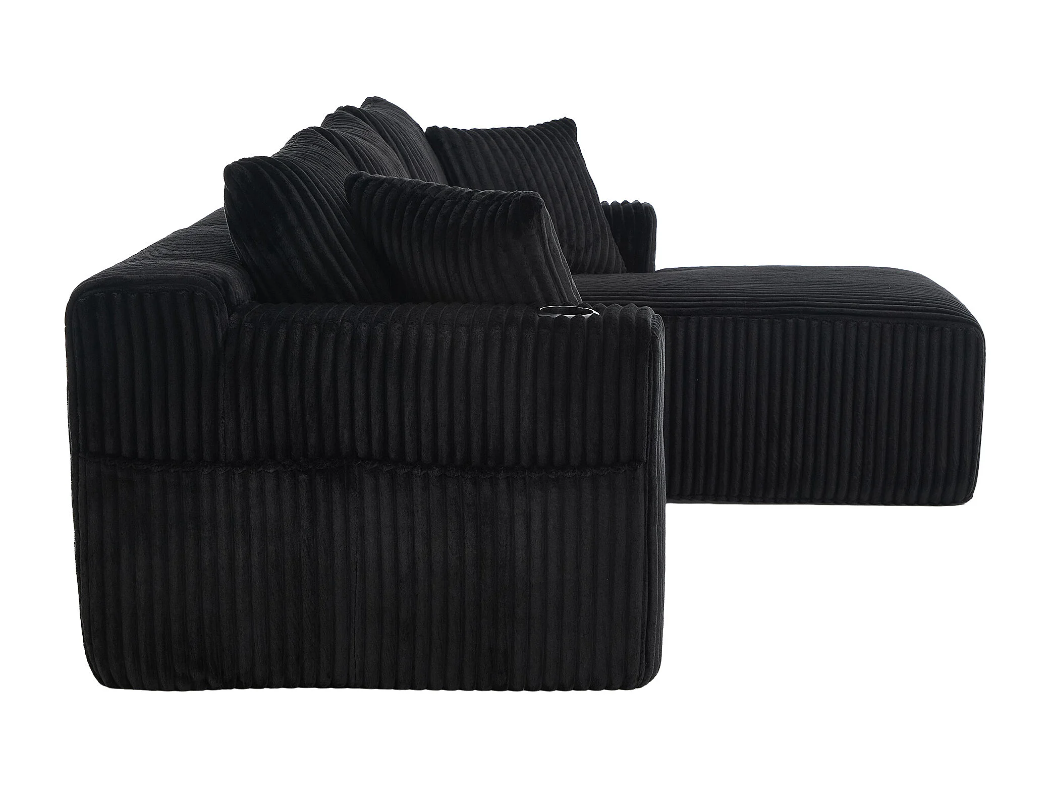Modulaire Bank - Chaiselongue + 2-Zits, Flexibele Zelfsamenstelling - Met 5 Kussens, Zijvakken & Bekerhouders - Hoogdicht Schuim - Fluweel Zwart