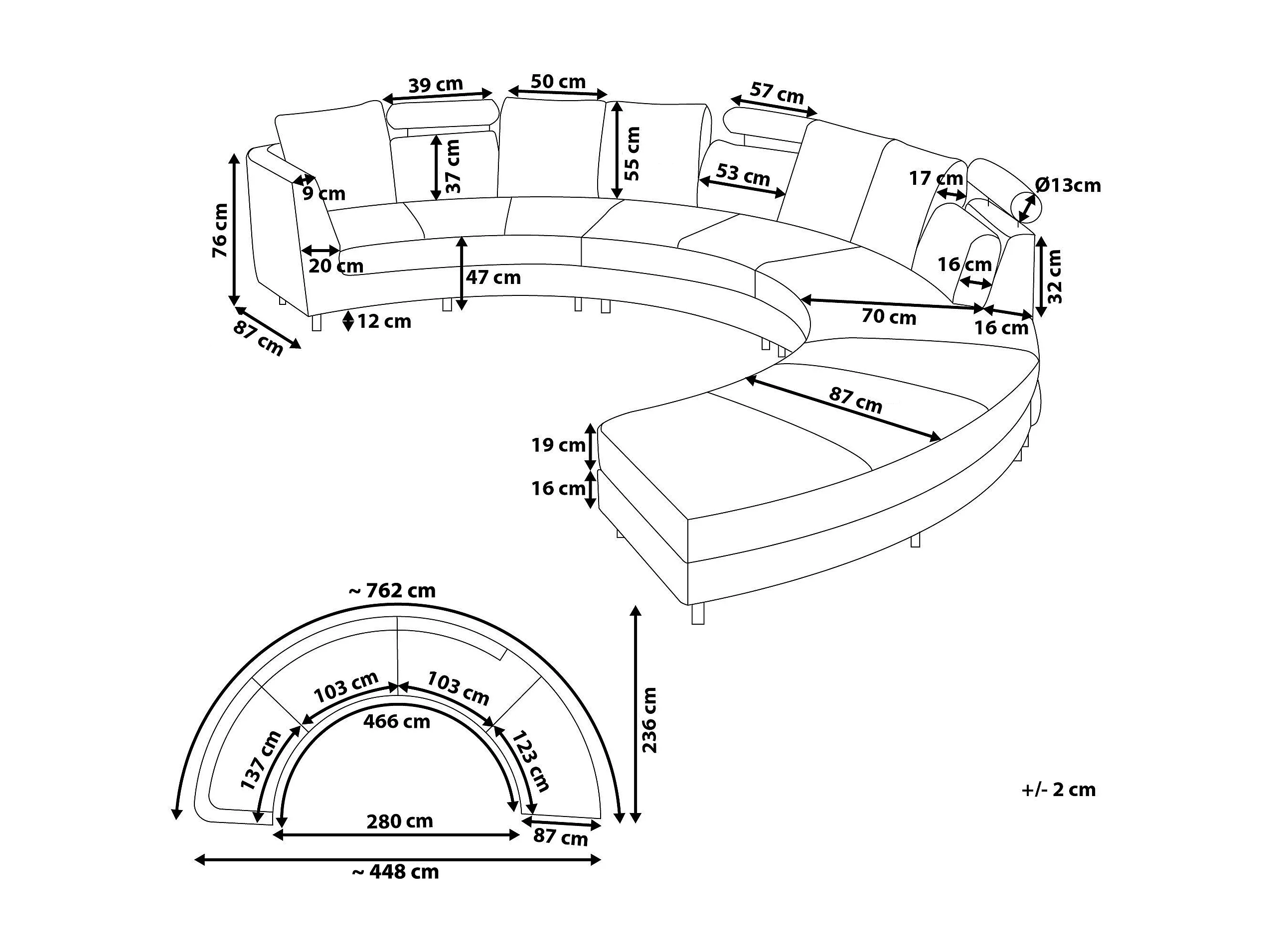Halfronde bank ROTUNDE Fluweel Donkerblauw 7-zitter