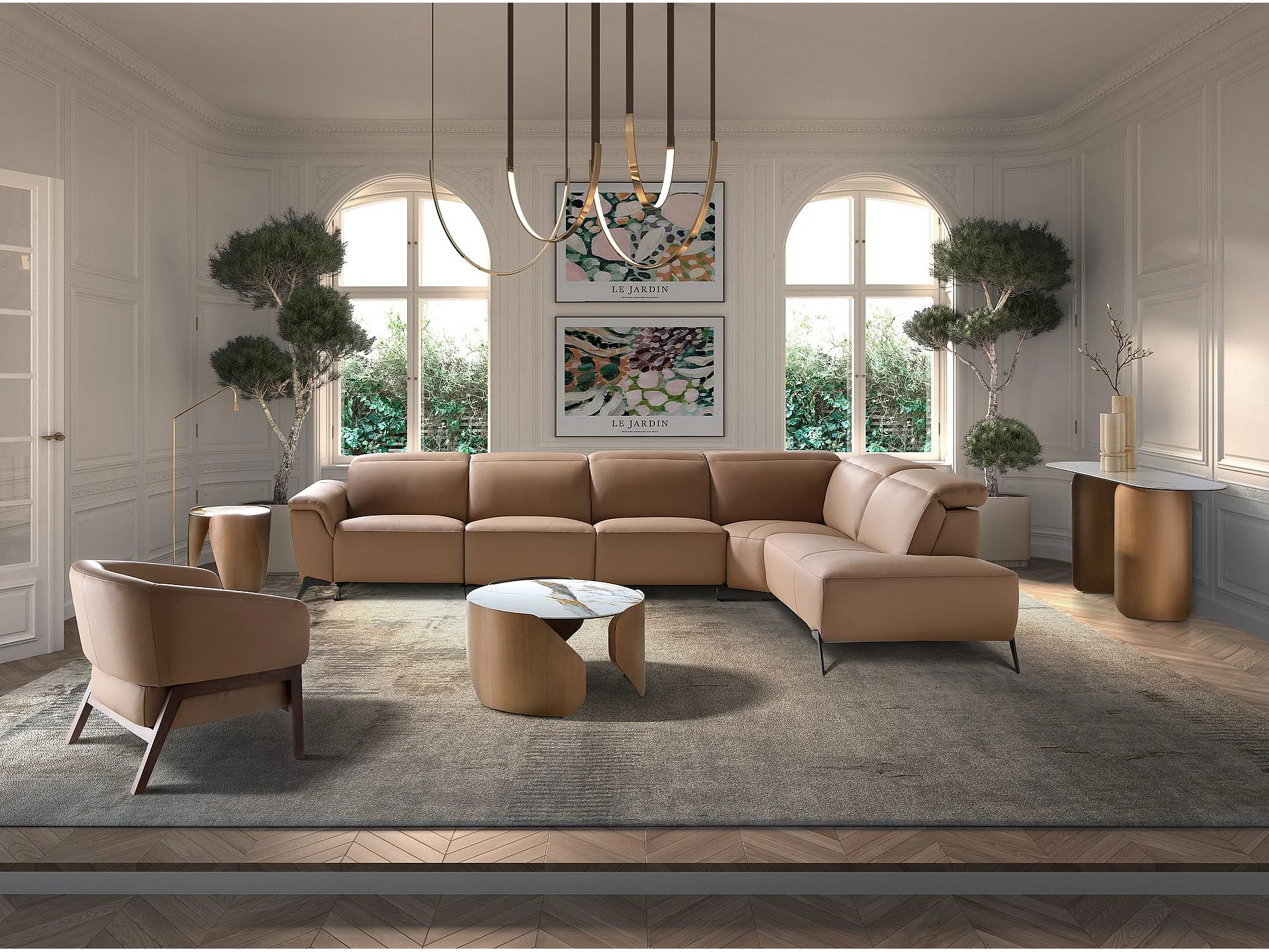 Modulaire chaise longue relaxbank rechts in bruin leer 6280 ANGEL CERDA