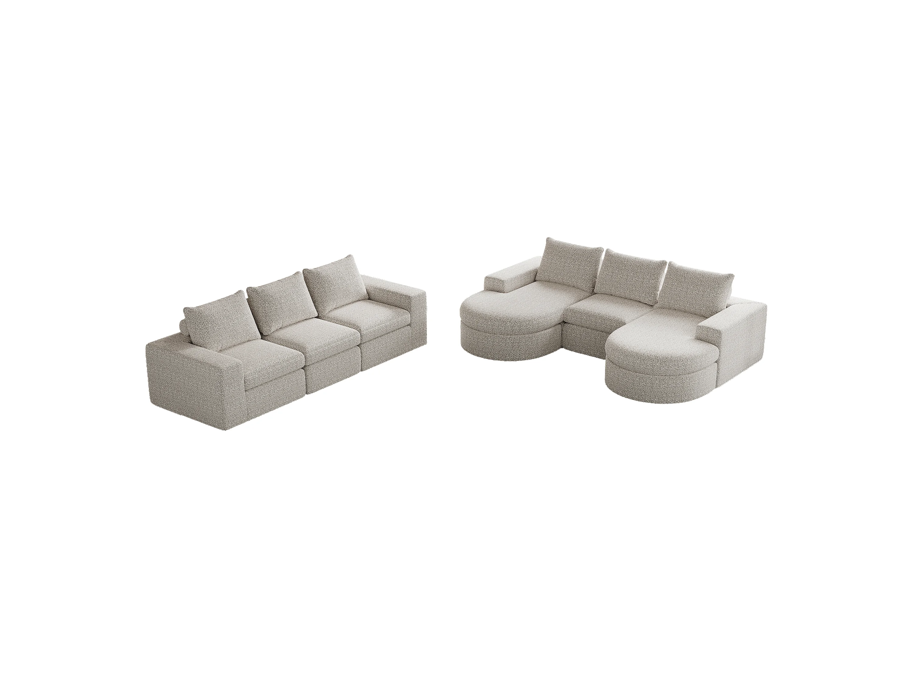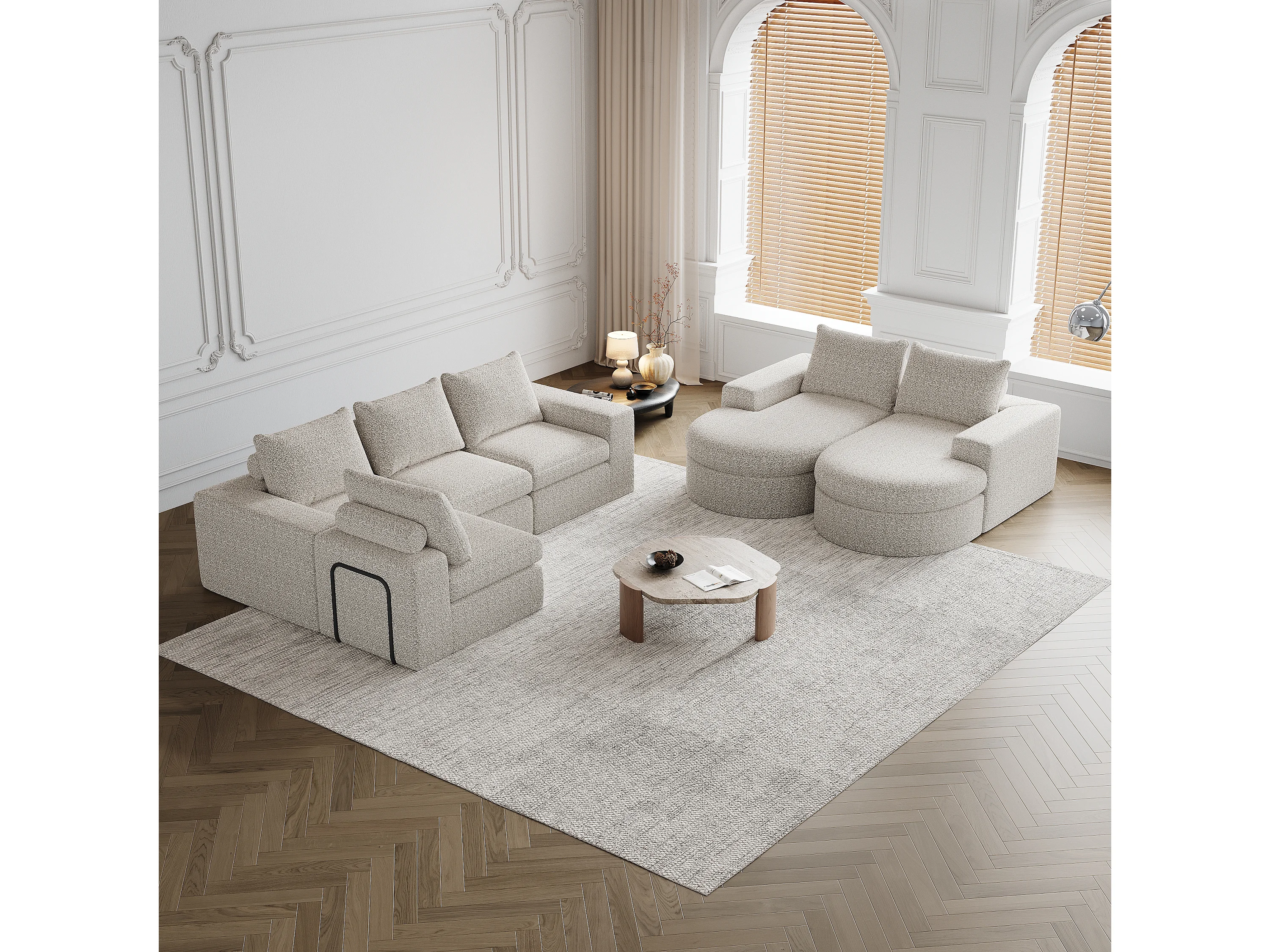 Modulaire chenillebank met gebogen elementen en voetenbank, gecomprimeerd ontwerp, schuim met hoge dichtheid, beige (114x43x43 cm)