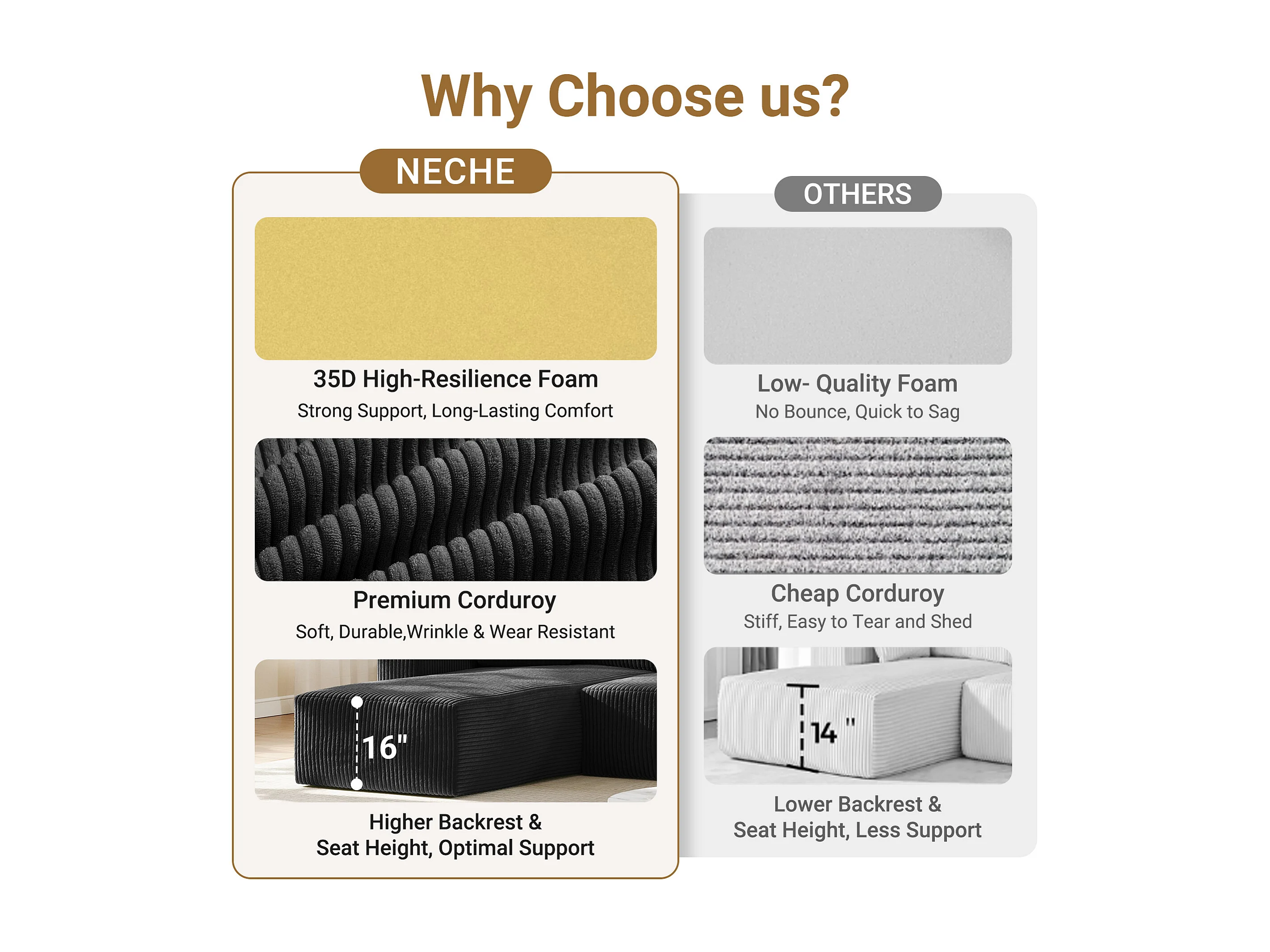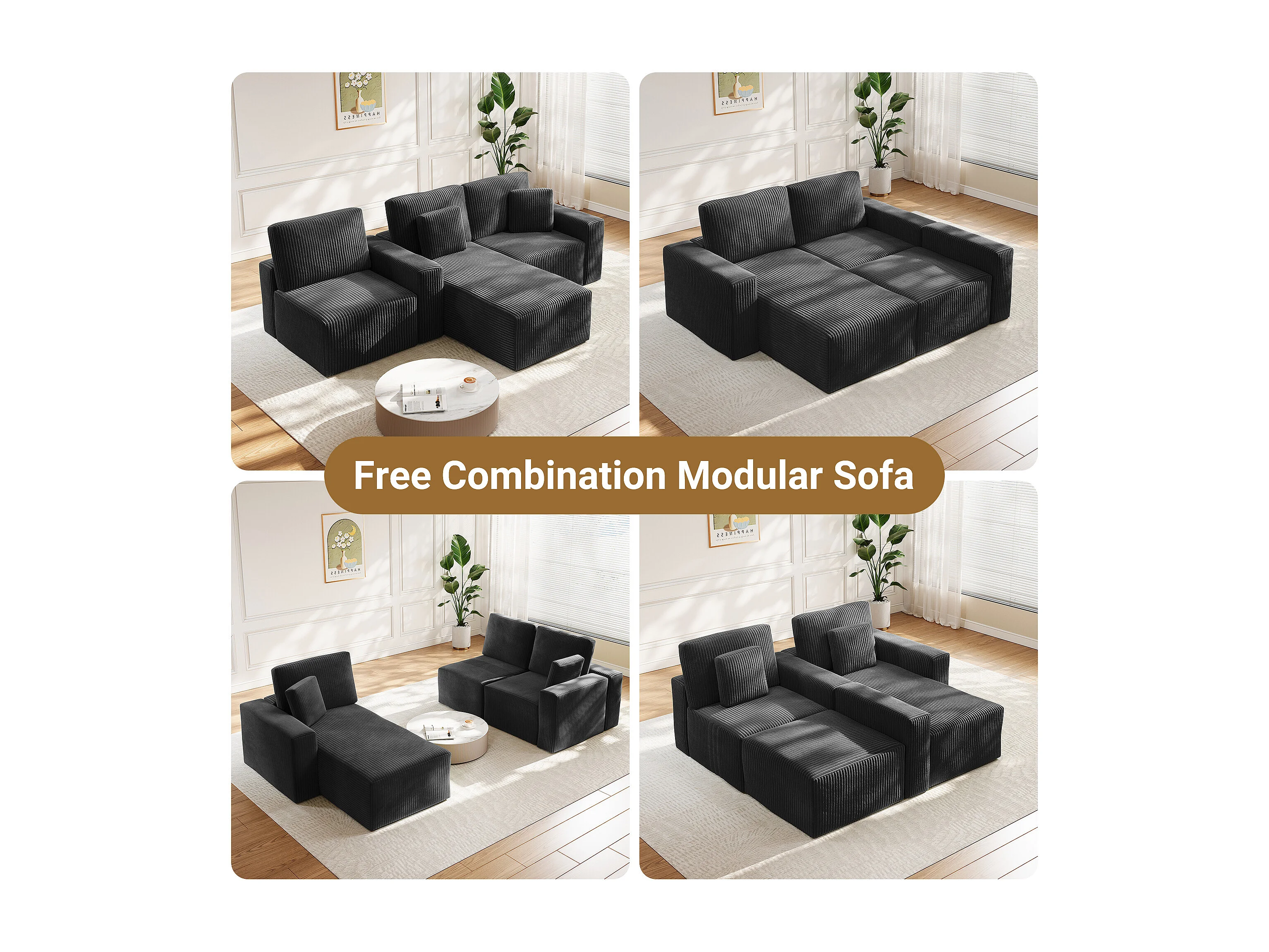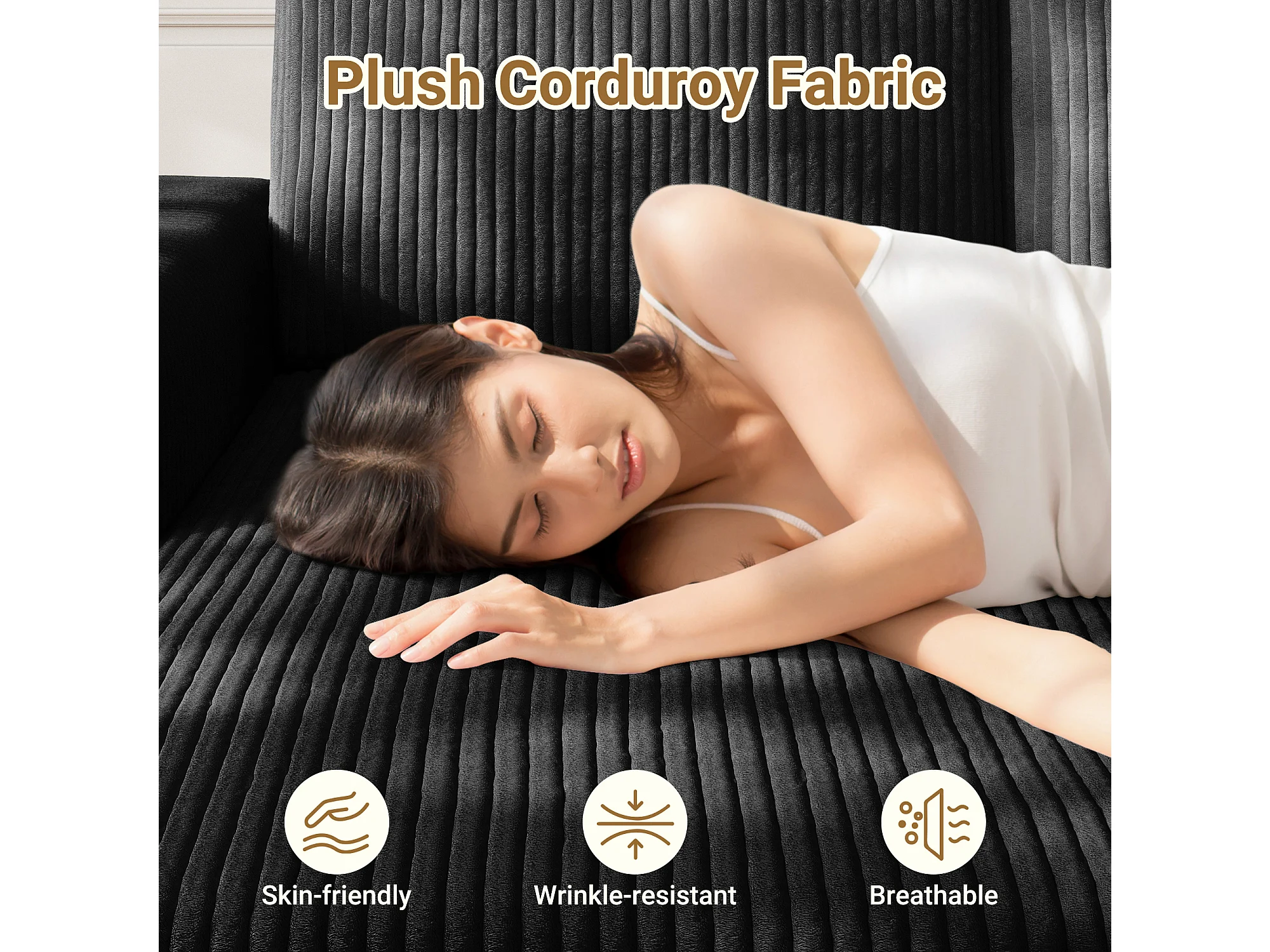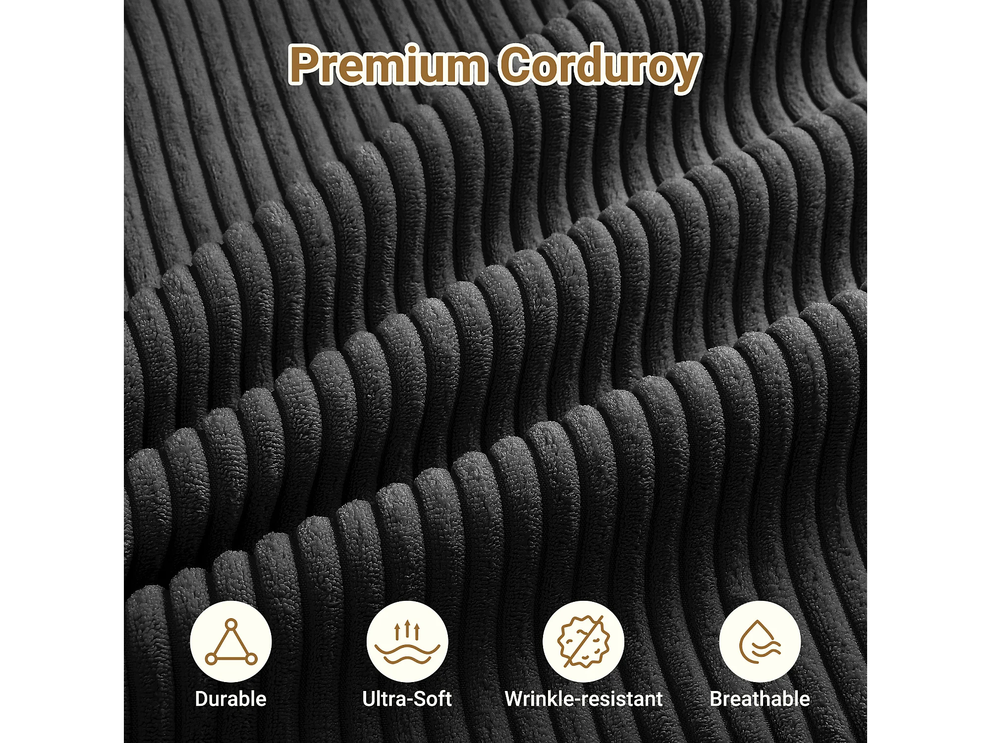 Modulaire hoekbank links 3-zits in ribfluweel, met 2 kussens, chaise longue 70x125cm, Zwart
