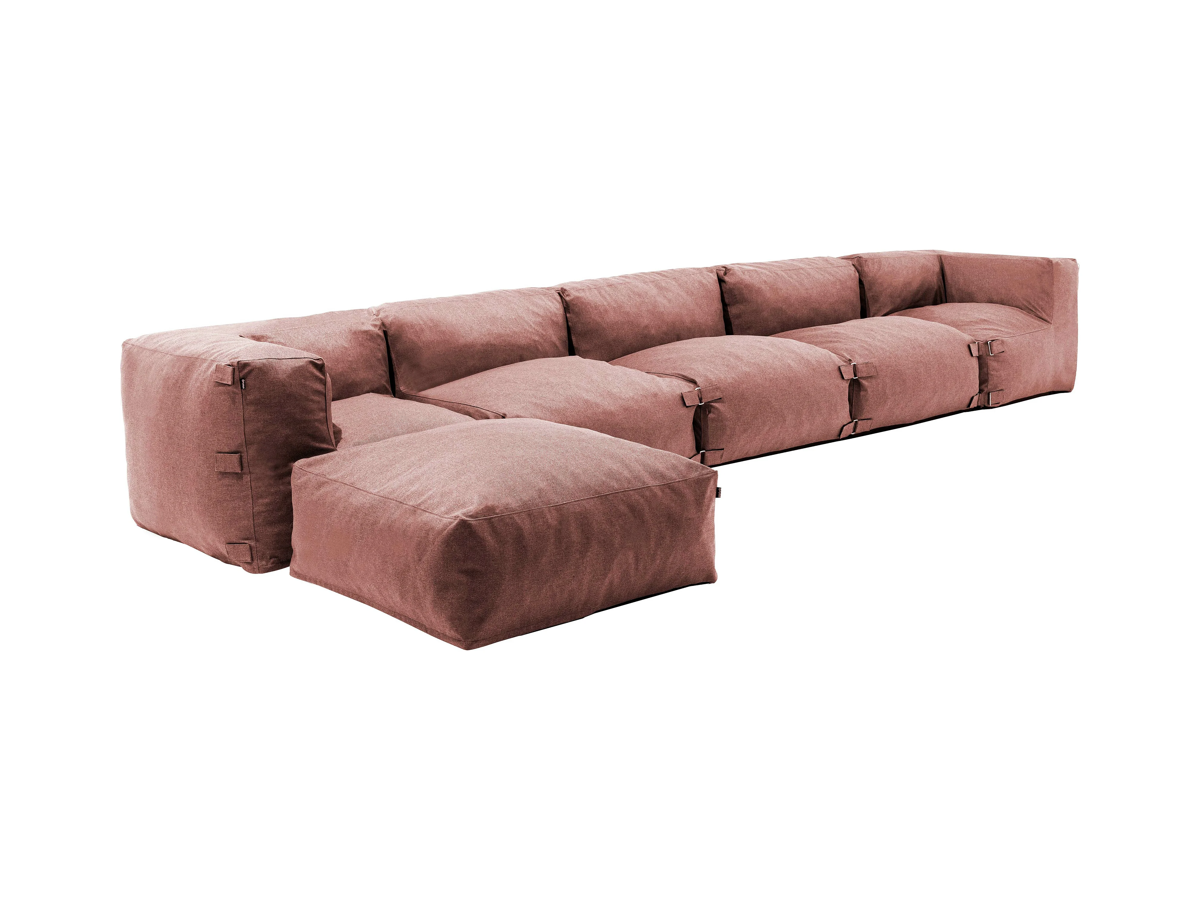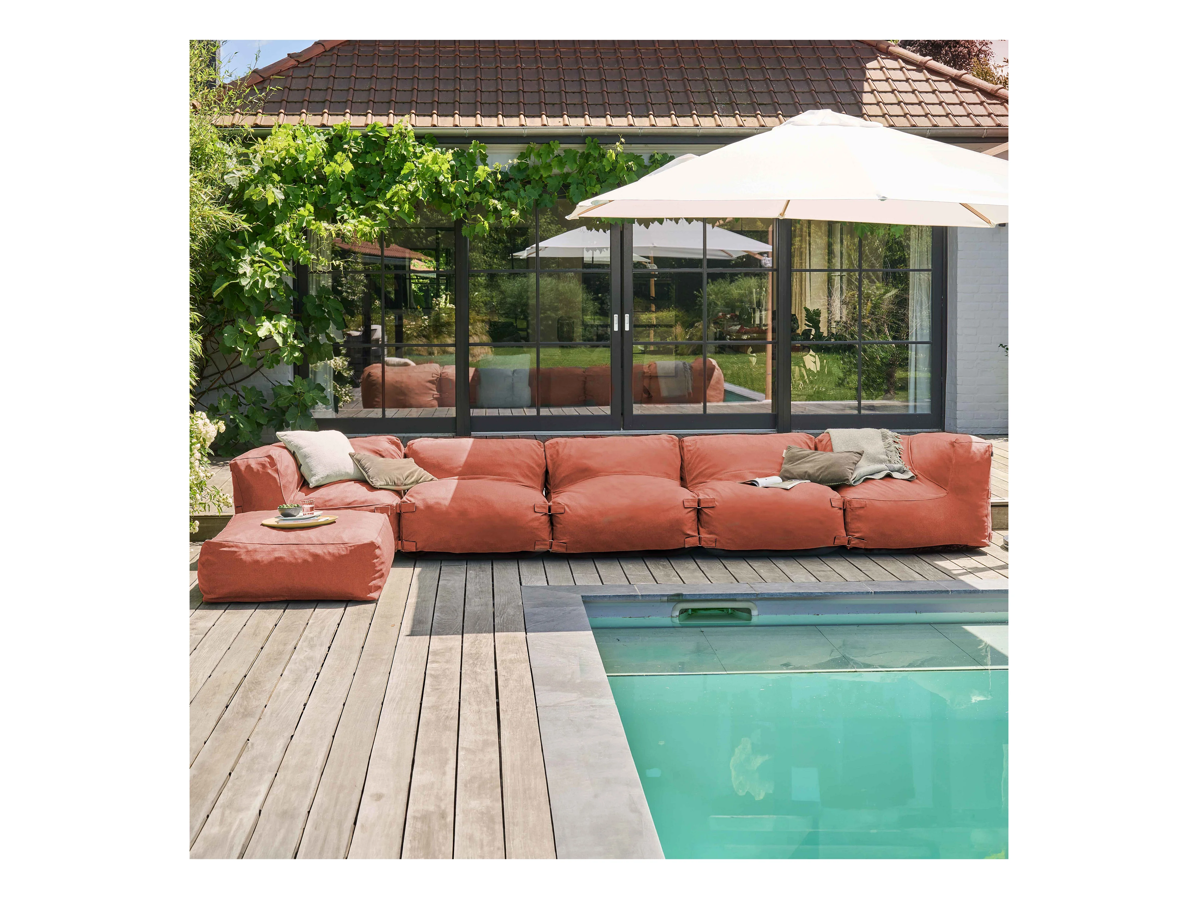 Modulaire hoekbank met 3 fauteuils, 2 hoeken en 1 poef in terracotta