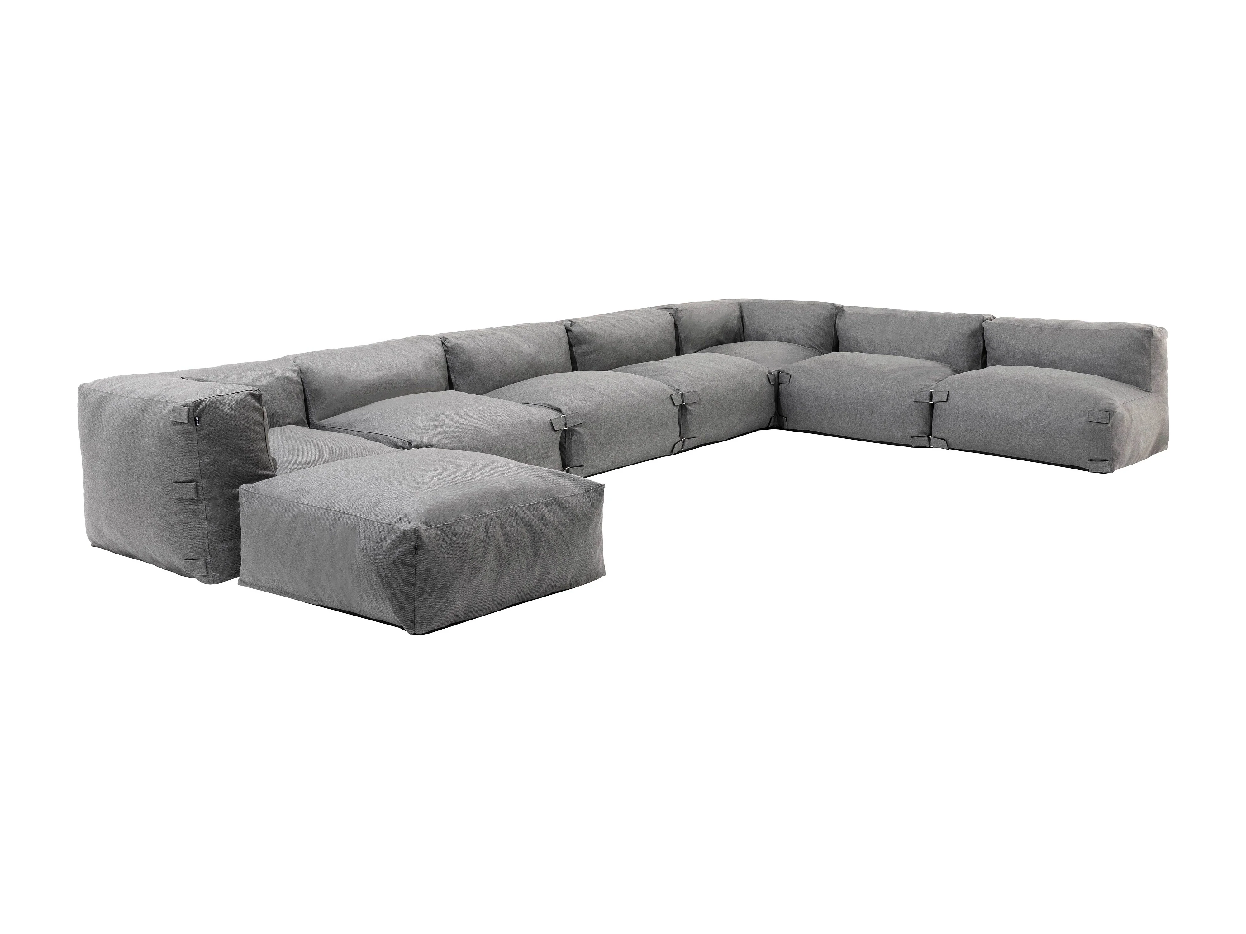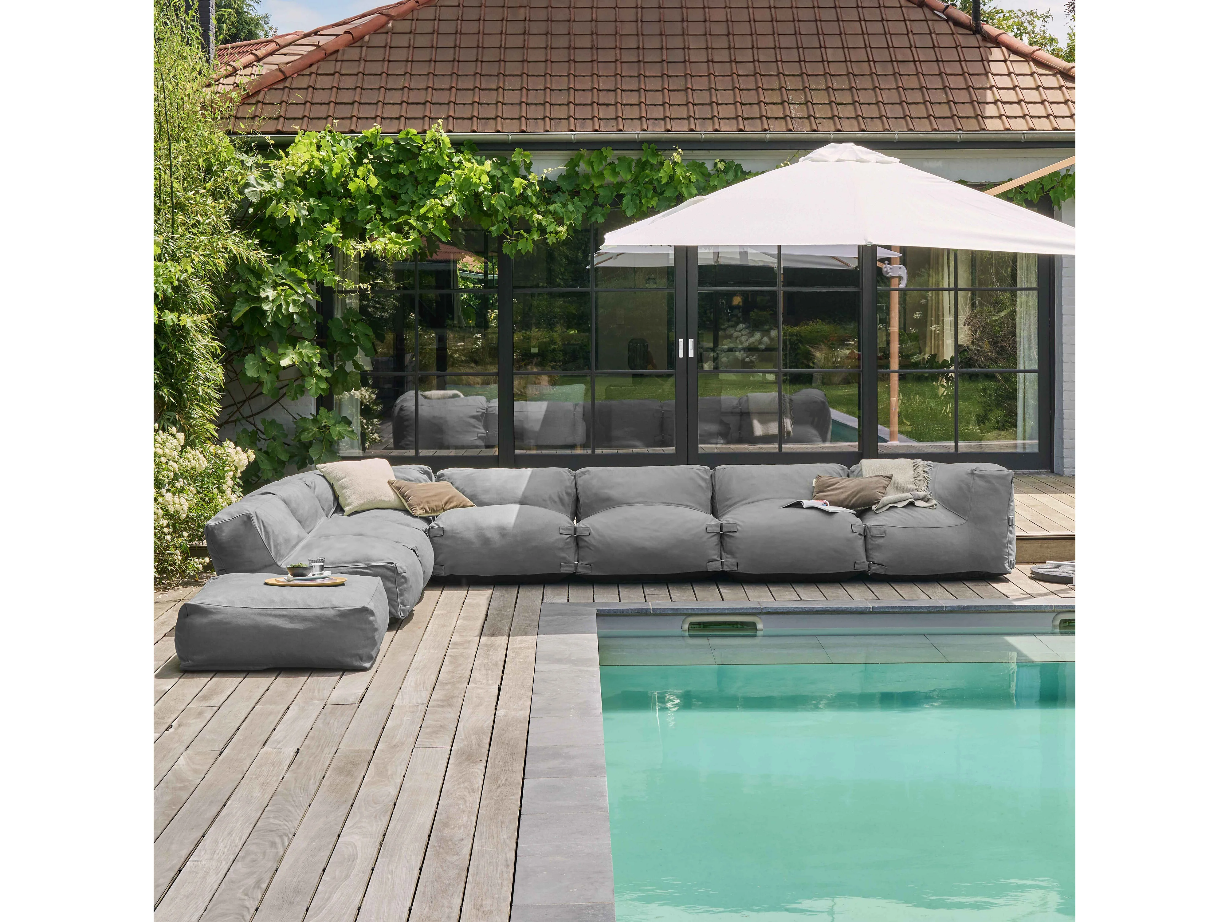 Modulaire hoekbank met 5 fauteuils, 2 hoeken en 1 grijze poef