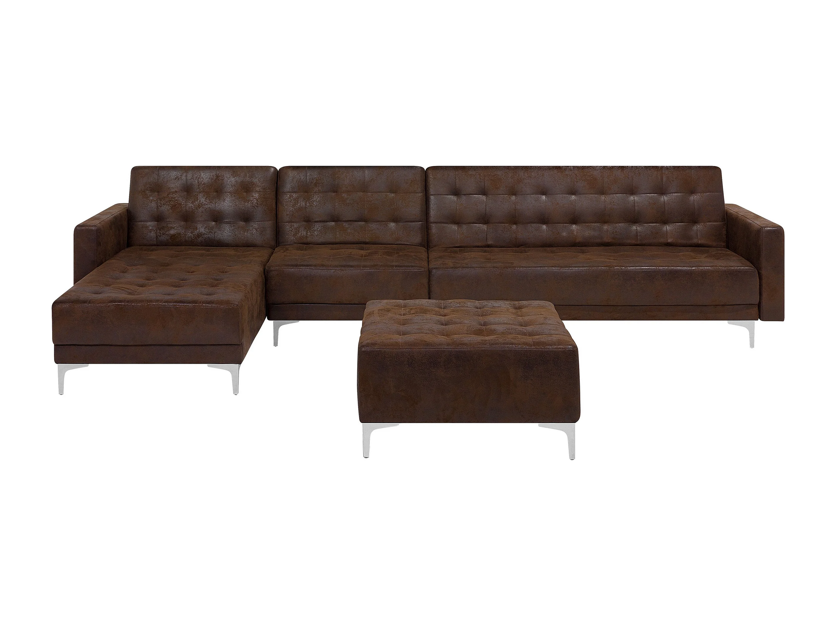 Modulaire hoekslaapbank ABERDEEN Kunstleer Bruin Met ottomaan 5-zitter Rechterzijde