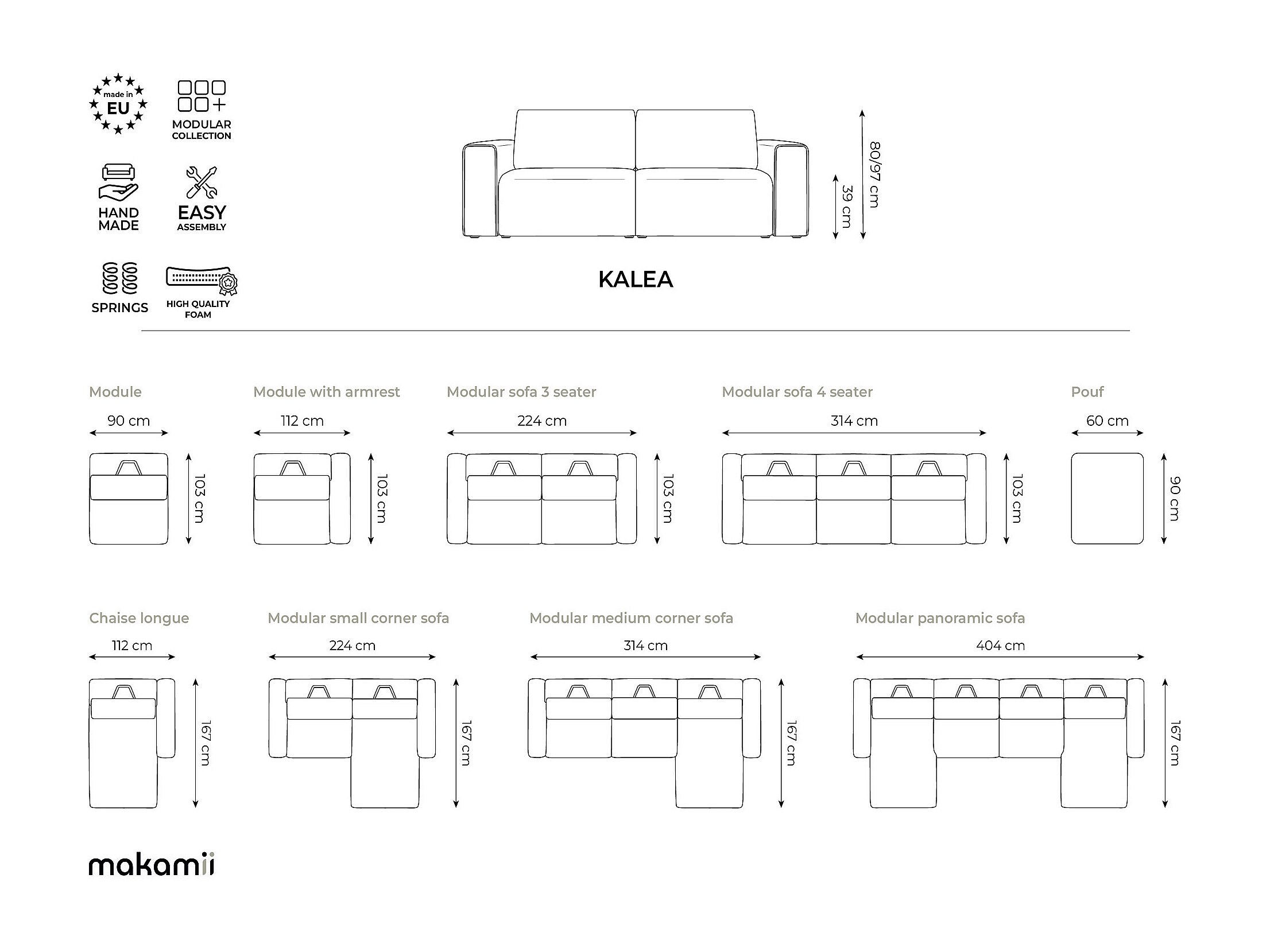 Driezits modulaire bank van grijsgroen velours - MANAO