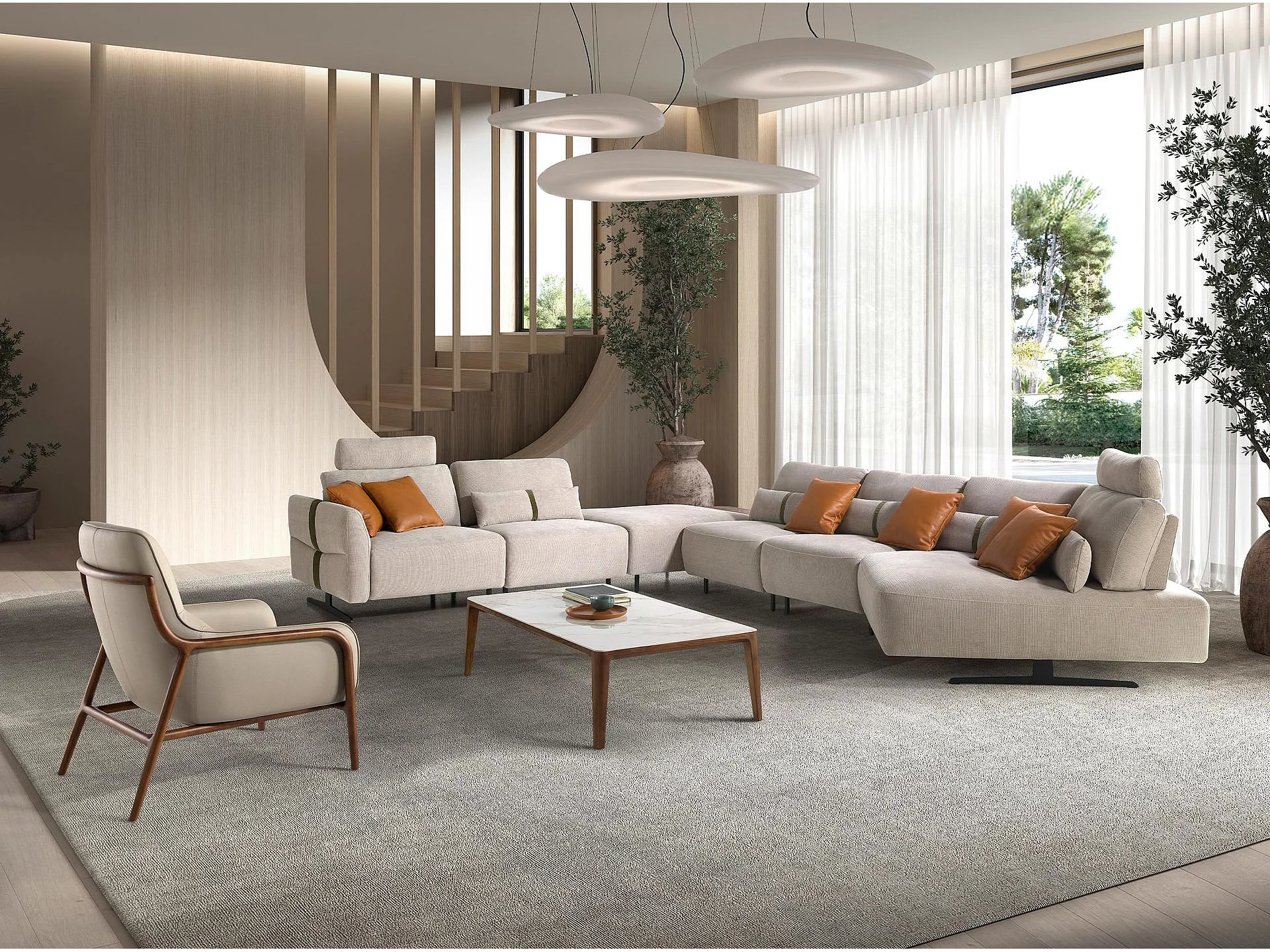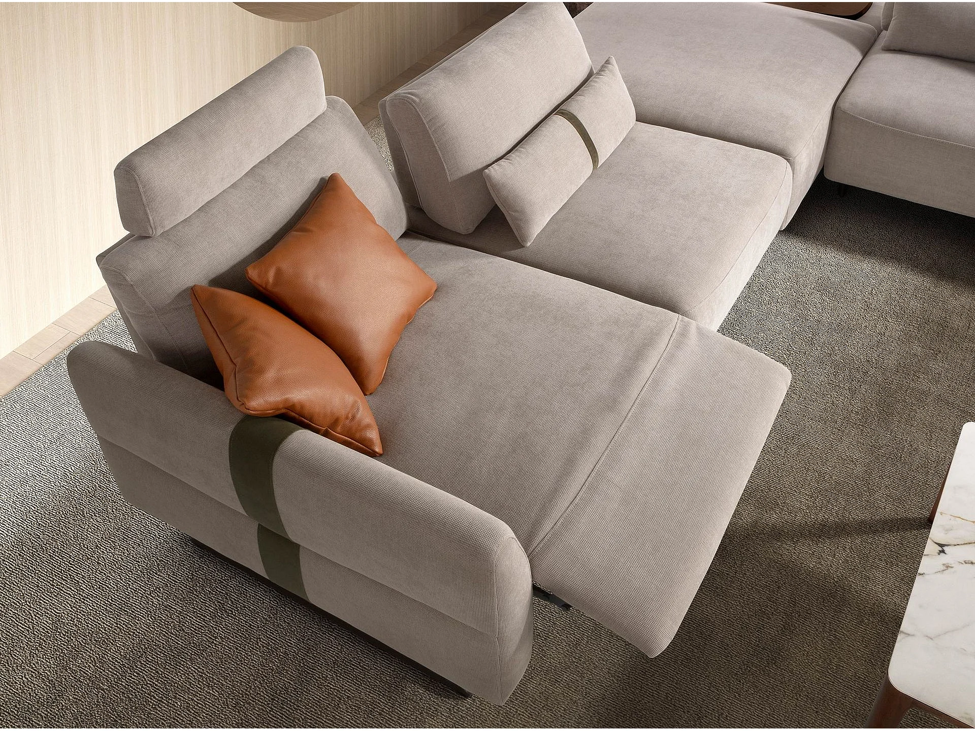 Modulaire relaxbank met chaise longue links, stof zandkleurig 6274 ANGEL CERDA