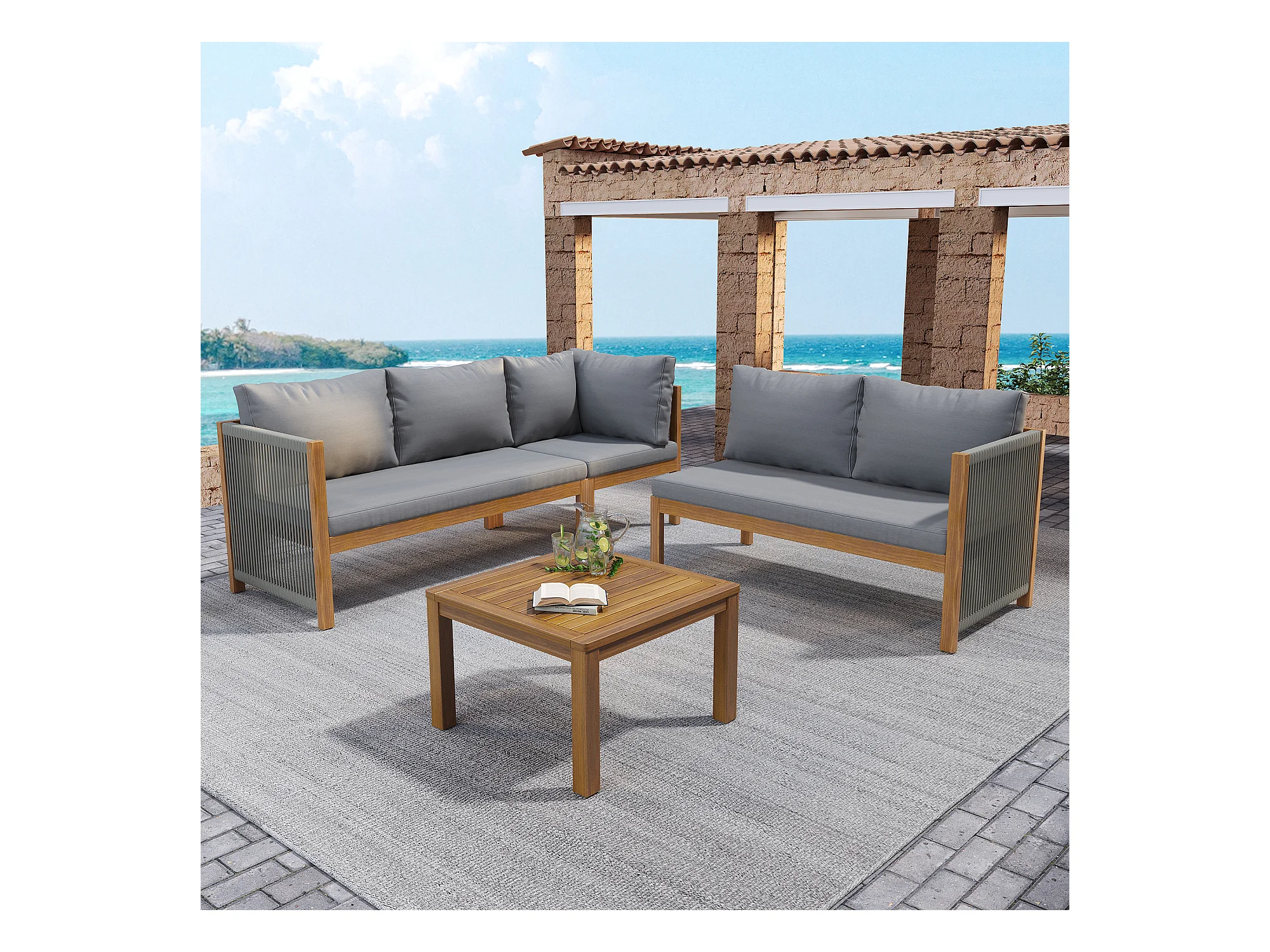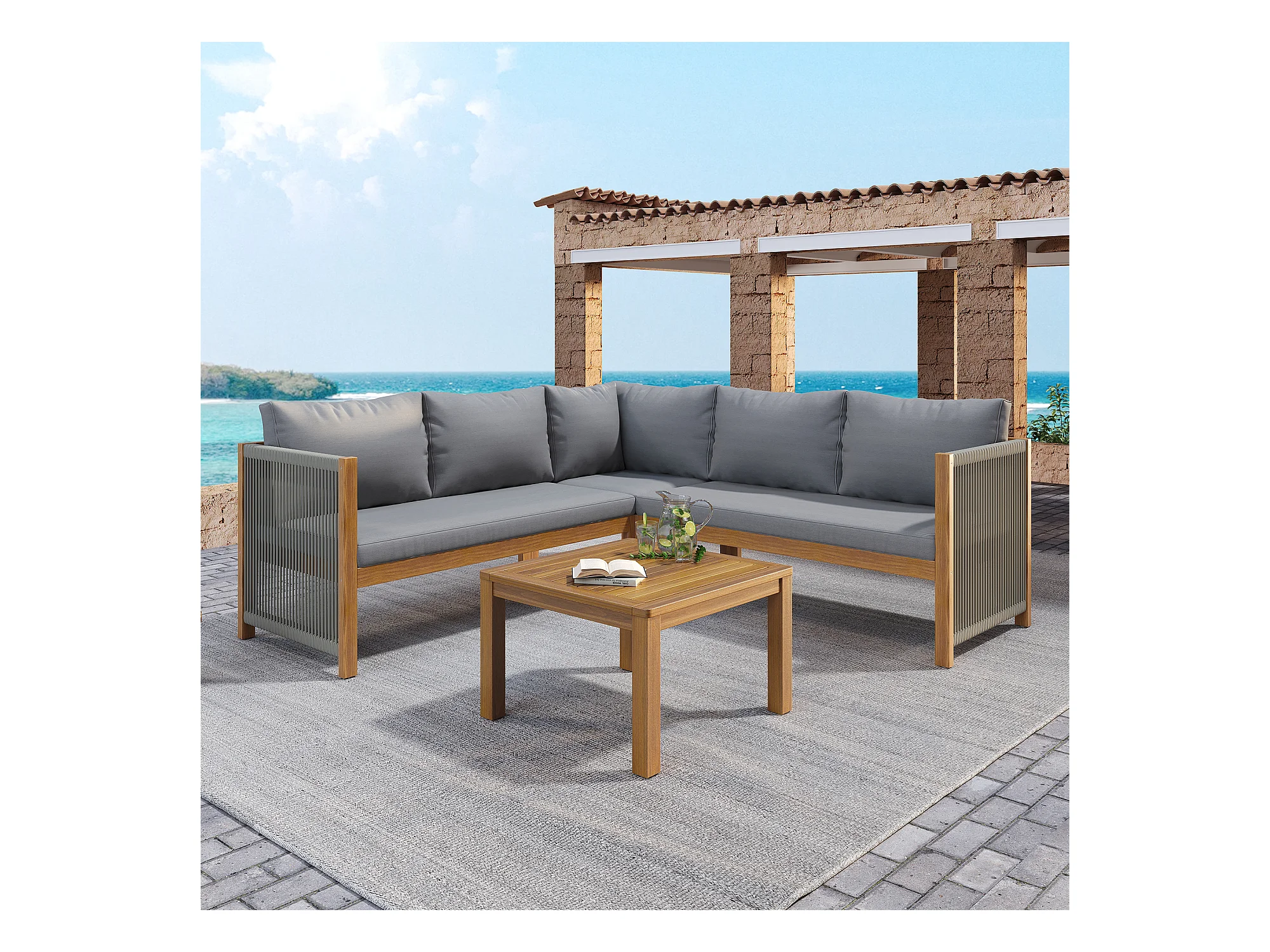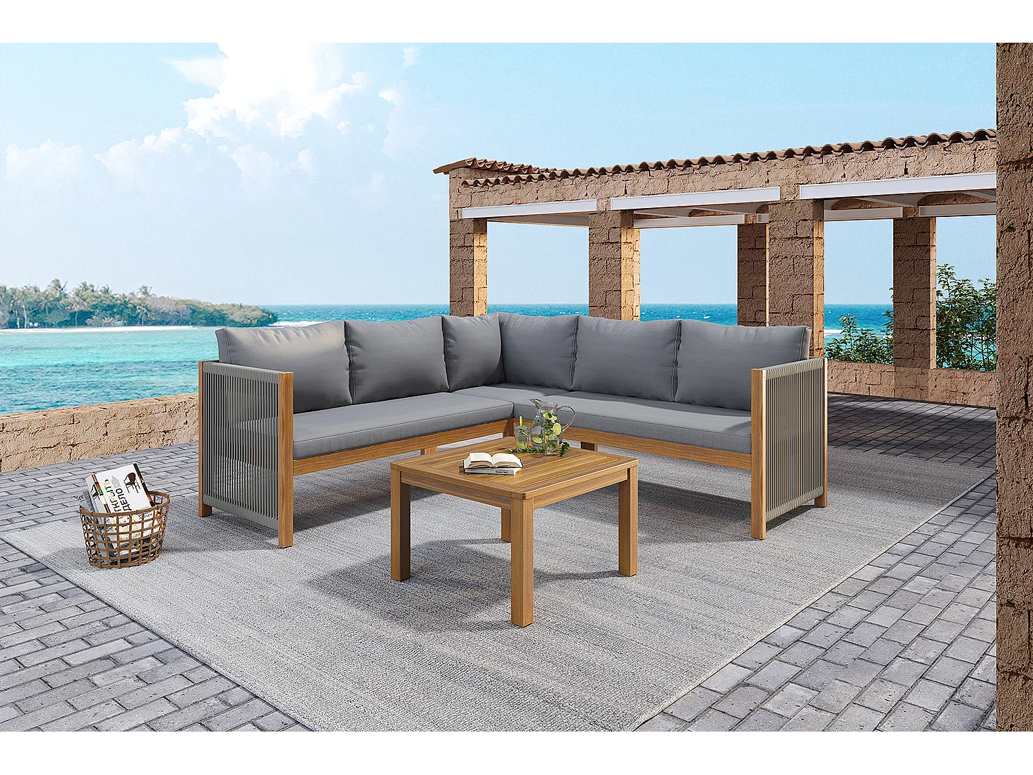 Modulaire tuinmeubelen - hoekbank + salontafel - acacia frame en blad - grijs