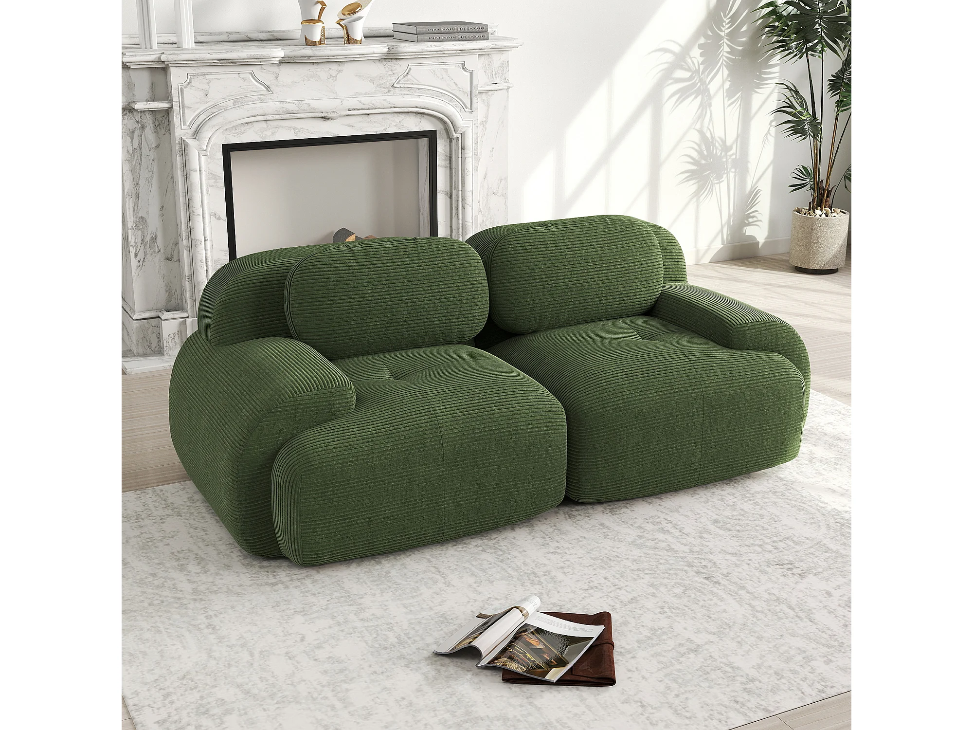Modulaire tweezitsbank van 208 cm (82 inch) in corduroy met afgeronde armleuningen, groen
