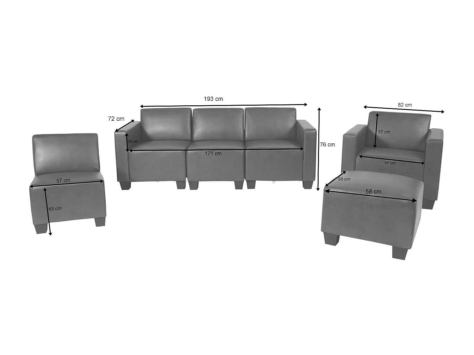 Bankstel Moncalieri (4-delig), donkergrijs