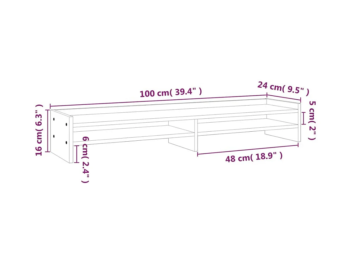 Monitorstandaard Grijs 100x24x16 cm Massief grenenhout