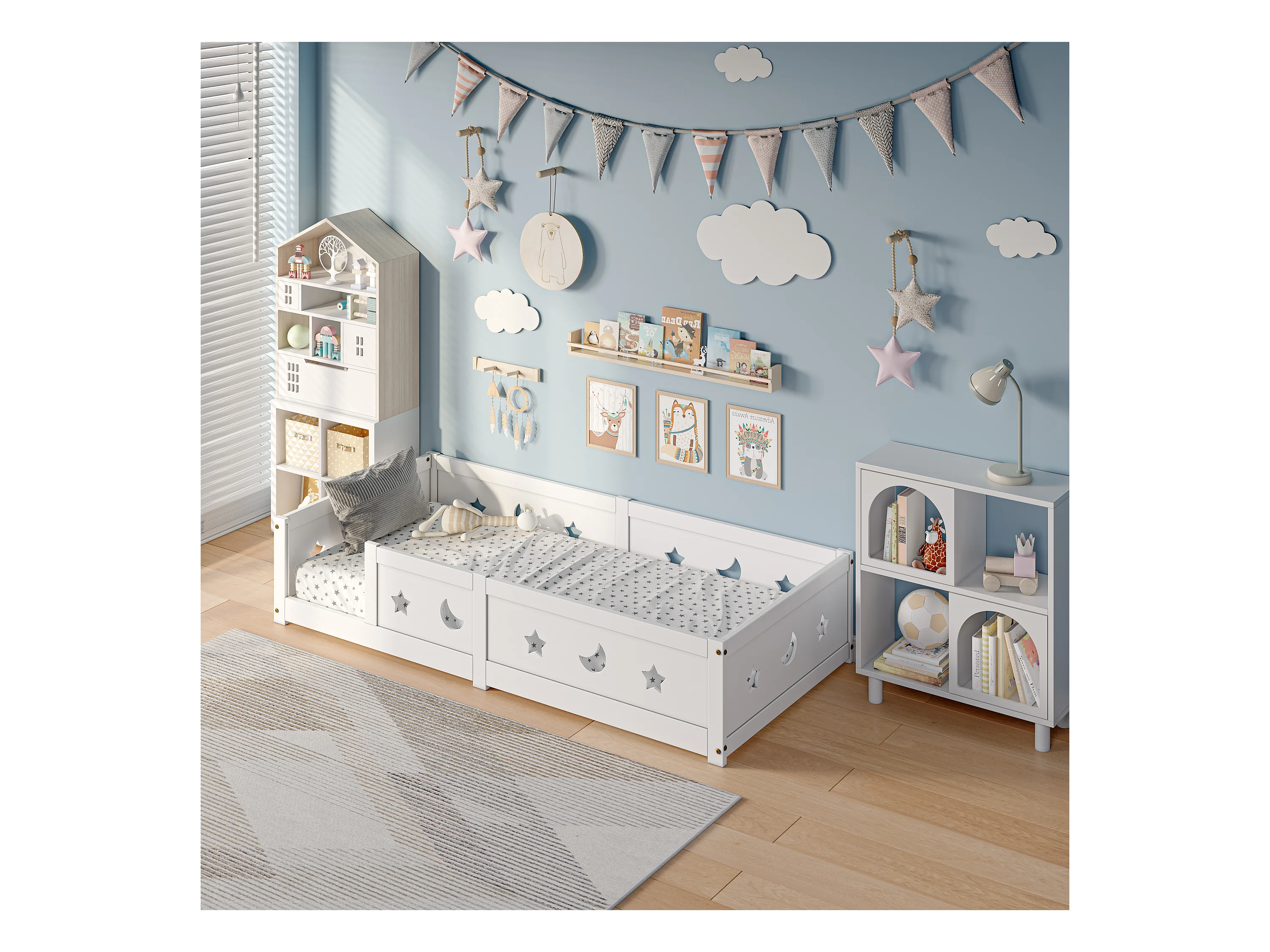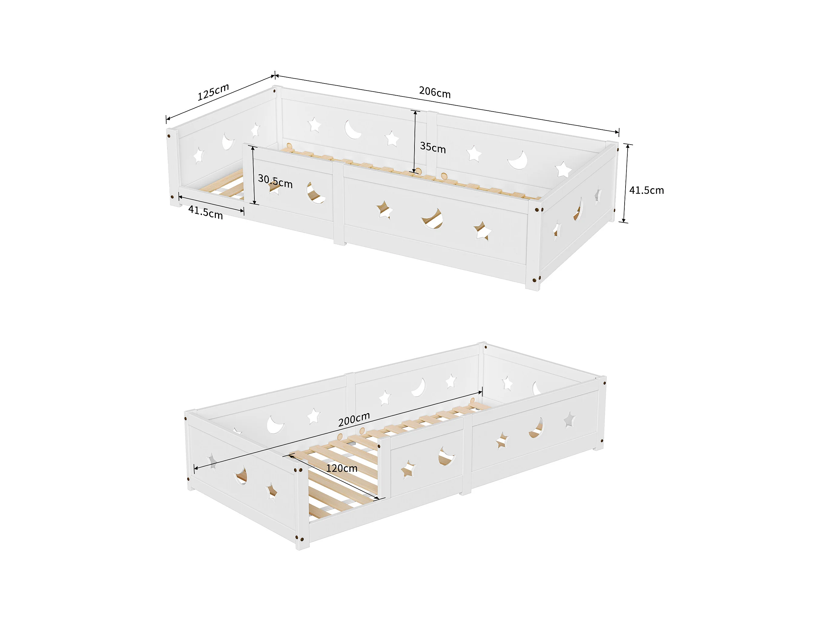 Montessori kinderbed 120x200 cm van massief grenenhout met uitvalbeveiliging en maan- en stermotieven - Wit