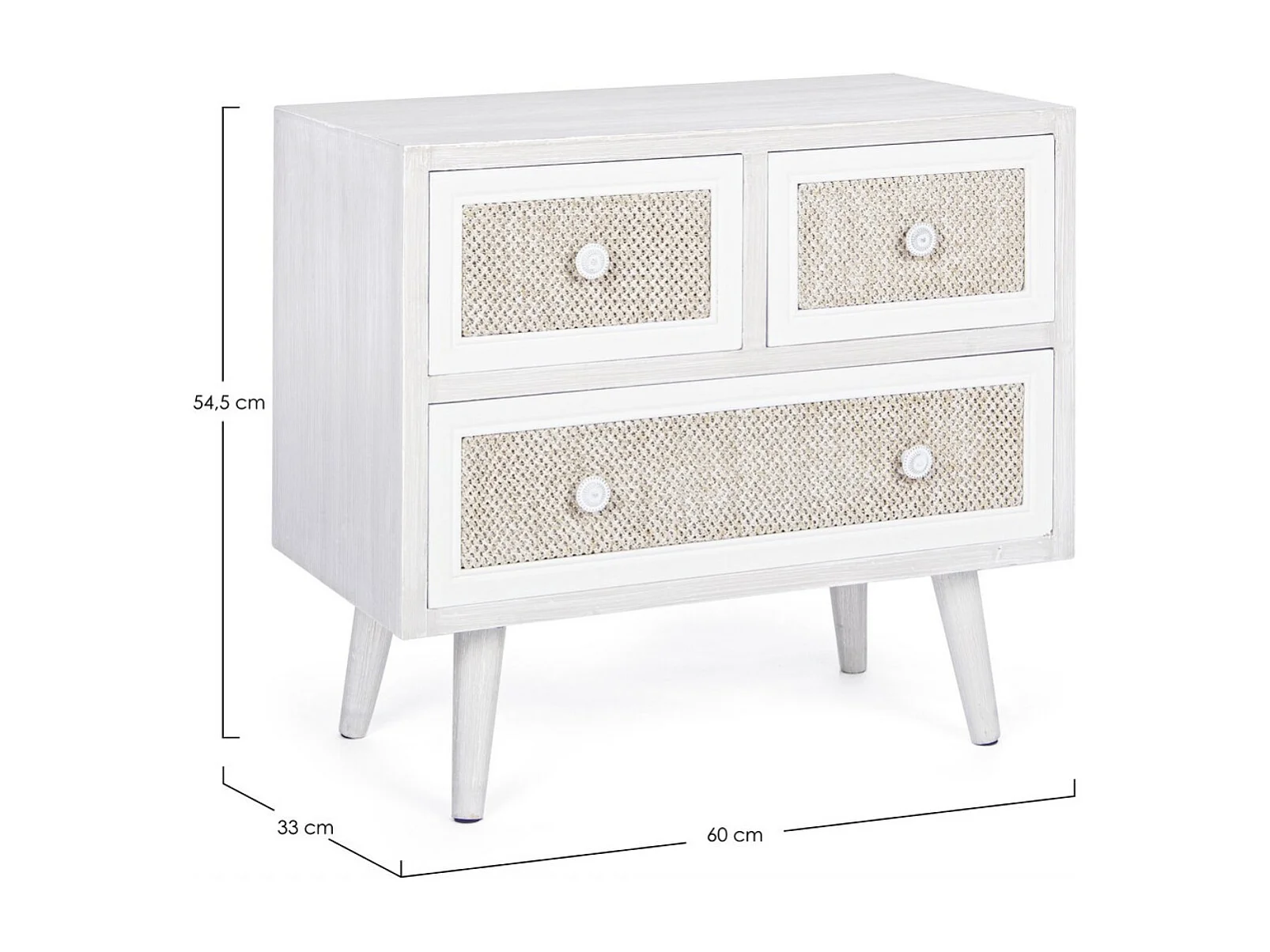 MONTIEL ladekast met 3 laden, 60 cm – Hout & linnen stof