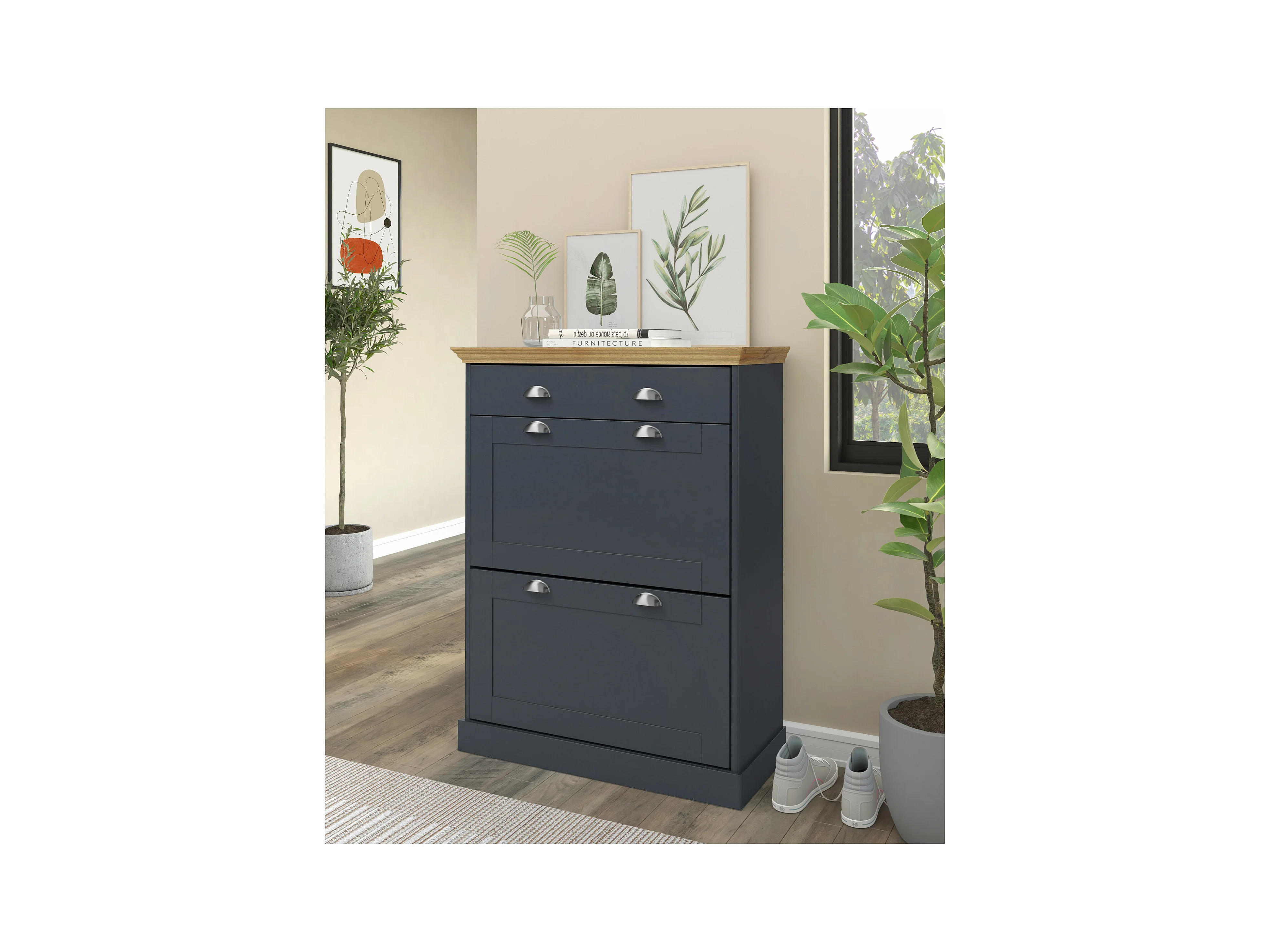 Motala | Schoenenopberger met 2 klepdeuren, 1 lade in grenen antraciet