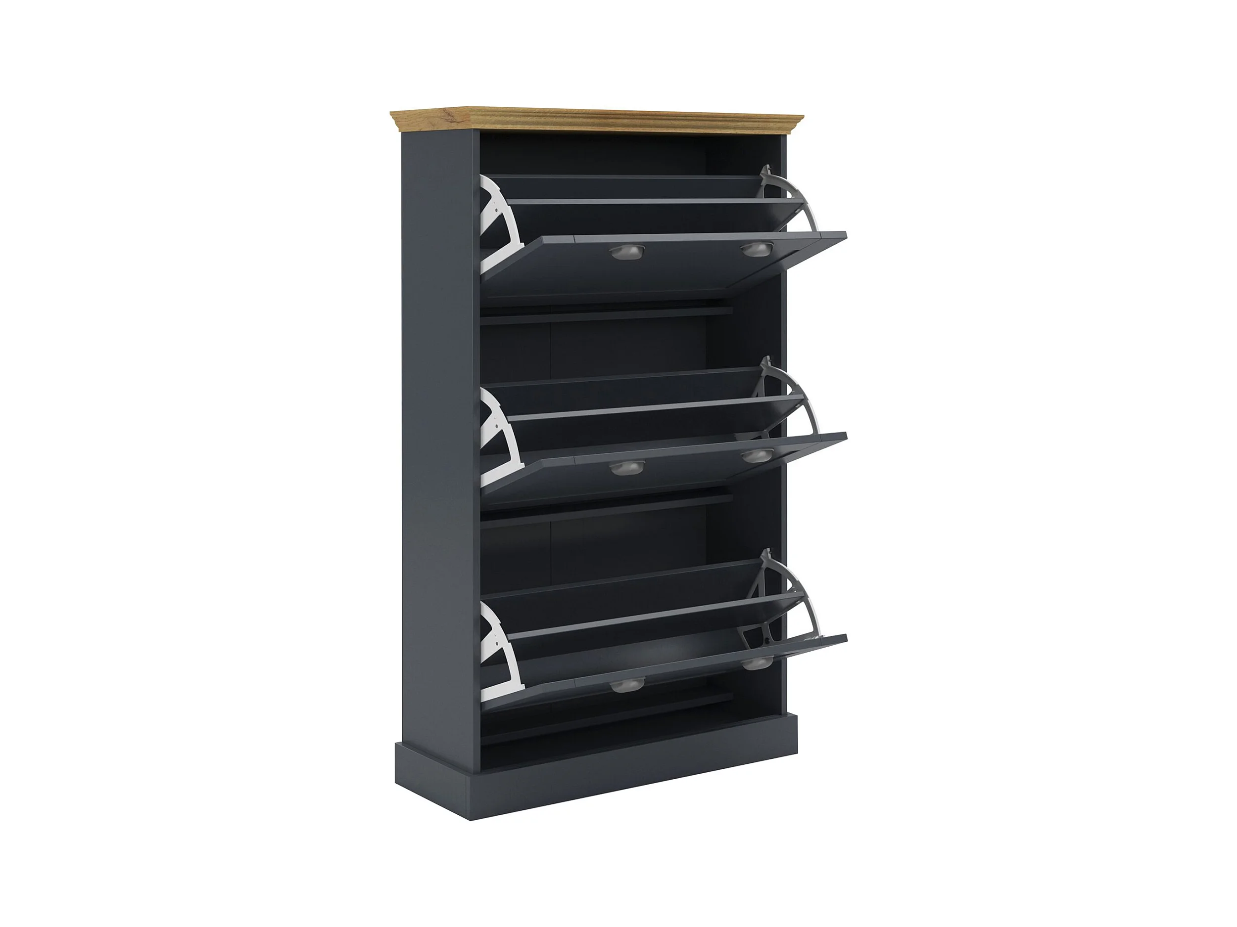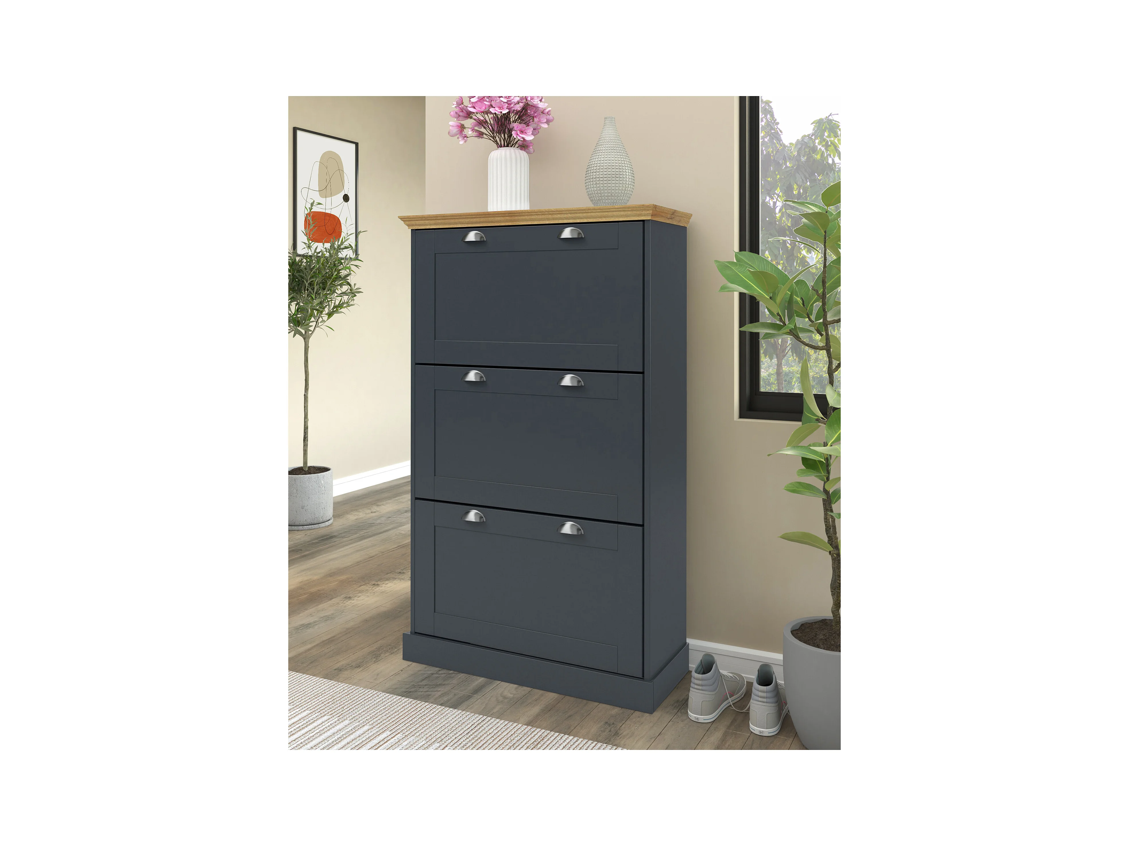 Motala | Schoenenopberger met 3 klepdeuren in houtlook antraciet