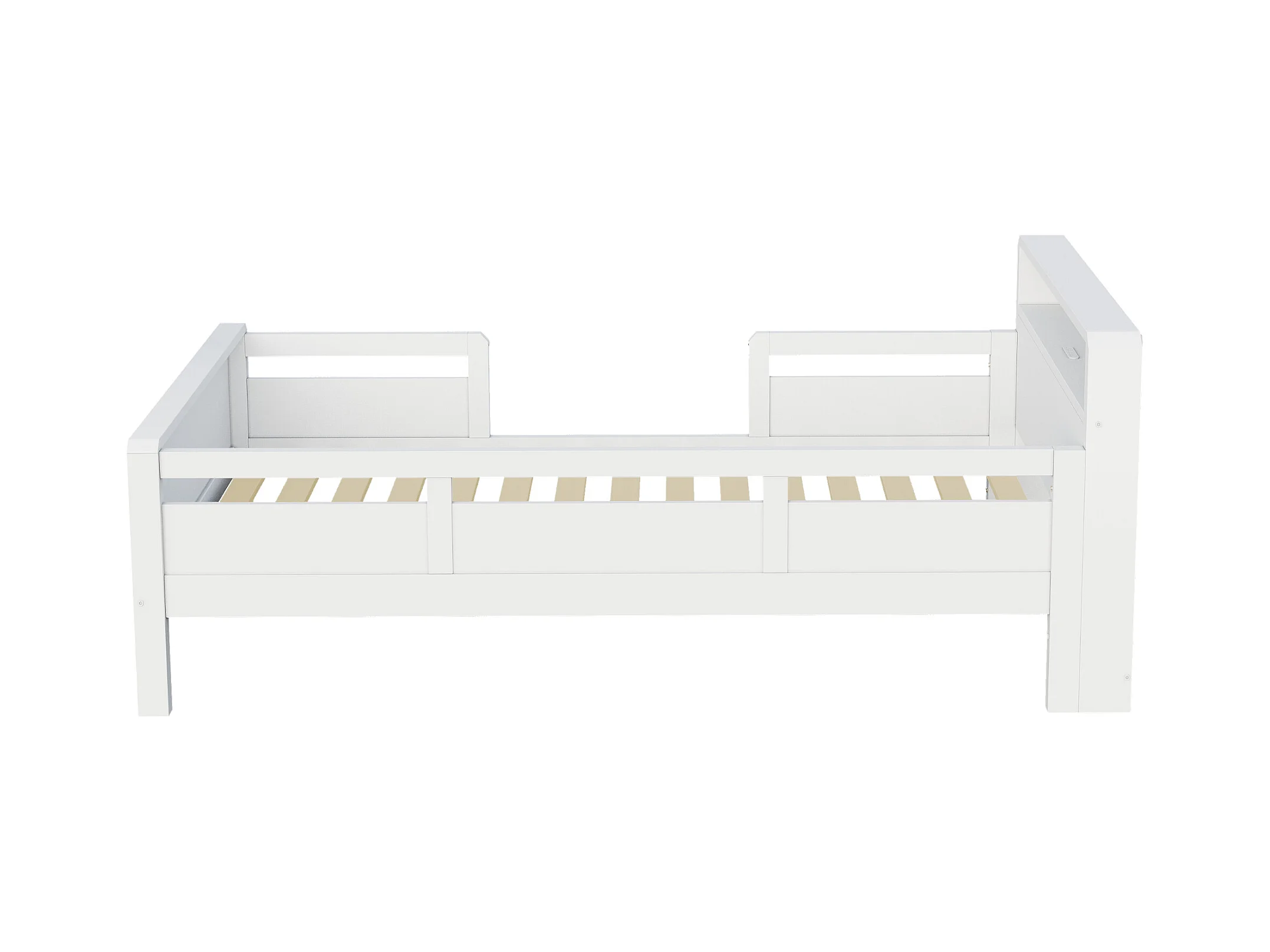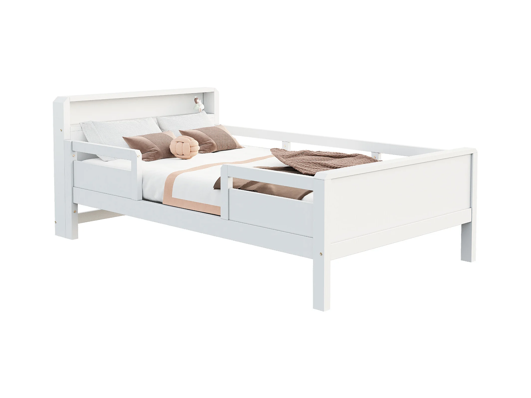 Multifunctioneel hoogslaper 90x200 cm met planken, kast, lades en veiligheidsladder met opbergruimte, naturel hout en wit