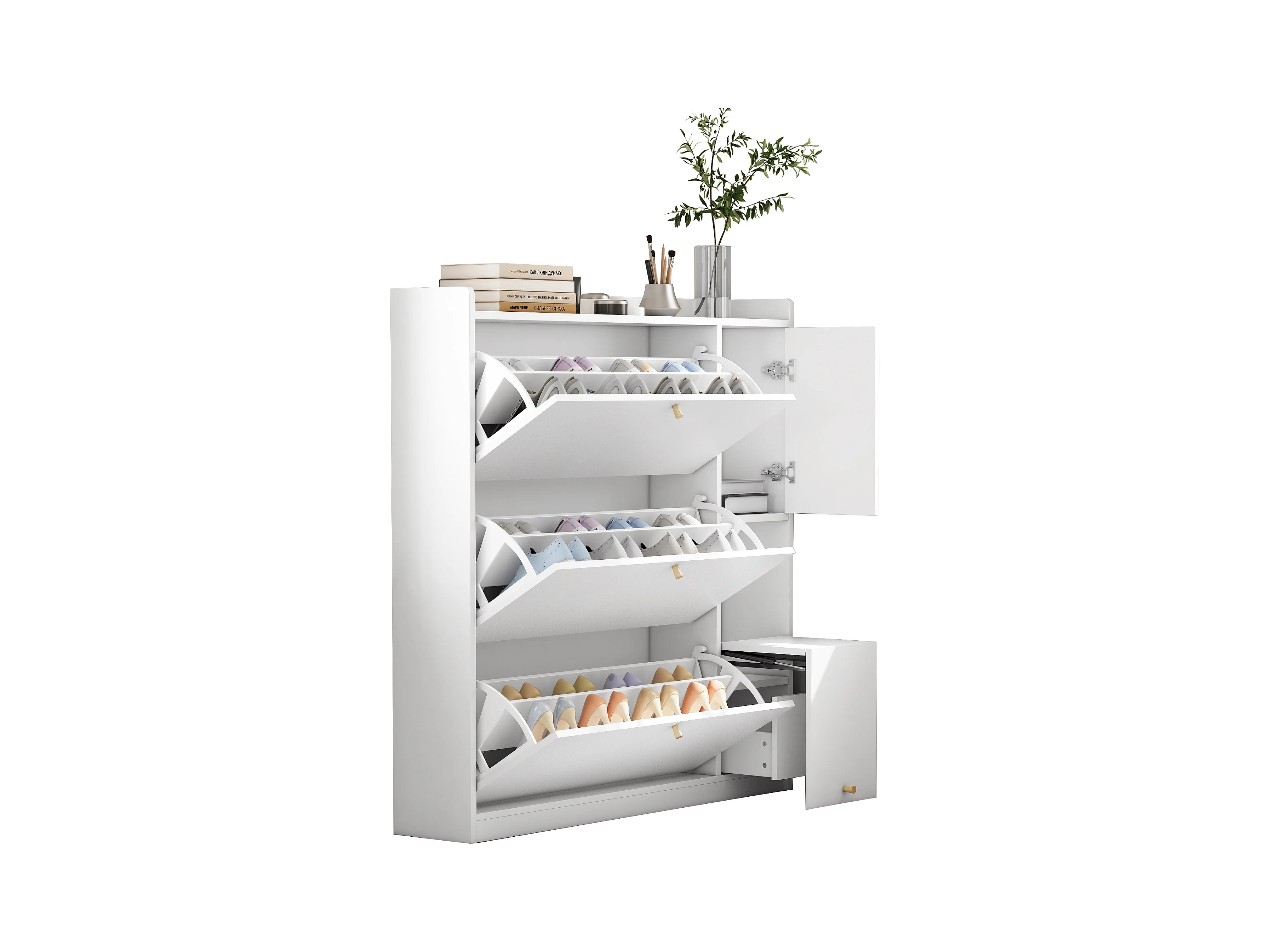 Schoenmeubel 80x34x107,5 cm - 2 klepdeuren en 1 lade - 4 vakken - MDF - Wit