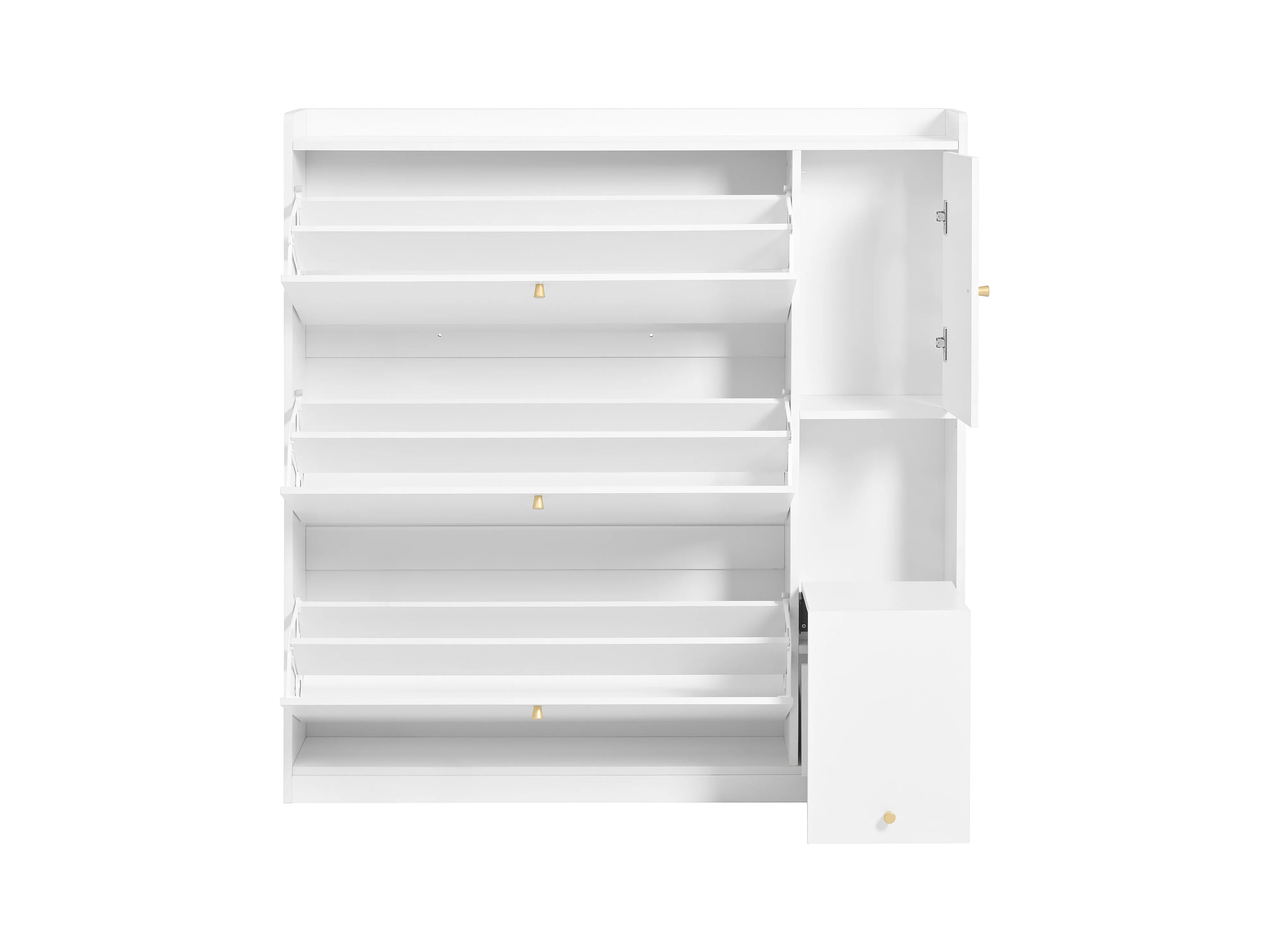 Multifunctionele schoenenkast 119x24x122 cm - met 3 opklapbare lades - met opklapbare bank - met een deur - wit