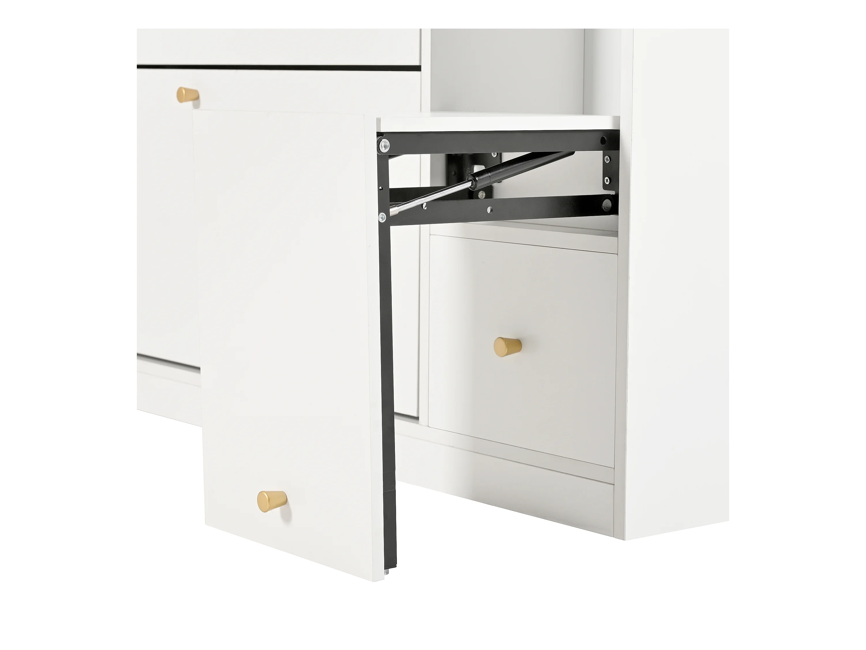 Modern schoenmeubel 120×24×107 cm - 2 deuren en 2 laden - 2 neerklapbare deuren - wit