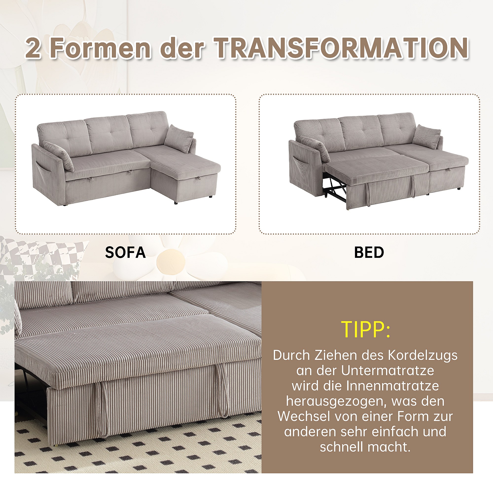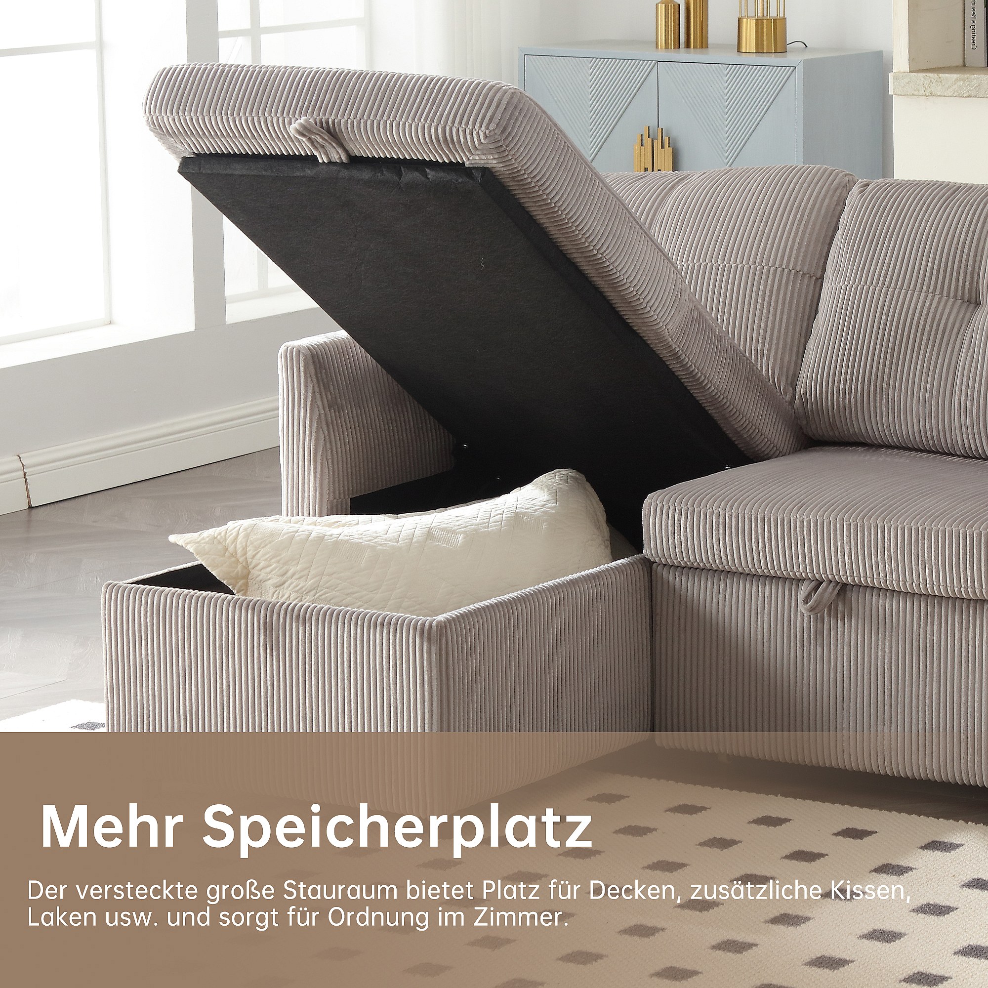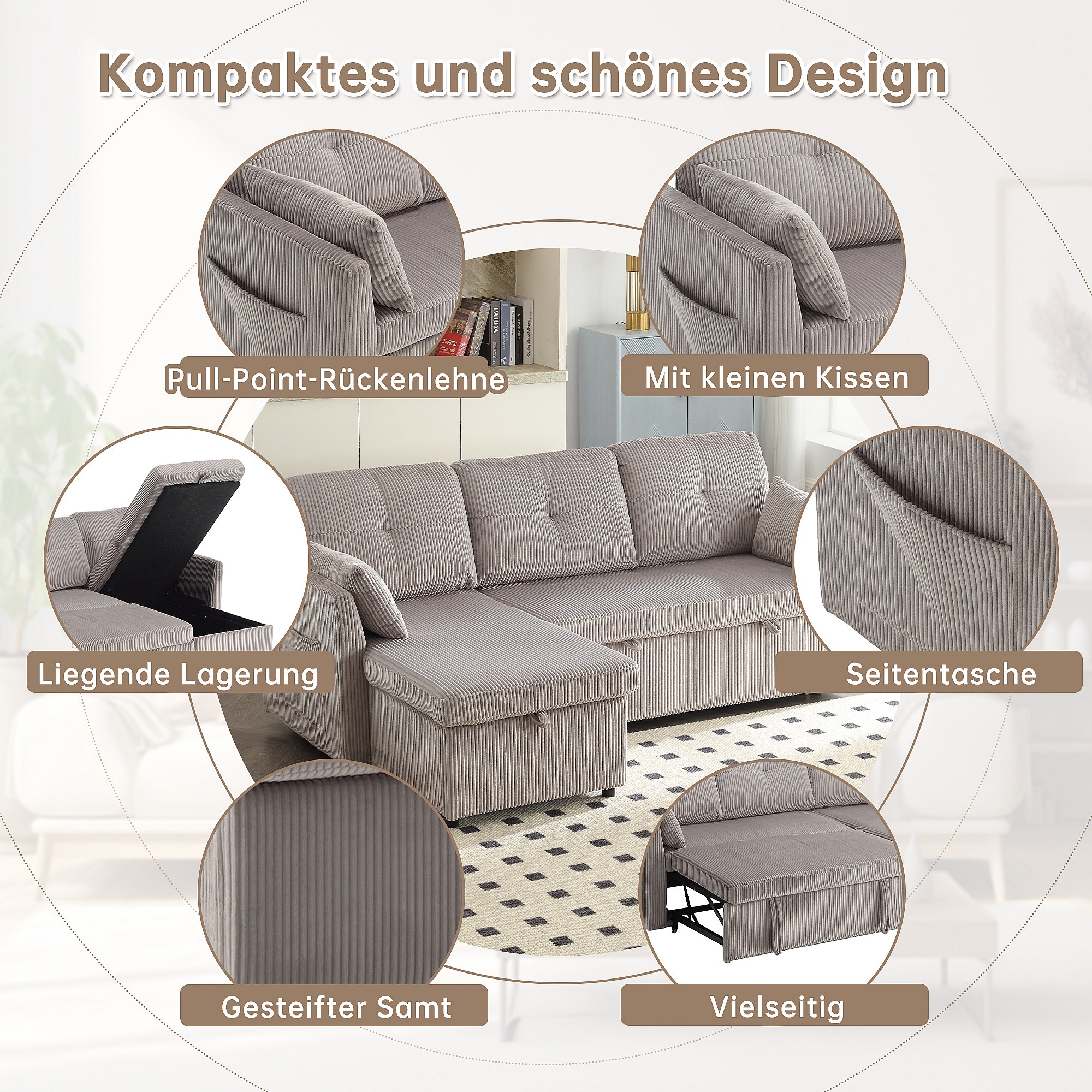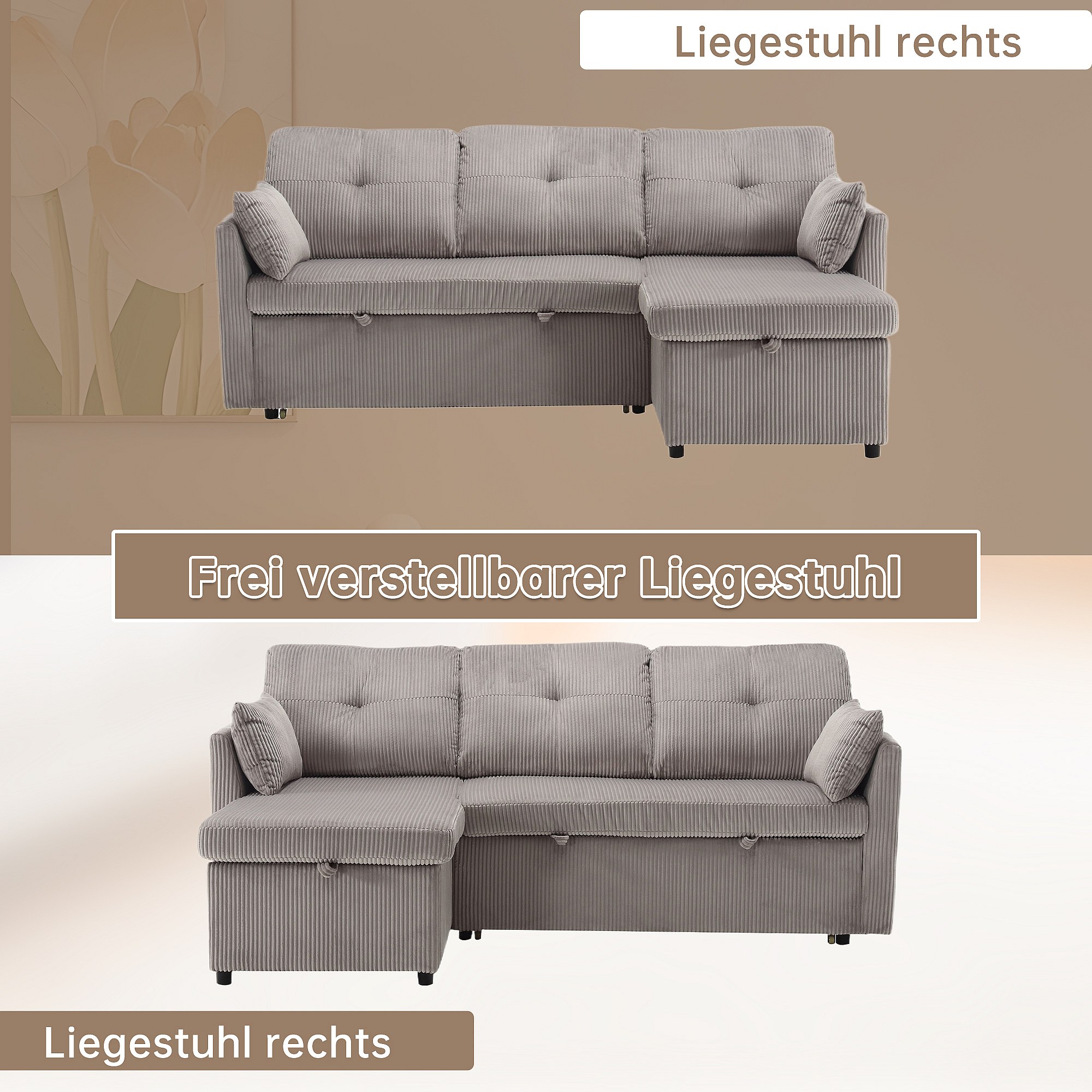 Multifunctionele slaapbank met opbergruimte, modulaire hoekbank, fluweel, lichtgrijs (206x130x66-88 cm)