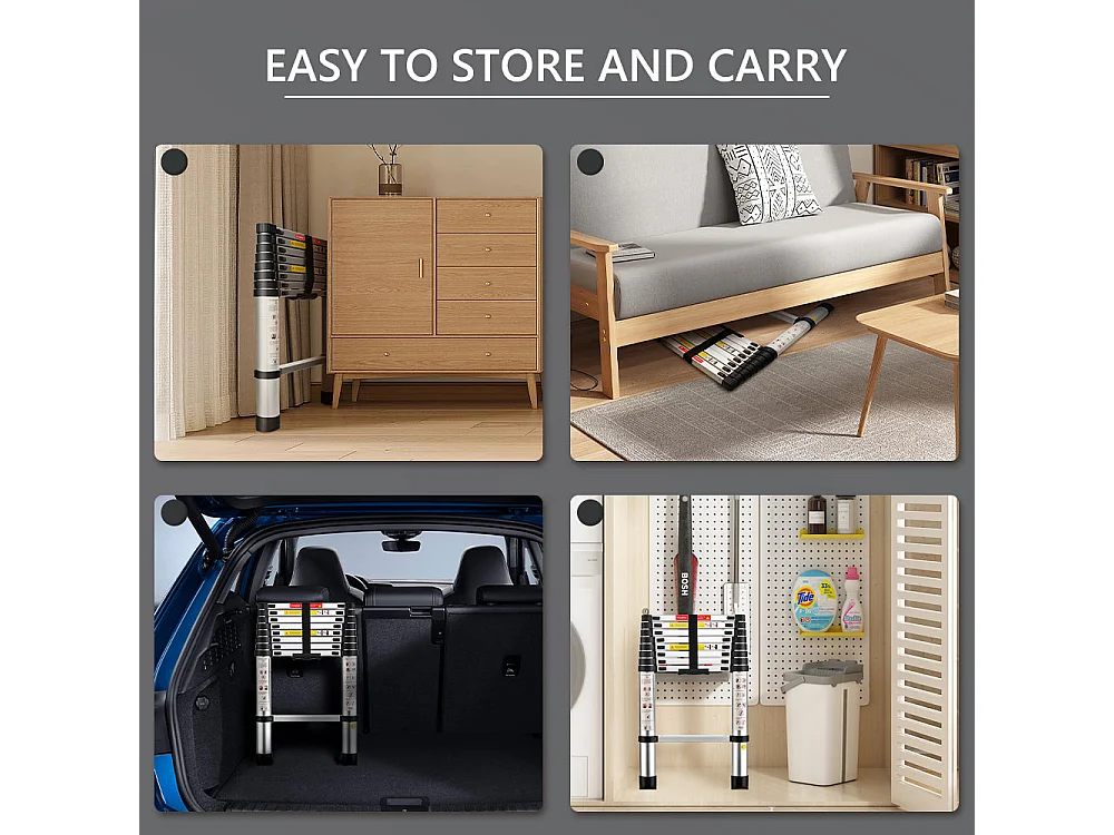 Multifunctionele telescopische klapladder van aluminium van 2,6 meter, maximaal draagvermogen van 150 kilogram