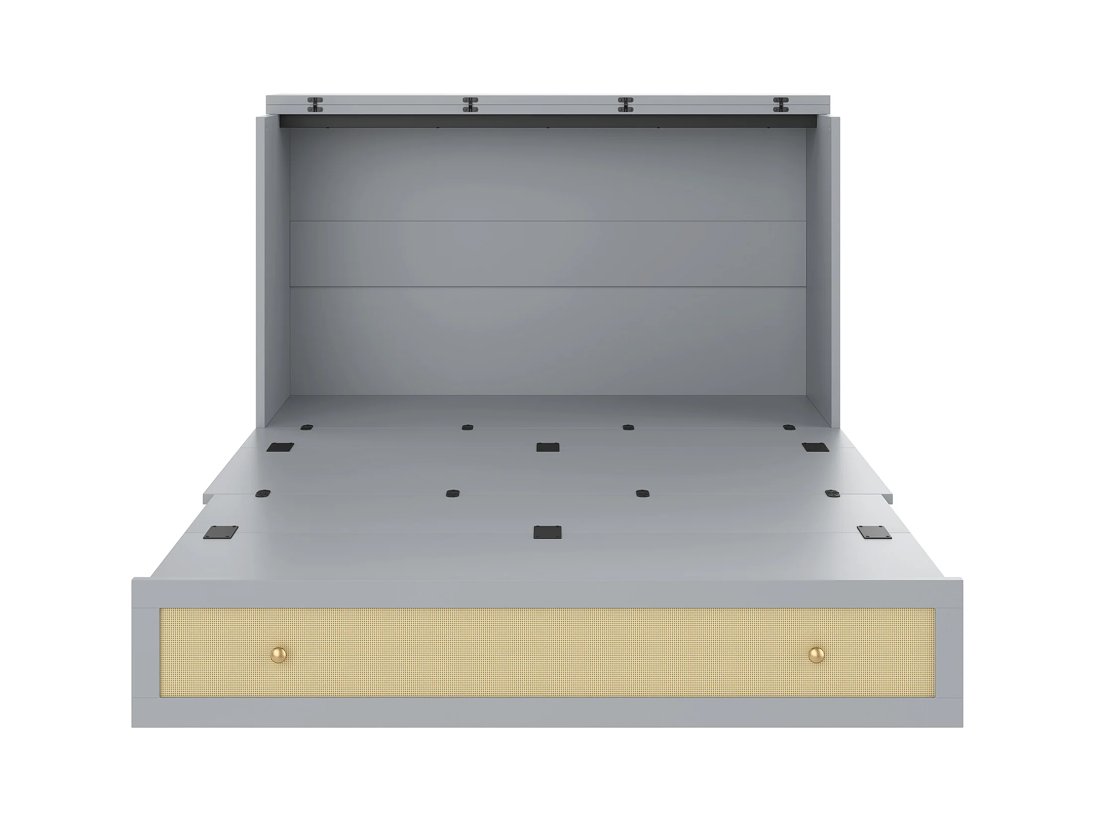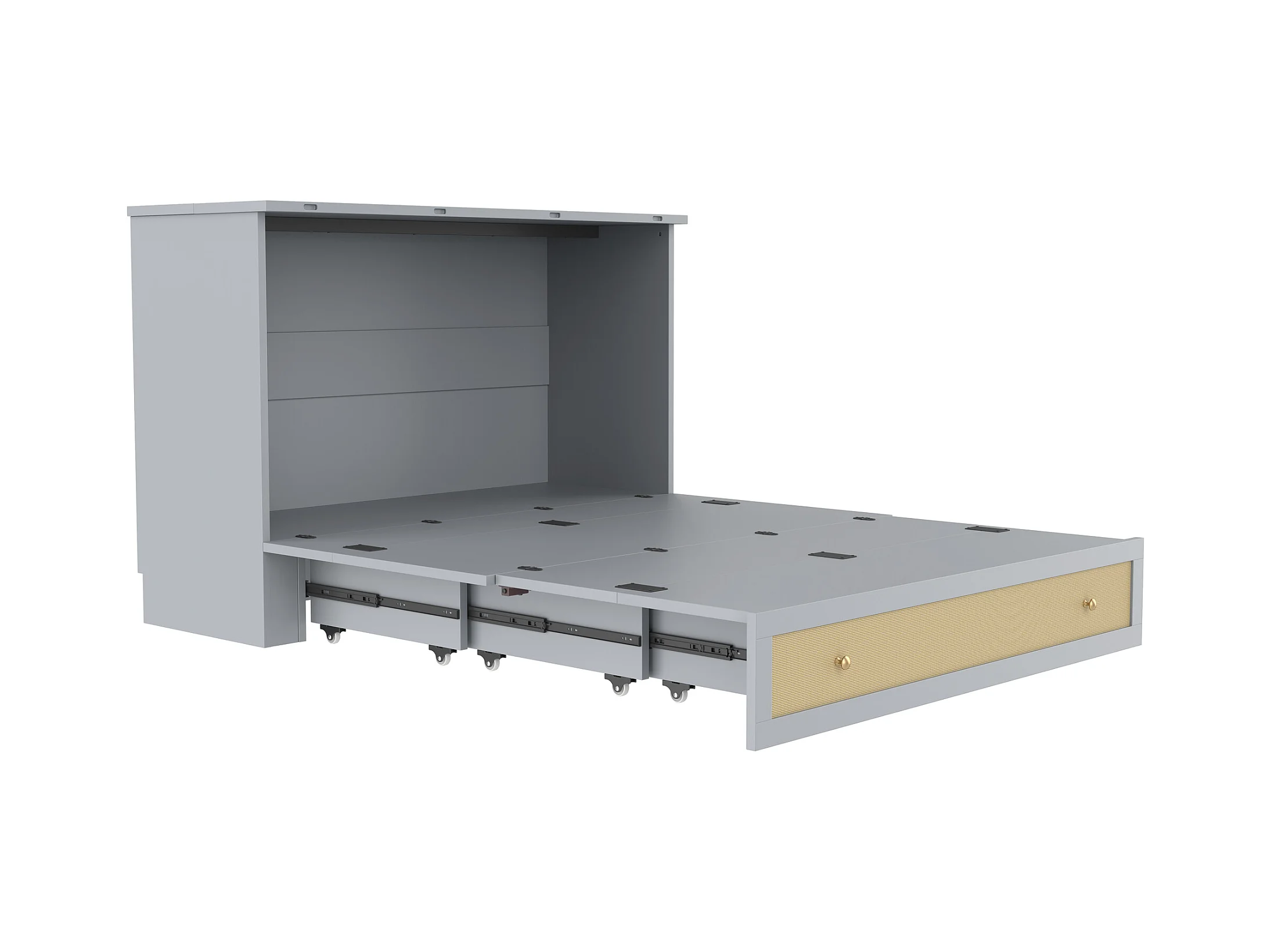Murphy bed 140x200cm, met lades en planken, USB en stopcontact, omvormbaar tot platformbed, MDF, grijs (206x147,5x102 cm)