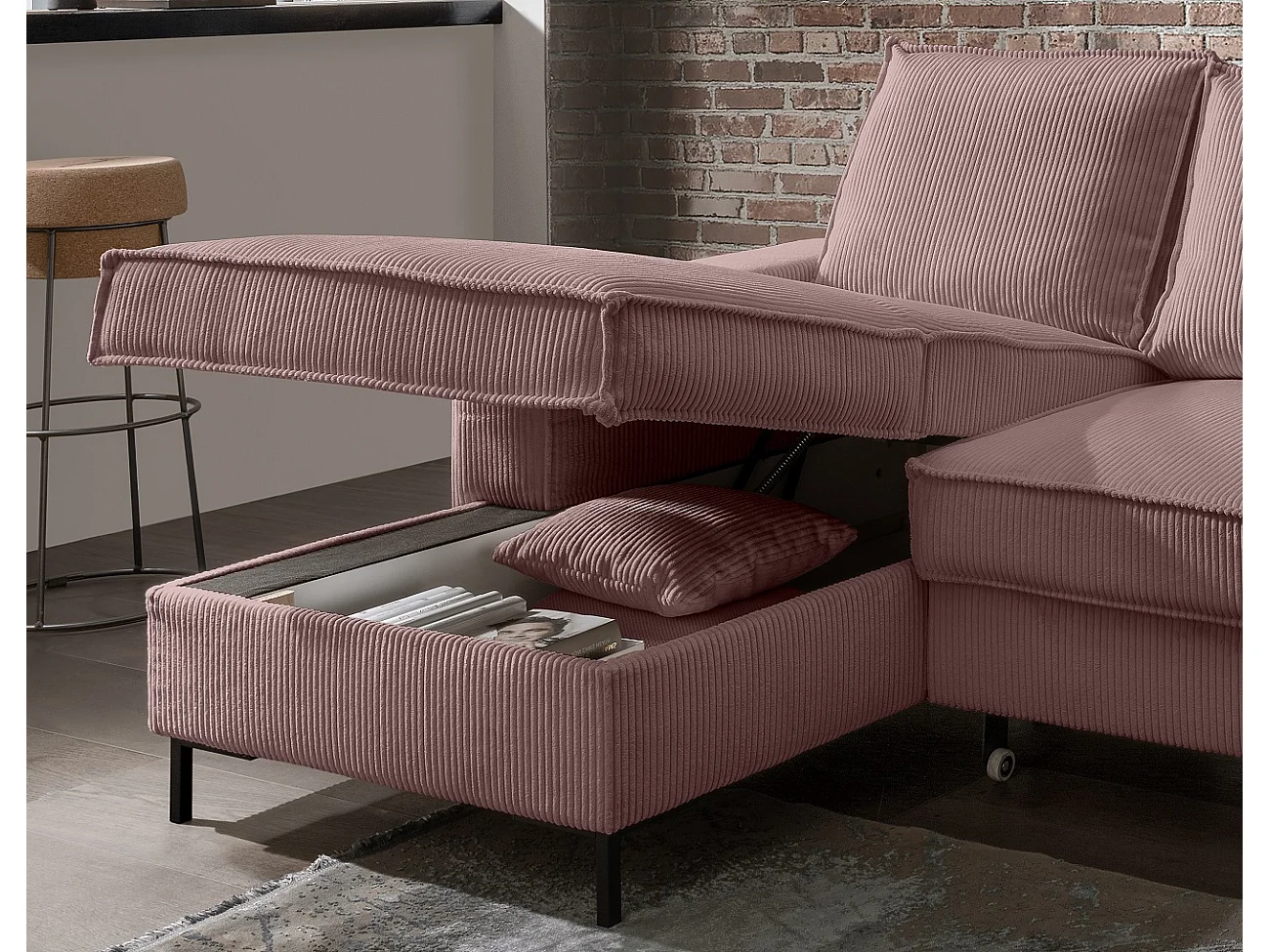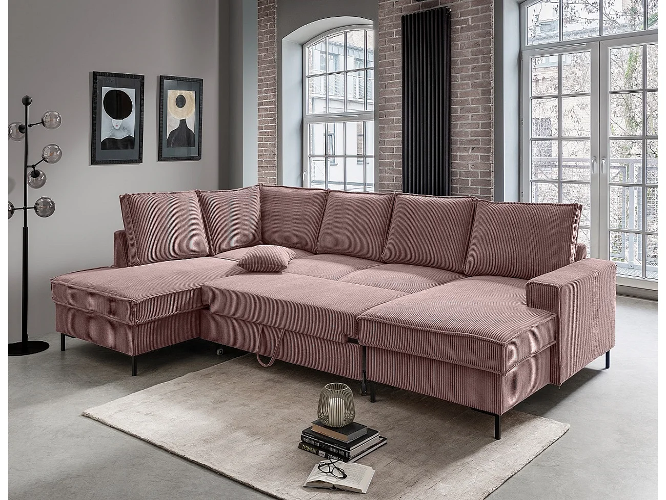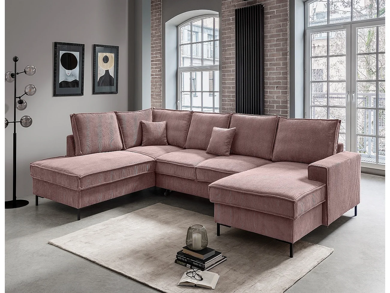 MYHOMELANDO Jerome woonlandschap – U-vorm met slaapfunctie en opbergruimte, cordstof