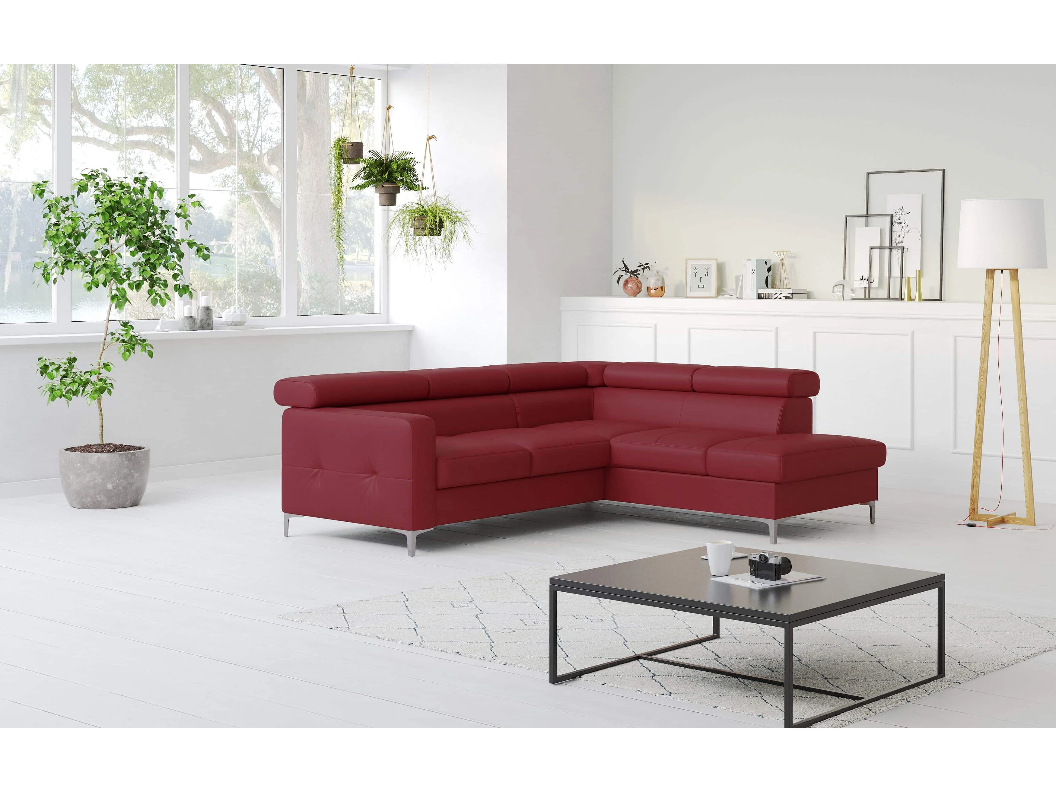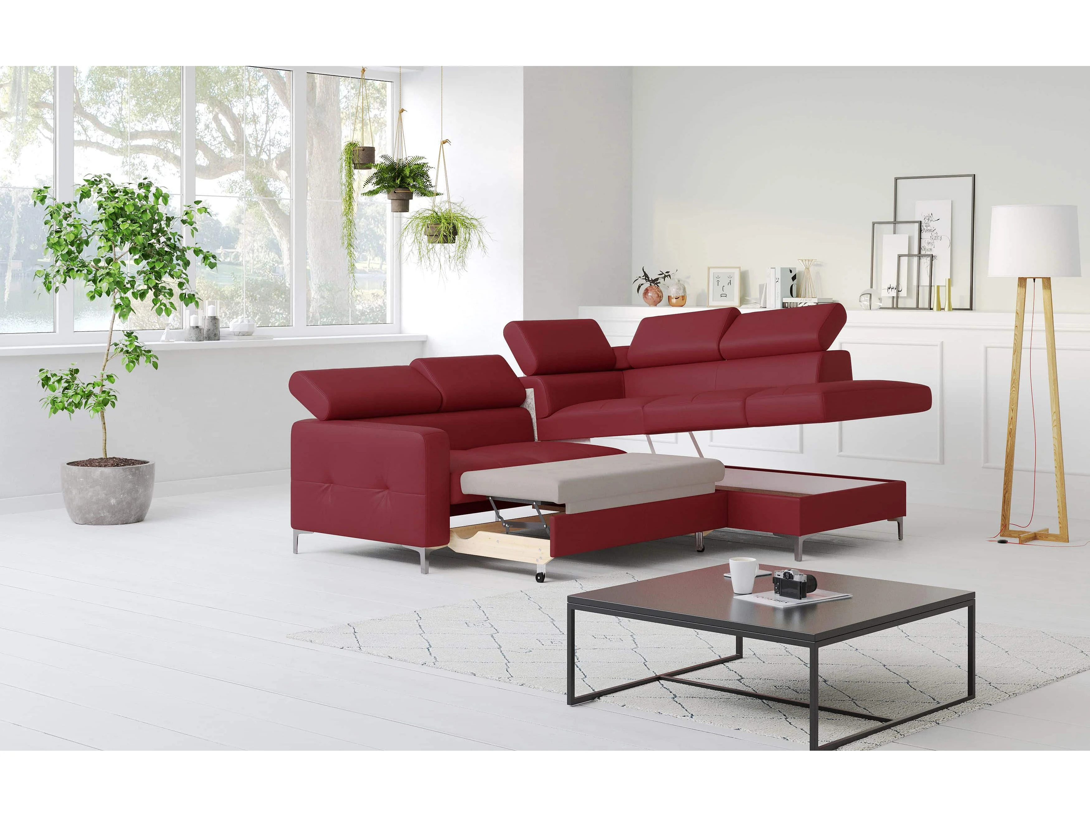 MYHOMELANDO Sammy echt leren hoekbank – L-vorm met slaapfunctie en opbergruimte