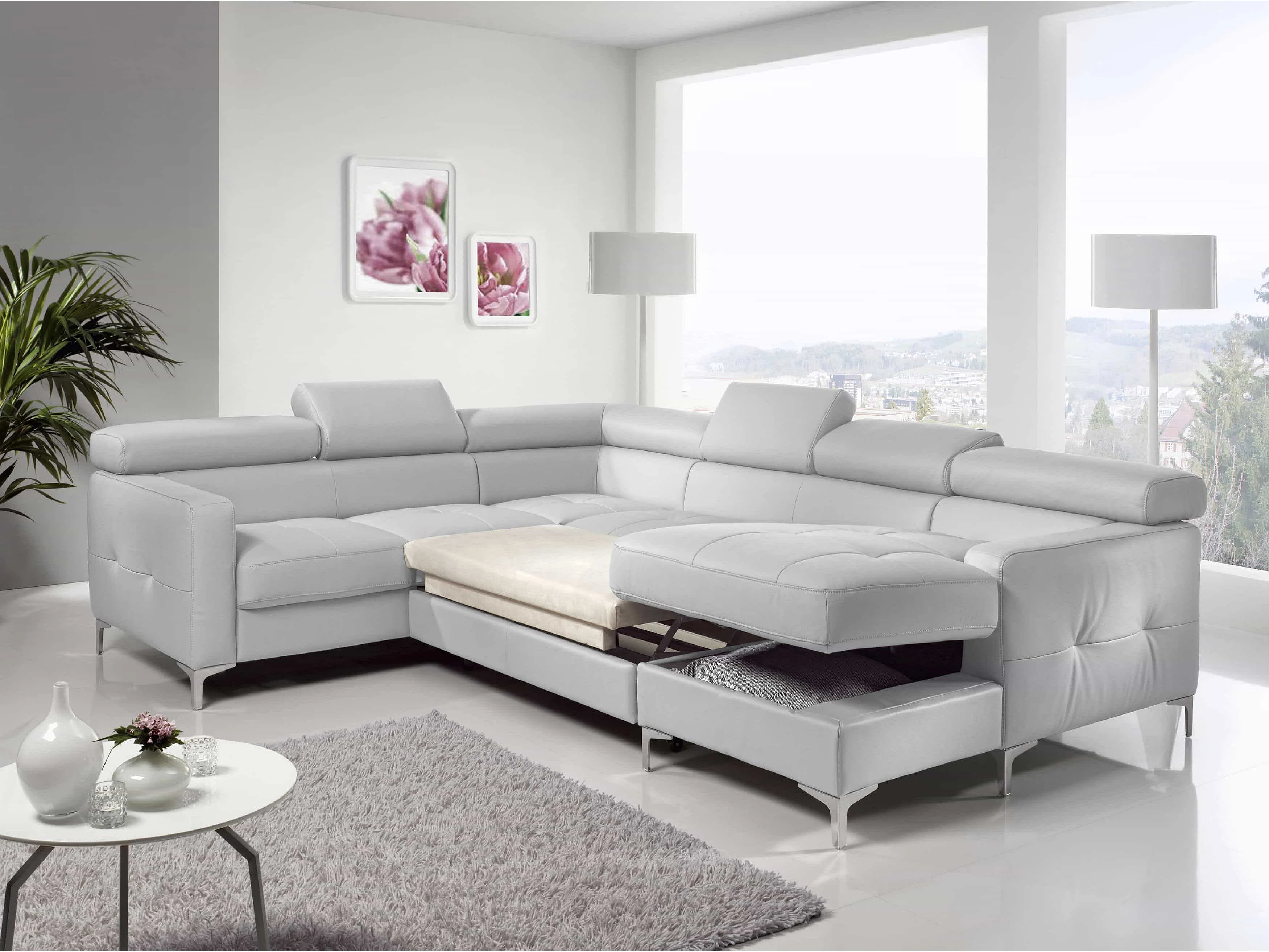 MYHOMELANDO Sammy echt leren woonlandschap – U-vorm met slaapfunctie, opbergruimte en verstelbare hoofdsteunen