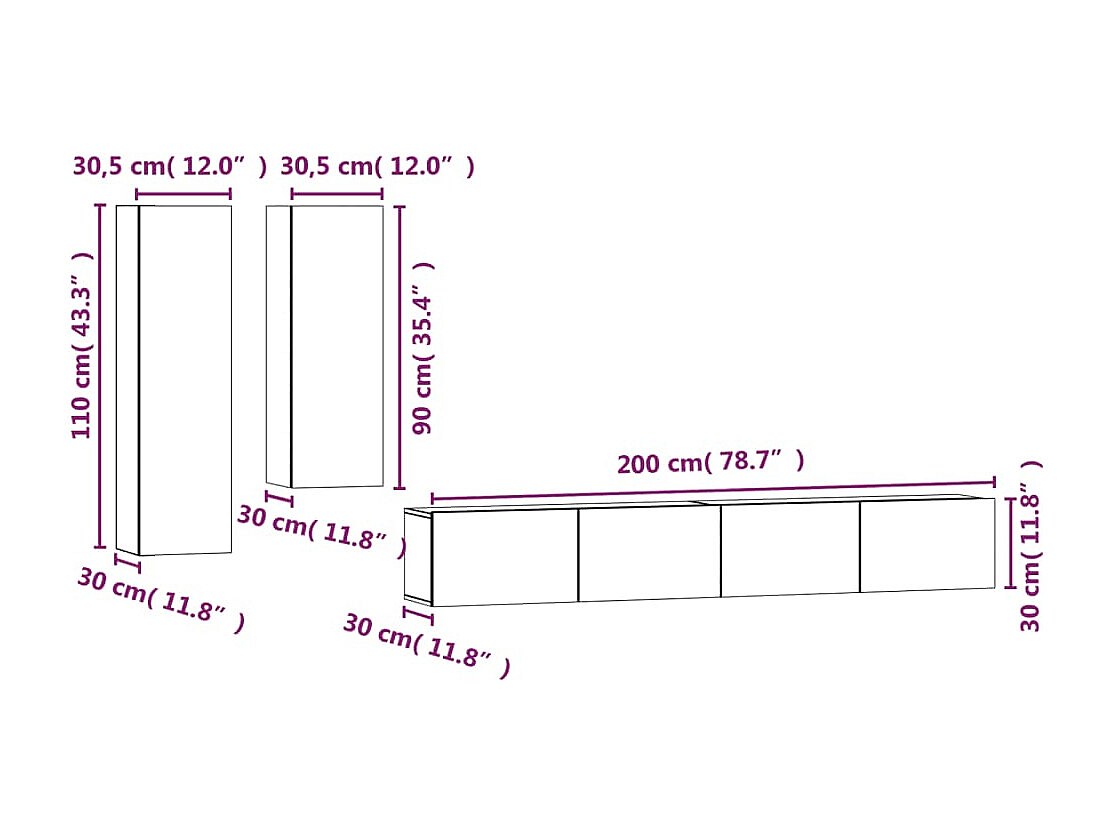 Mylan 4-delige Tv-meubelset bewerkt hout betongrijs