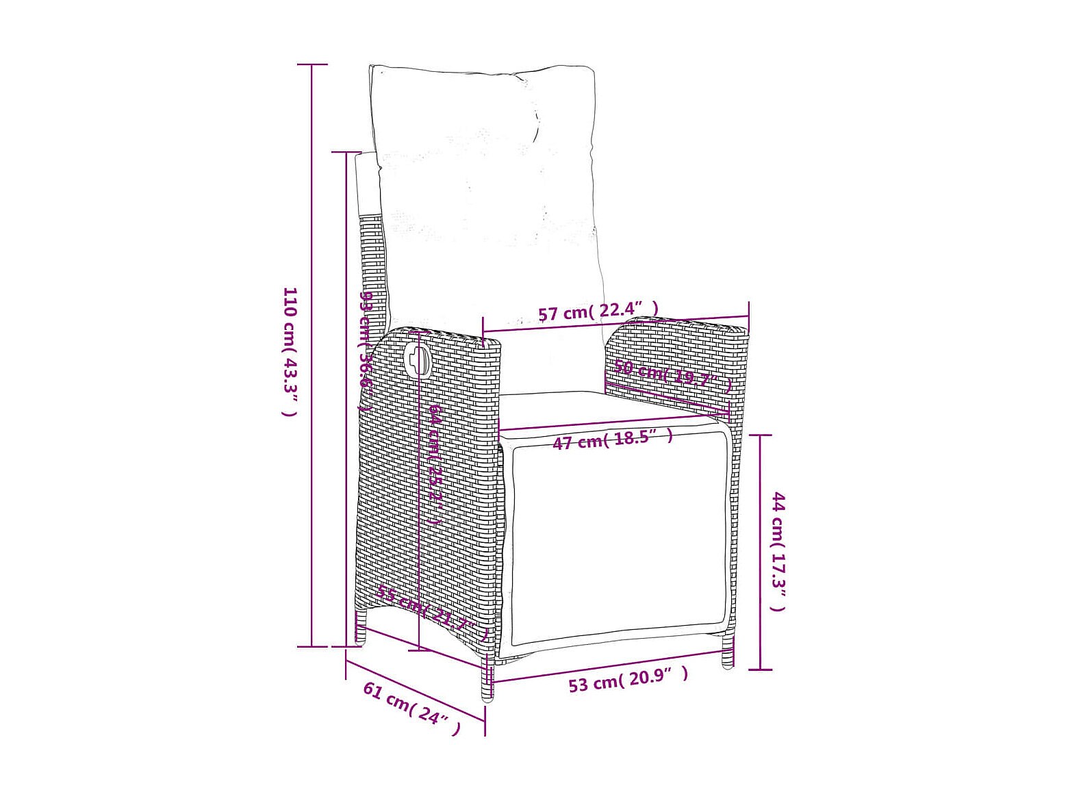 Myrvin 5-delige Tuinset met kussens poly rattan grijs