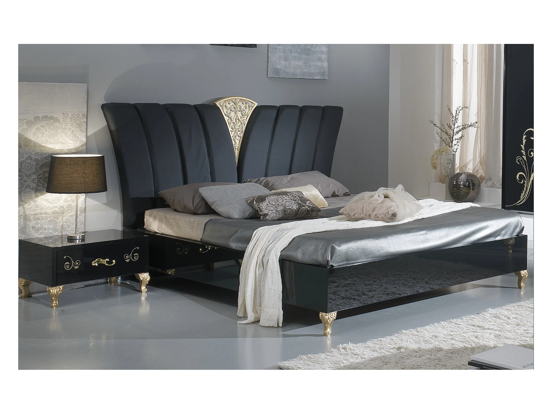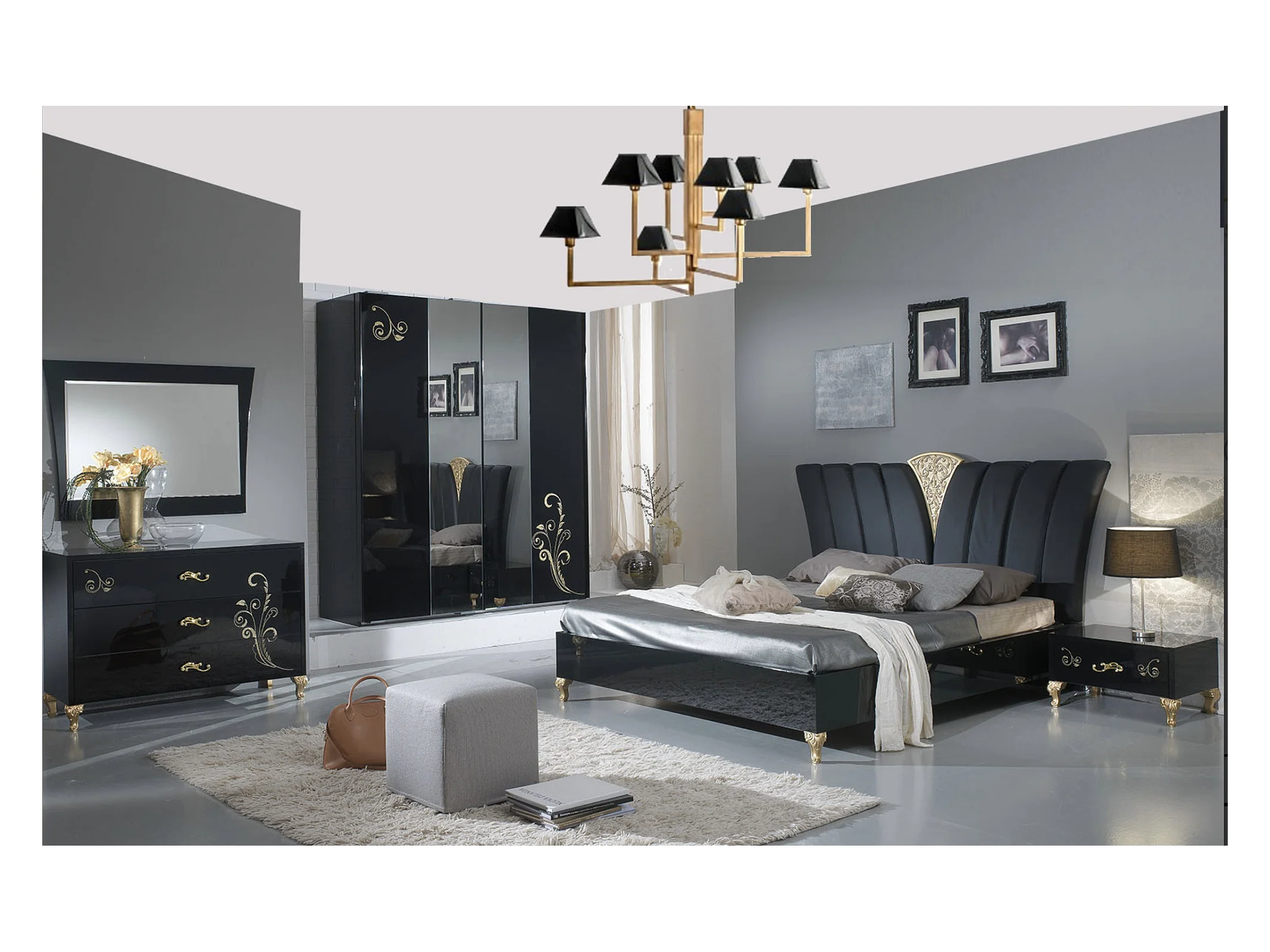 Savana zwart en goud gelakt nachtkastje met 2 lades 50 cm