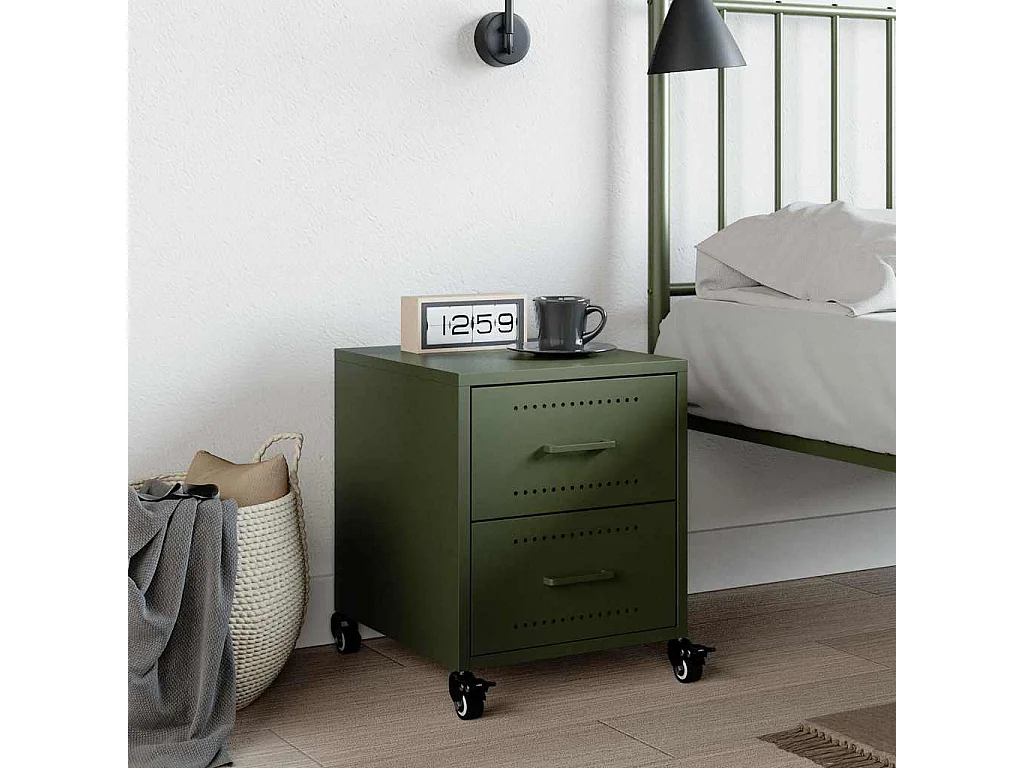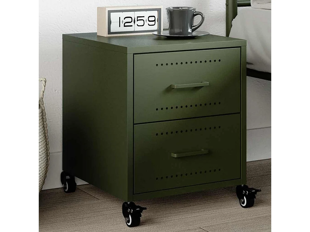 Nachtkastje 36x39x50,5 cm staal olijfgroen