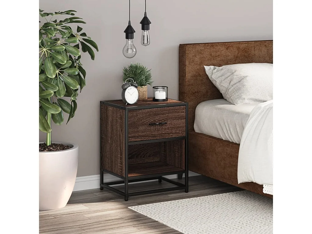 Nachtkastje 40x31x50 cm bewerkt hout en metaal bruin eikenkleur