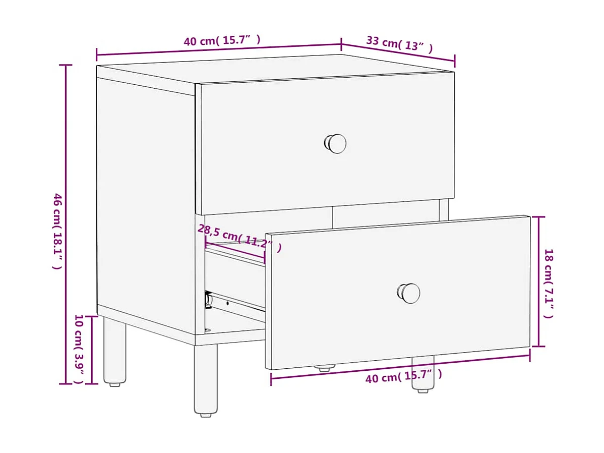 Nachtkastje 40x33x46 cm massief mangohout zwart